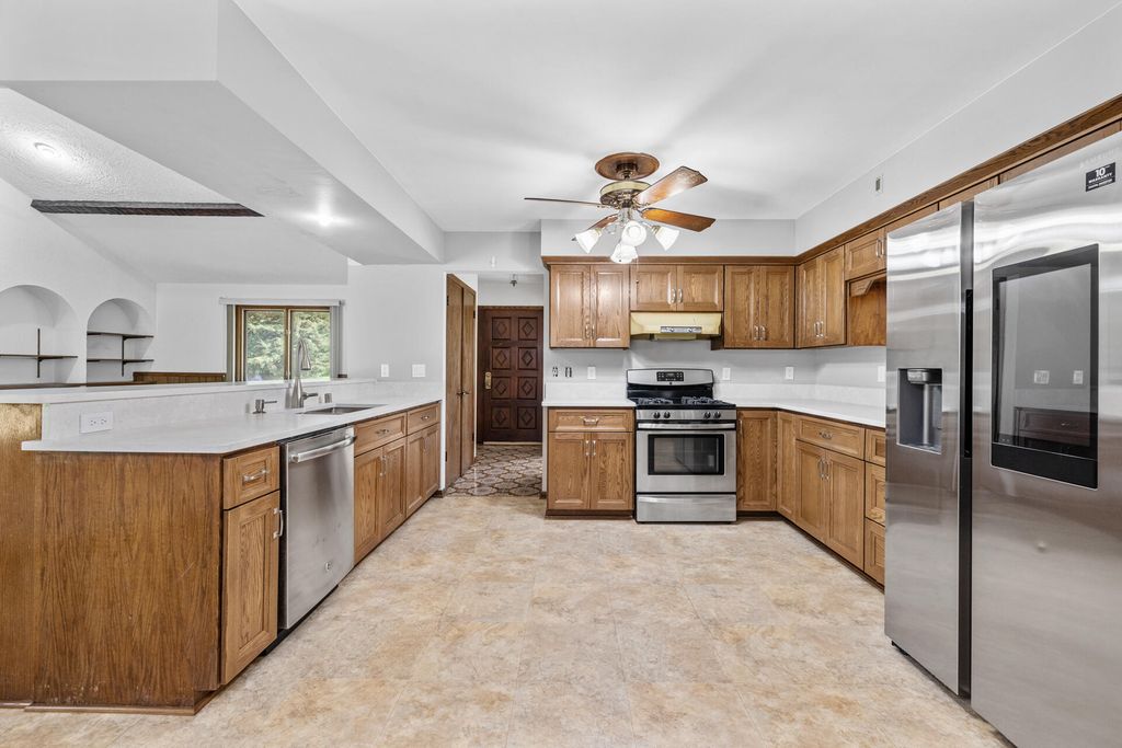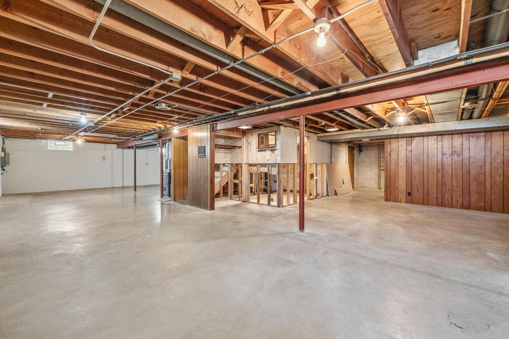 Great Location! Well-built Brookfield ranch in desirable Elmbrook School District is now available. This home features a large kitchen, dinette, snack bar with updated kitchen cabinets and countertops. The formal living room has a bay window and connects to a formal dining room with built-in cabinets. Large family room has a beamed cathedral ceiling and massive stone fireplace. Main bath has a whirlpool tub, ceramic tile, new vanity and Corian top. The second bath is off the main bedroom. All bedrooms are good-sized with hardwood floors. Large basement has a bonus room, useful as a den (no egress widow) and separate work room for that handyman and his tools. Huge patio, good-sized yard and large driveway to accommodate extra cars. New roof installed in 2025 with a transferable warranty.