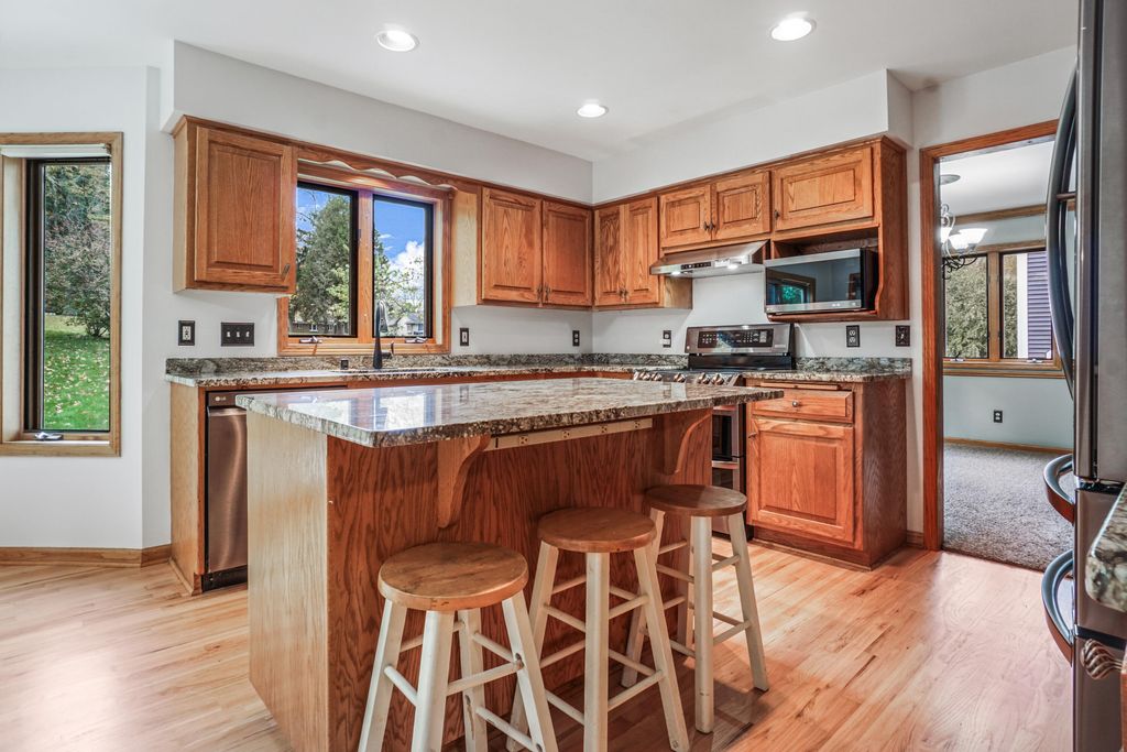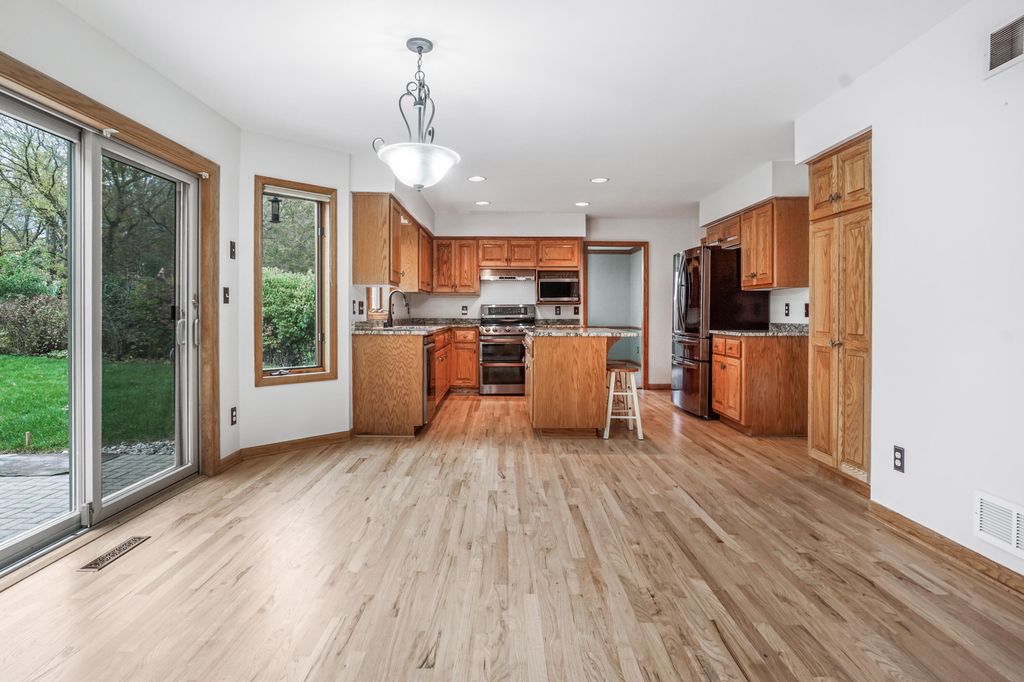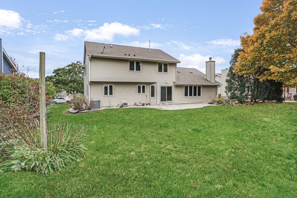Spectacular 4BD/2.5BA colonial in a fantastic Grafton location! The inviting foyer leads to the updated kitchen w/newer appliances, refinished HWFs and eat in area. Dining room offers ample entertaining space connecting to the living room. Spacious family room overlooks the private backyard w/NFP. Laundry room with new flooring and powder room complete the main level. Upstairs, the primary suite offers new flooring, oversized WIC, and ensuite w/walk-in shower. Three additional bedrooms w/new carpet and a shared hall bath. Unfinished lower level offers great storage space and ample opportunity to finish for more living space. Lovely yard w/perennial landscaping, patio, and no house directly behind! 2.5+ car garage! New paint throughout along with newer HVAC and roof! This is a must see!
