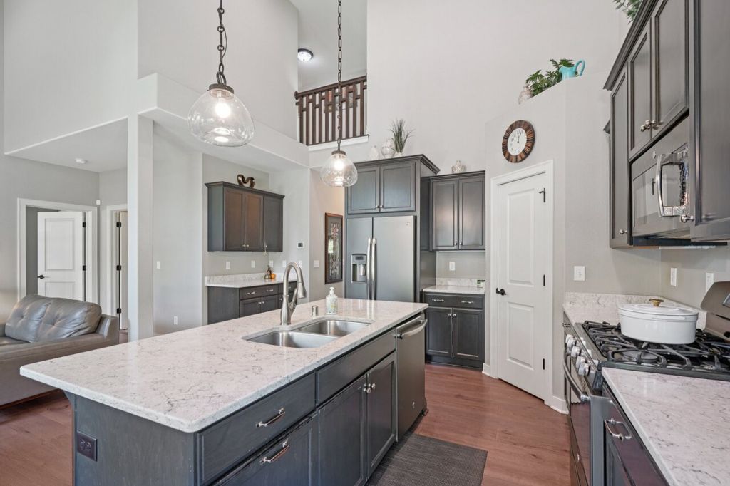 This gorgeous 2014 Brookfield home, has the perfect luxurious setup. Make the entrance to a 2 story foyer inviting you to walk into the kitchen of your dreams with 10' ceilings, overlooking the vaulted ceilings of the living room, cozy up by the fireplace or walk out to your deck in the summer to sip your morning coffee. Anywhere you go you'll feel loved. Main floor massive primary suite gives you ease of access. Don't miss the laundry/mud room and it's walk-in closet. Upstairs hosts 3 bedrooms, 1 bathroom with a landing area to gather. The designer walkout finished basement brings the charm of the home to its max. The sprawling wet bar and full bath wrap the deal beautifully. Get home and get living luxuriously!