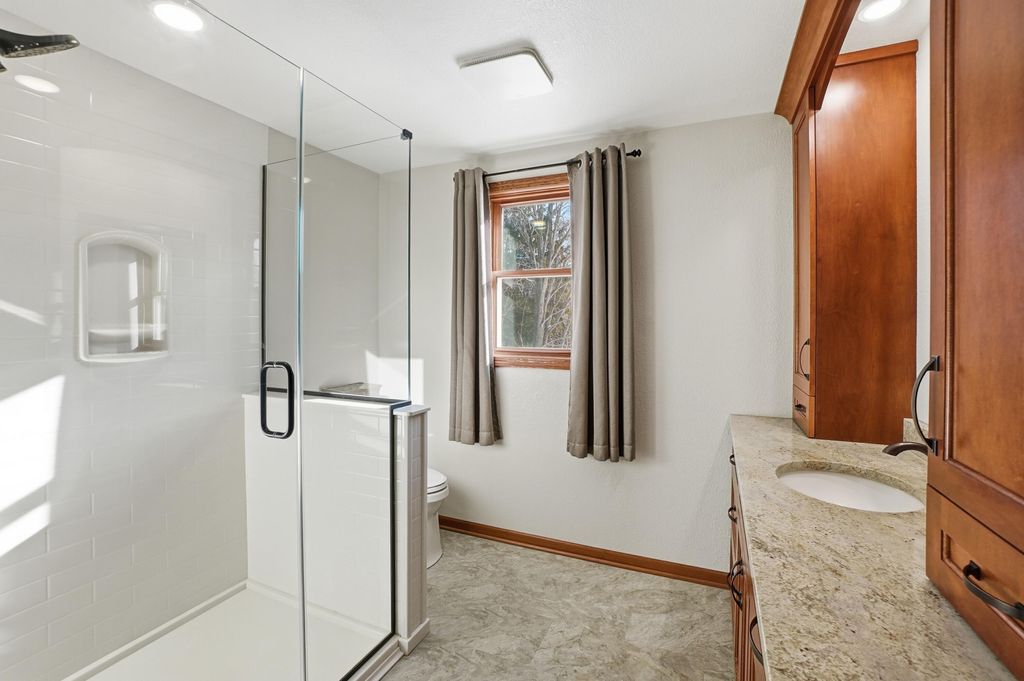 Remarkable home and setting along Cedar Creek in the Town of Cedarburg! Enjoy this exceptional 1.3+ acre lot at the end of a cul-de-sac with many mature trees and gorgeous landscaping. Spacious home has been beautifully updated over the years. Gourmet kitchen has granite countertops, island breakfast bar, and SS appliances included. Great room features natural fireplace with wood-burner insert and patio door to back yard patio area. Den, office, half bath, and laundry on the main level. Open staircase leads to 3 upper level bedrooms and 2 full baths. Primary suite features renovated bath and large walk-in closet plus bonus storage. Back staircase to bonus room or 4th bedroom. Newer roof, windows, and siding. Back yard paradise has pergola and swim spa. Kayak right from your back yard!