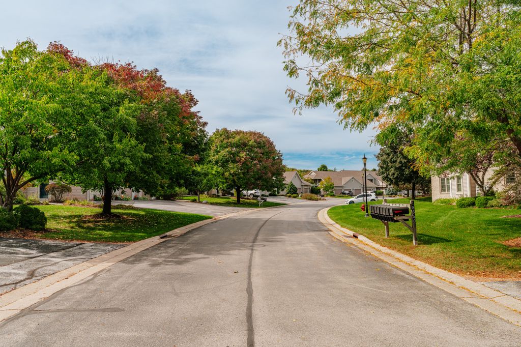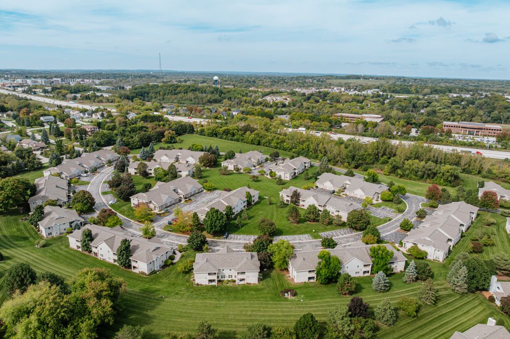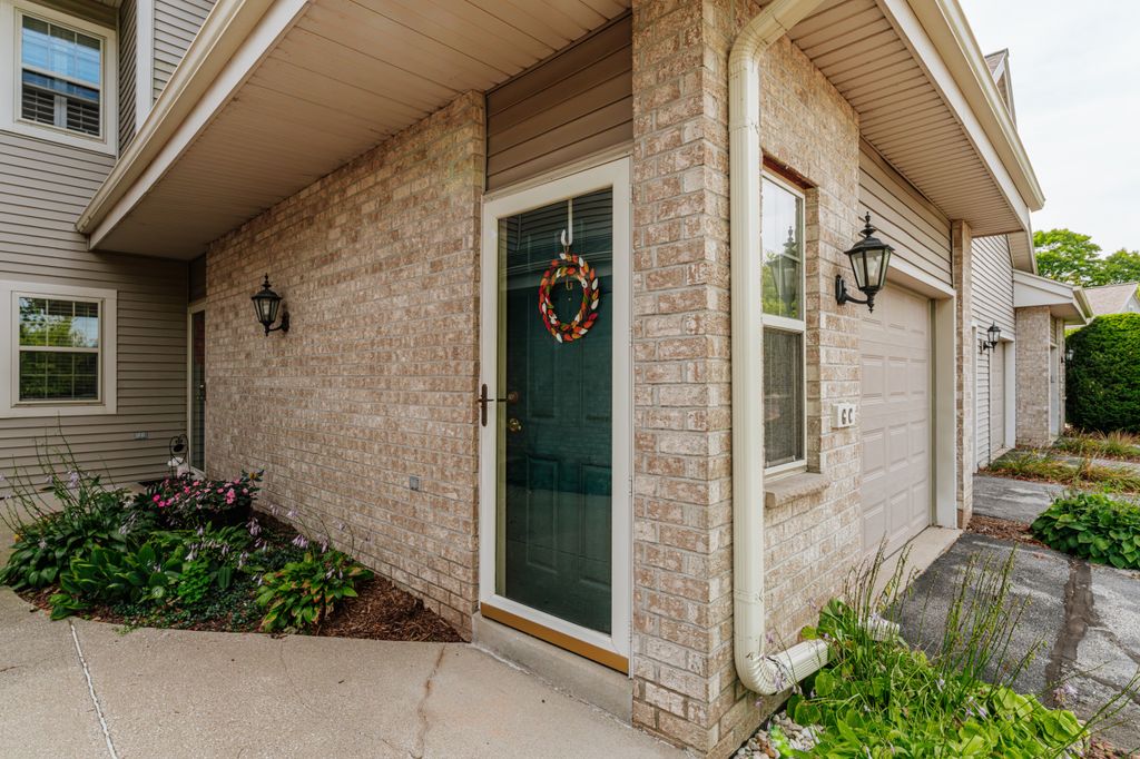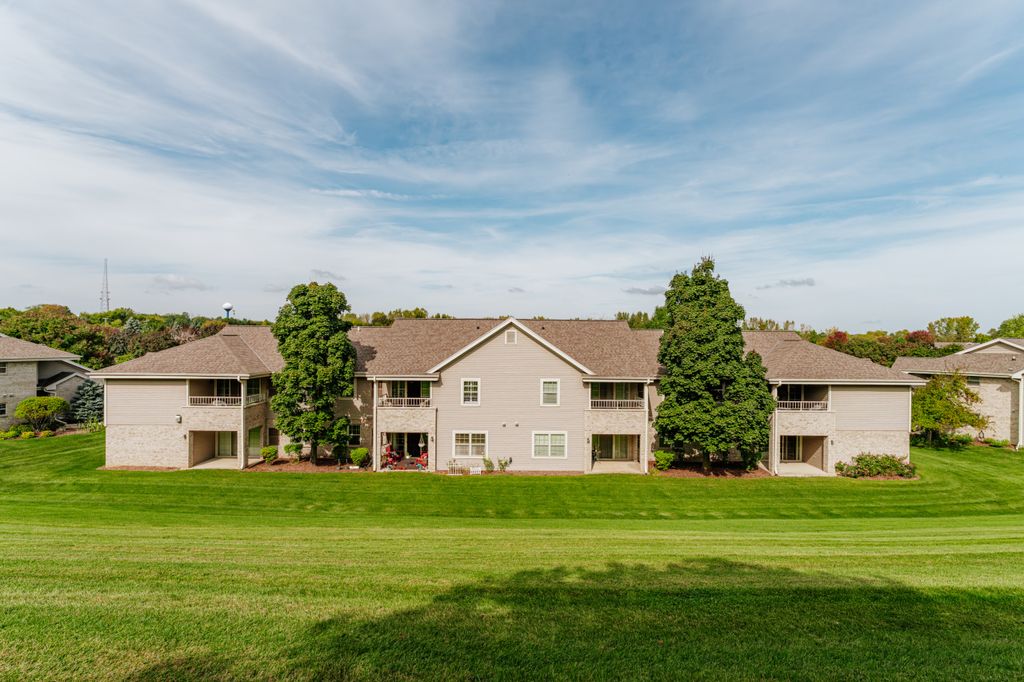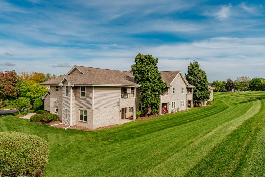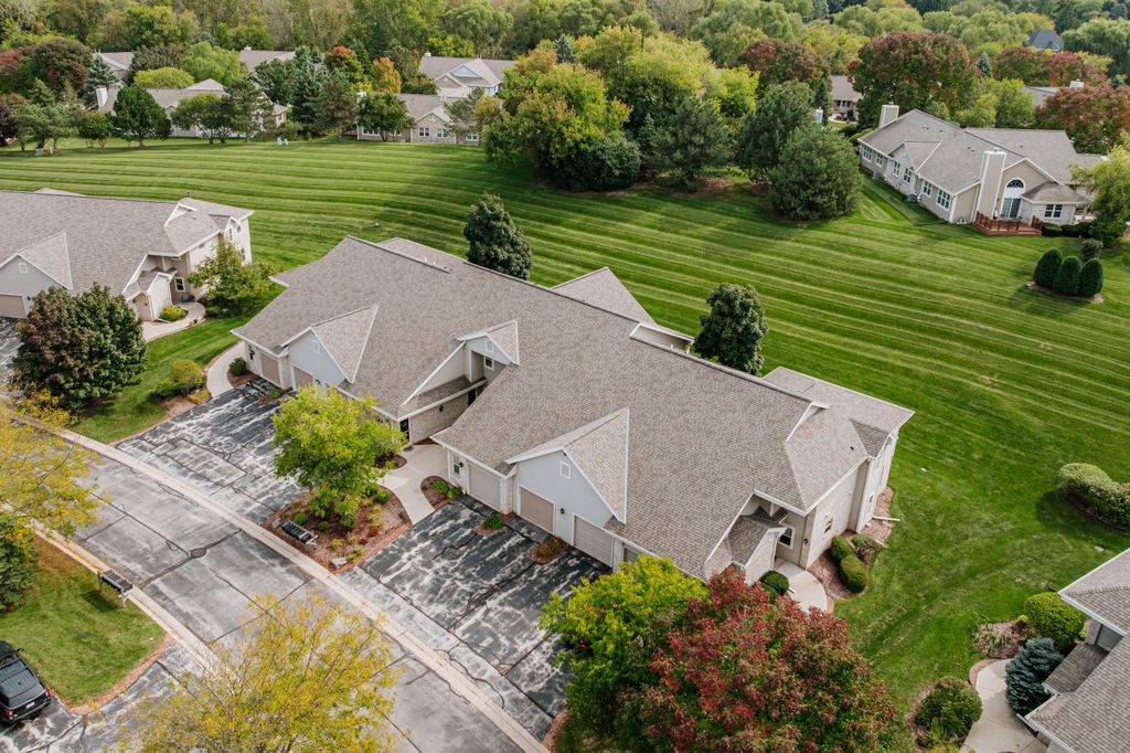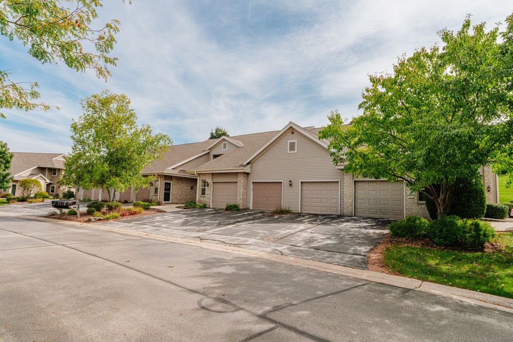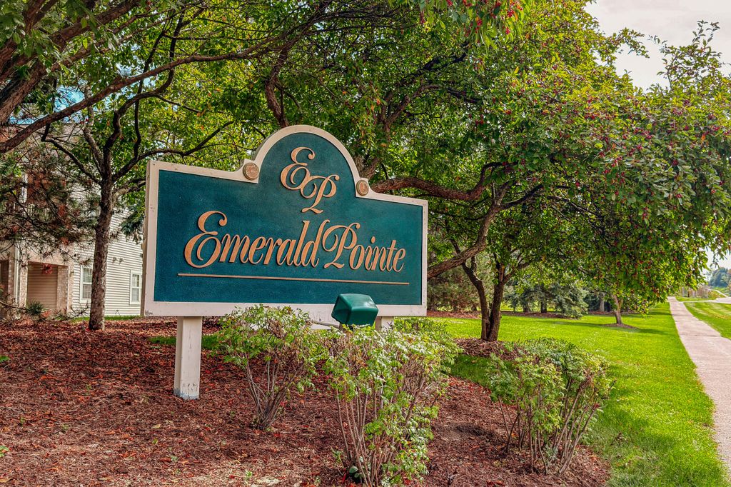 Certainly a cut above at Emerald Pointe! This is it! Absolutely prime south facing location in development w/ southern exp. abutting rolling green-space. Soaring vaulted ceilings, rich HWFs throughout main living area, white painted millwork throughout. Awesome KIT. w/upgraded raised panel cabs, SS appliances, & lots of counters. Custom walk-in pantry closet that rocks! Spacious primary ensuite w/ c.tile floor & newly updated walk-in shower. Massive walk-in closet. Step saving full size W/D incl. Covered patio, one car private garage. The best Brookfield location near The Corners, Bluemound & I-94. BUY THIS ONE! Note: No special assessment due for asphalt paving work in either phase.