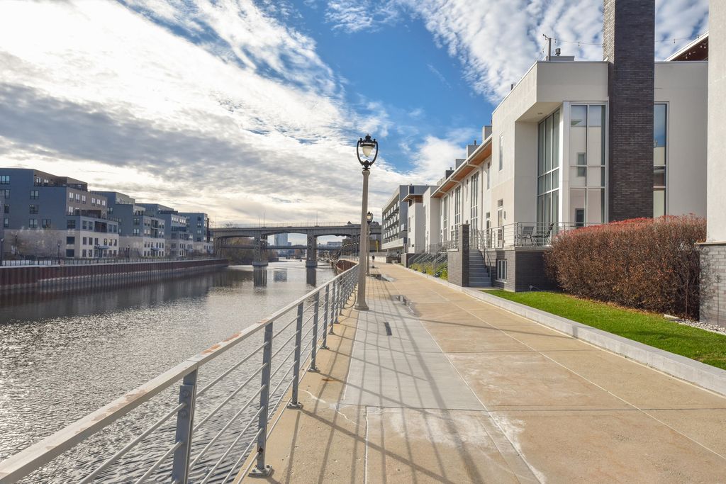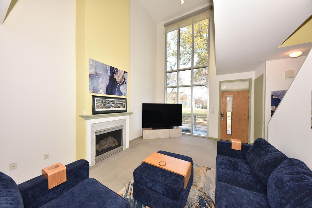 Spacious & chic 1BR/1.5BA 1,579 SF townhome showcasing sweeping river views thru dramatic 19' floor-to-ceiling window w/motorized shade. Just steps from Riverwalk. Open-concept main level great room, Gas fireplace, new stainless steel appliances & breakfast bar, plus powder room - perfect for dining and entertaining. Upstairs a spacious primary suite offers a large walk-in closet a private spa-like bath w/double vanity, soaking tub & separate shower. Plus a reading/office nook. The lower level includes finished room for extra storage, hobbies or guest options, separate laundry Rm, and attached garage for convenience. Enjoy active living at its best - steps from parks, greenspace ,Lakefront Brewery, and minutes from Fiserv Forum, Lake Michigan, downtown festivals, dining & entertainment.