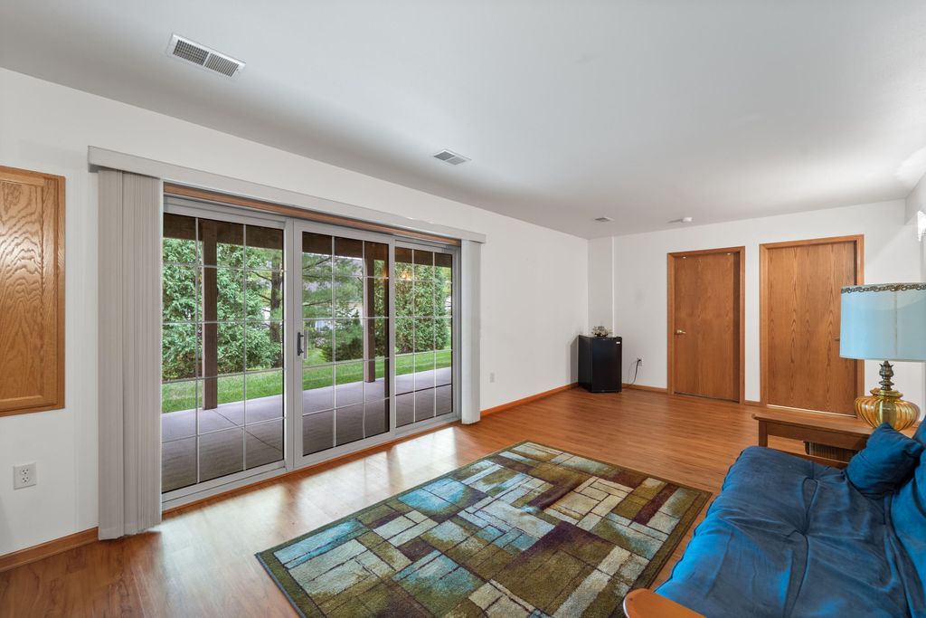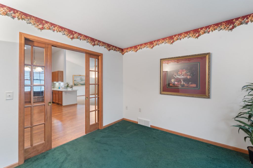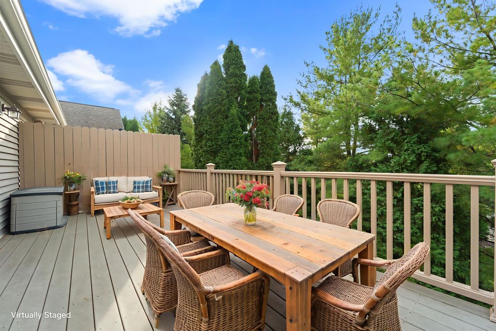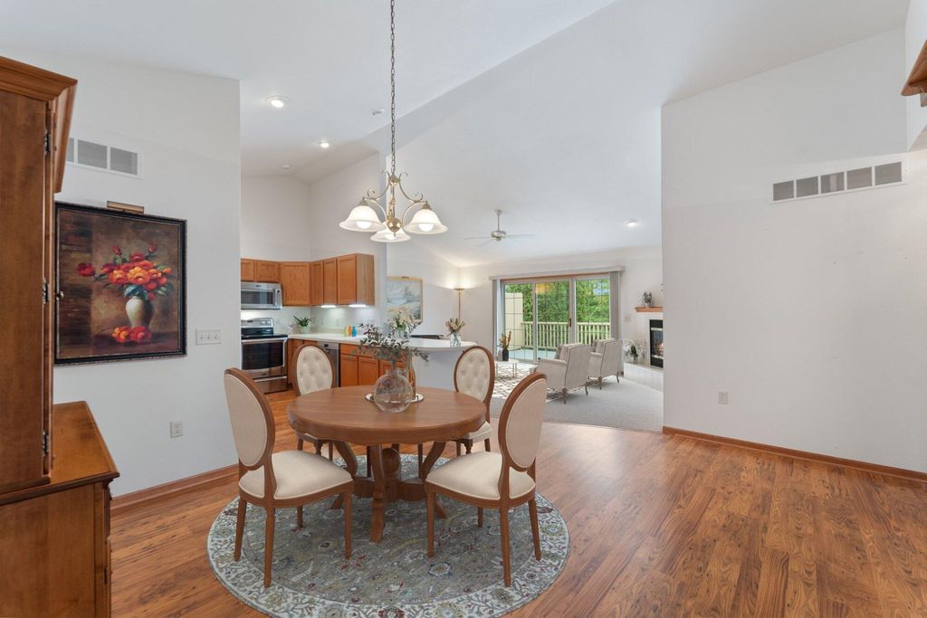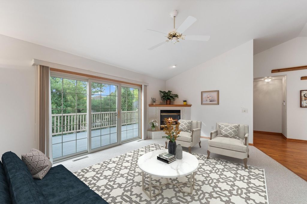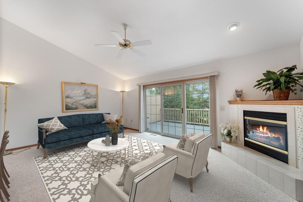 Welcome home to easy living! This inviting 3BR, 3BA condo offers an open layout with soaring ceilings, a cozy fireplace, and a sun-filled living room opening to a spacious deck. Enjoy a kitchen with plenty of storage and prep space, a main-floor den for your home office or reading nook, and a relaxing primary suite with walk-in closet and updated bath. The finished lower level adds a family room, guest bedroom, full bath, and flex space for your gym or hobbies. With a covered patio, 2-car garage, and low-maintenance lifestyle, this one truly has it all!