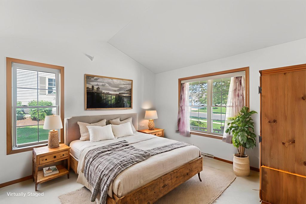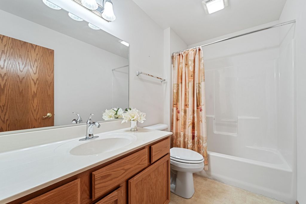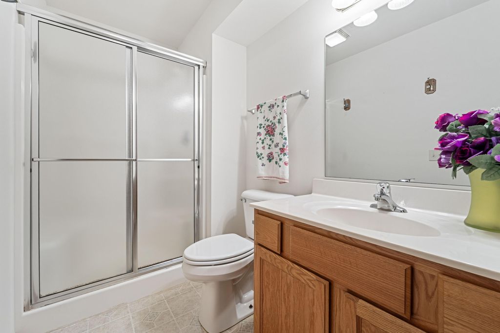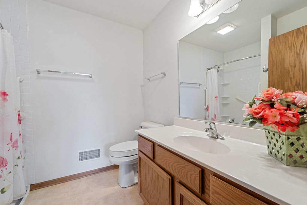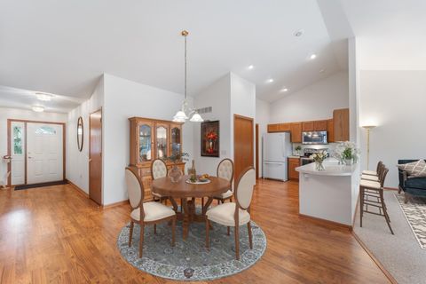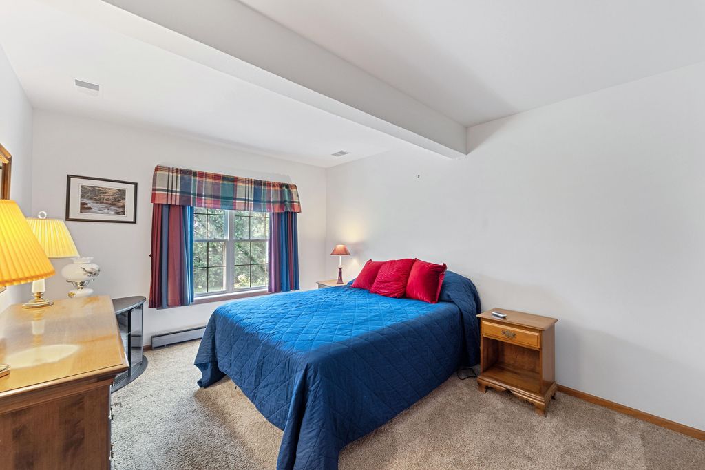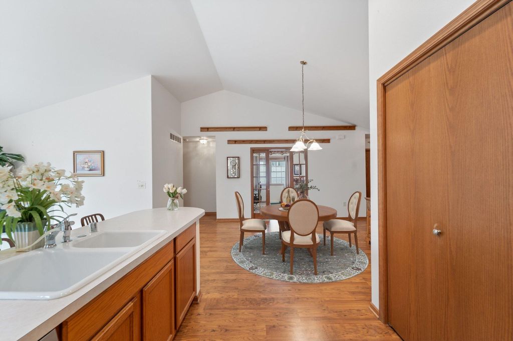 Welcome home to easy living! This inviting 3BR, 3BA condo offers an open layout with soaring ceilings, a cozy fireplace, and a sun-filled living room opening to a spacious deck. Enjoy a kitchen with plenty of storage and prep space, a main-floor den for your home office or reading nook, and a relaxing primary suite with walk-in closet and updated bath. The finished lower level adds a family room, guest bedroom, full bath, and flex space for your gym or hobbies. With a covered patio, 2-car garage, and low-maintenance lifestyle, this one truly has it all!