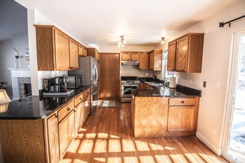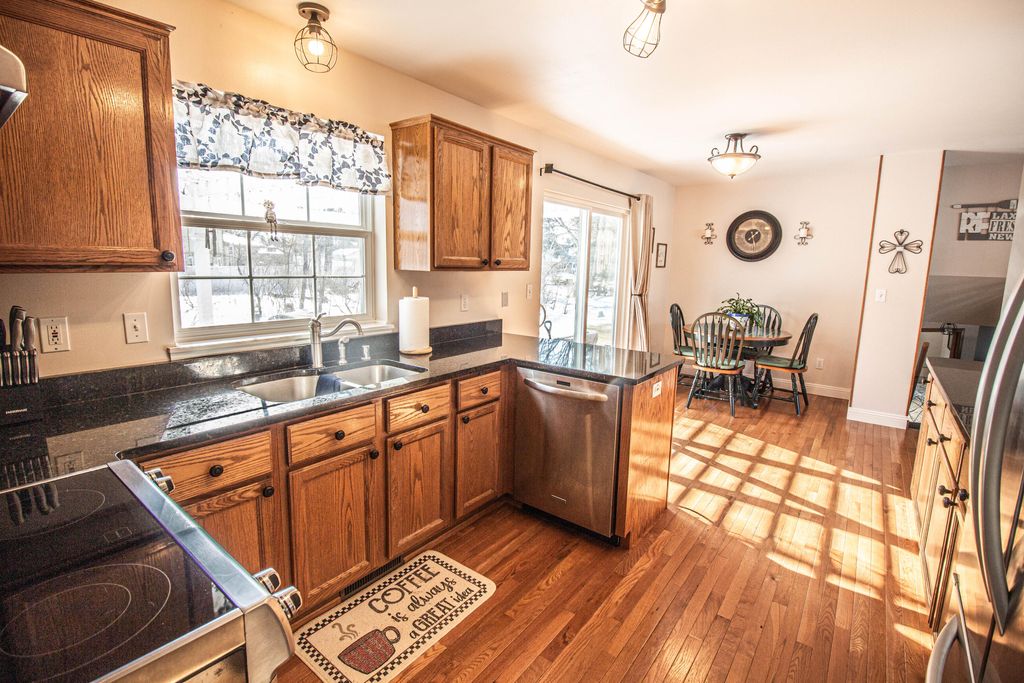 Welcome Home to this meticulously maintained 4BD, 2BA Gem that is super close to beautiful Pike Lake as well as Pike Lake State Park & a city park that's right across the street. You'll fall in love w/ the spacious kitchen that features granite countertops & opens up to an inviting Great Room that has a massive bowed window that lets in a ton of natural light as well as a cozy FP & soaring cathedral ceilings. Main floor features all hardwood floors. Just a few steps up, you will find 3 BD's & a Full BA w/ a tub. Lower living area has a large family room as well as a BD & another full BA. Patio doors off the dining area lead out to the private, tree-lined backyard & concrete patio w/ pergola...perfect for relaxing or entertaining. Separate storage shed is great for lawn/snow equipment.