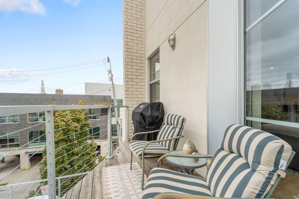 Discover the perfect blend of modern design and urban convenience in this beautifully updated 2 bedroom, 2.5 bathroom townhouse style condo. This move-in ready home has been featured twice in Milwaukee Magazine's Home & Design Awards and is just steps from exciting dining and entertainment. This end unit features an open concept layout filled with natural light from windows on 3 sides, creating a warm and welcoming atmosphere. The spacious living area flows seamlessly into a contemporary kitchen, perfect for entertaining. The balcony boasts majestic river views, providing a peaceful retreat. Upstairs, you will find 2 generously sized bedrooms and 2 full bathrooms. Front & back private entrances, private attached garage + flex room, and a designated surface parking spot complete this home.