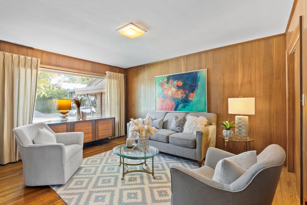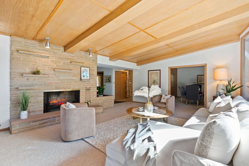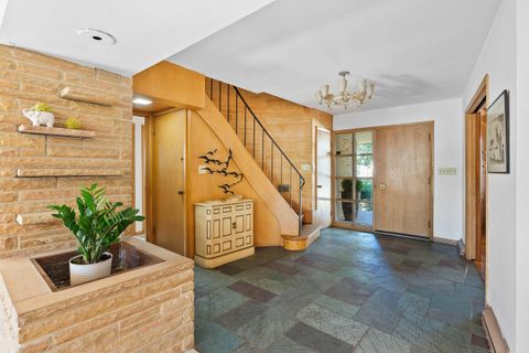 Welcome to the first sale of this custom Mid-century timecapsule by architect Richard E. Oberst. From the moment you step inside you will be WOWED by light shining thru 24 ft of living rm windows that draw your eyes outside. The Tenn Crab Orchard Stone exterior is also found inside at the impressive fireplace and planter. XL LR w/ vaulted white oak paneled ceiling casts a warm glow. Excellent layout includes: main flr primary w/ ensuite, swanky paneled FR w/ hwf, DR, 3 season room, lrg kitchen, main flr laundry & half ba. Upstairs there's 4 more bedrms & full ba. Massive LL w/ half ba is primed for finishing. Desireable Cumberland Forest area. Nice sized yard. Att 2 car garage. This one-of-a-kind home is waiting for new owners to preserve or take it to the next level!