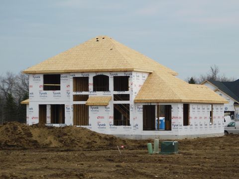 The Hampton Bay Elite series new construction is truly style/function design home offering a fully open concept with tons of amenities! Enter the two story foyer that leads to a massive great room that is almost 2 story, tons of windows and a GFP. Huge open kitchen with large snack island, walk in pantry, tons of cabinets, tray ceilings and granite or equivalent counters + formal dining area w/patio doors to rear yard. 1st floor master w/box ceilings & walk in closet + private master bath-tile shower w/2 shower heads, double vanity. Main level mud room w/lockers & separate laundry w/storage. Bonus flex/office on main and 1/2 bath. The upper levels has 3 bedrooms & full family bath SOT w/tile and double vanity. Lower el has egress window slider system, Radon System + full bath rough!