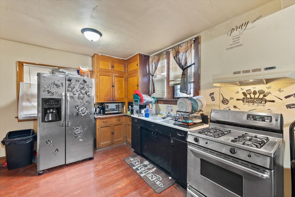 Charming bungalow with beautiful woodwork, stained glass, and timeless character. Main level features a sunny foyer, living and dining rooms, a large eat in kitchen, bedroom, and full bath. Upstairs adds two bedrooms and a den. Big basement for storage and a spacious fenced in yard. Updates include a new roof, gutters and water heater in 2024! Strong potential for investors or owner occupants!