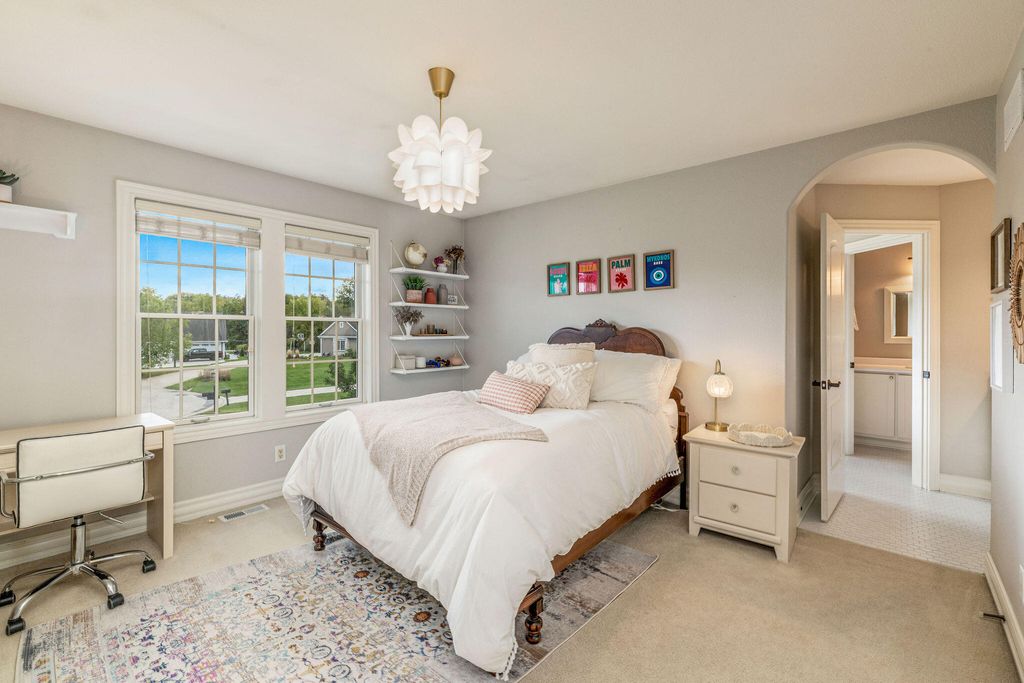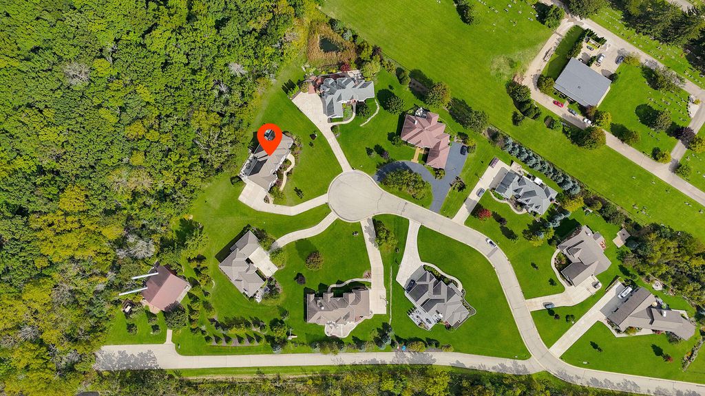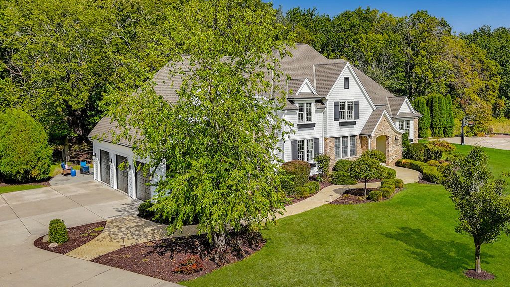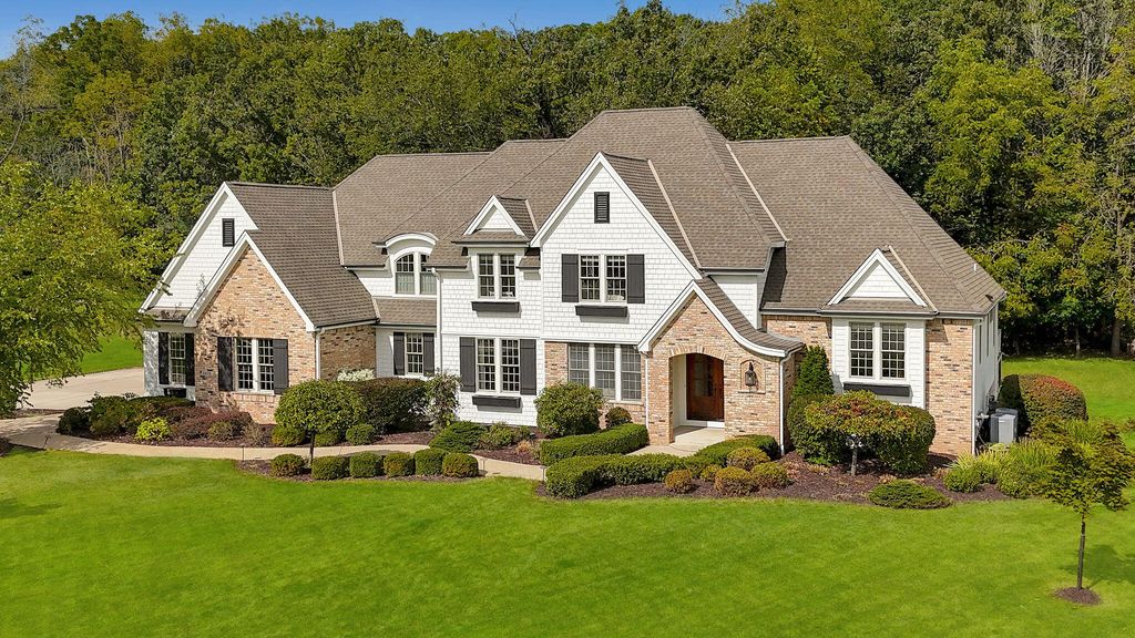 At the end of a cul-de-sac,Mound Zion Woods rises with timeless grace. This 4 bedroom, 3.5 bath home marries traditional warmth with subtle European soul. Brick, shingle style exterior with sweeping gable roof lines hinting storybook charm. Tall Pella windows invite sunlight to dance across rich textures to enjoy life in a floor plan that flows for everyday life and entertaining. Exposed lower level offers gathering, retreating and home office. Step outside to a private backyard bordering conservancy, walking path, where nature and tranquility intertwine. Thoughtfully built, elegantly detailed, it's a home of enduring beauty and quiet confidence! 3 car garage, Elmbrook school district, skip and a jump to Elm Grove...Walking path, a hidden gem, behind home, leads to park and neighborhoods