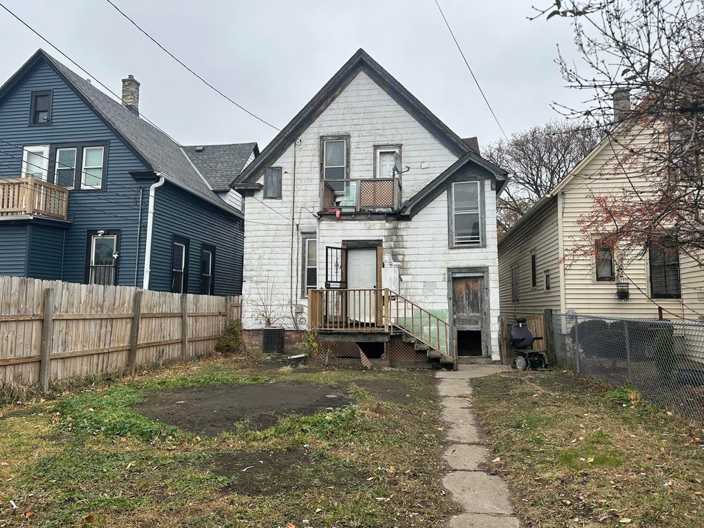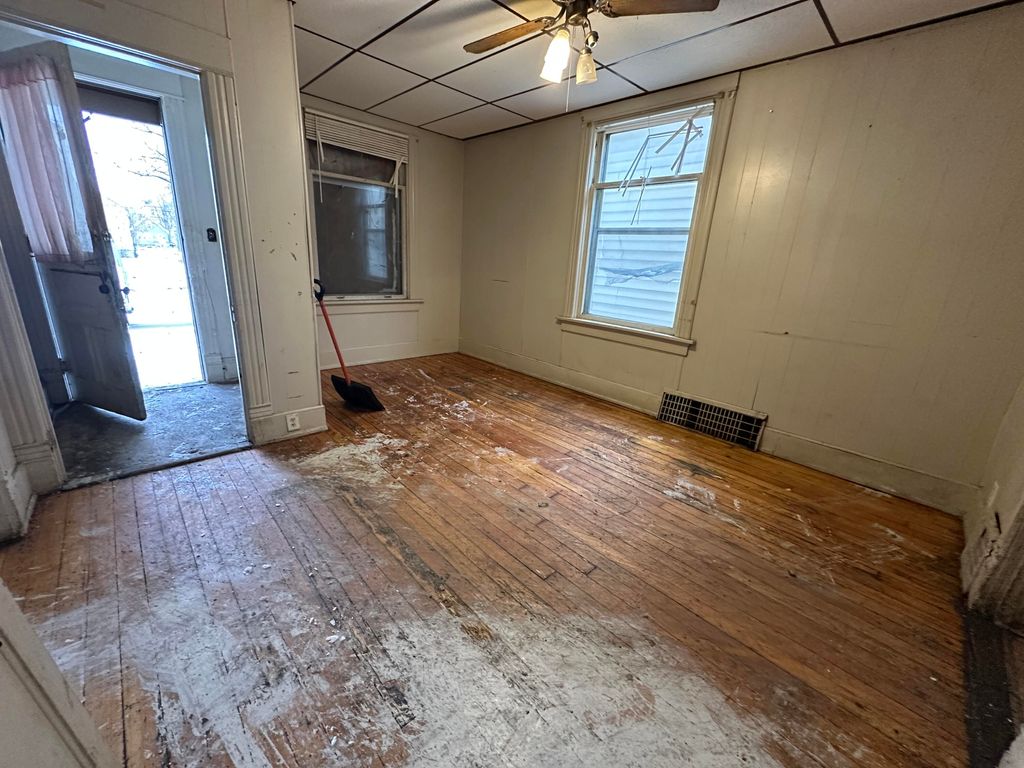 Your next opportunity to make YOUR money work for YOU awaits! Check out this MASSIVE sweat-equity adventure ideal for an investor or handy person alike! JUMBO home has a plethora of bedrooms & 2 bathrooms, admirable high ceilings, WIDE staircase off the kitchen, hardwood floors & LOADS of original character! Full basement offers a chance for further development and also has a newer furnace(2024), laundry hookups, A/C unit also observed in the back of the home. Upper balcony has been recently maintained, 2-car garage is conveniently connected by a FENCED back yard. Unlock the potential of what could be your next home today!