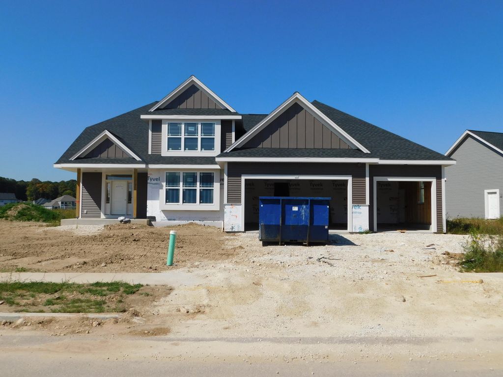 Massive contemporary two story home with main level master. The Parklane Elite series home is an open concept design w/1st floor 9 Ft. ceilings + Boxed Living room and Master Tray ceilings. Enter the two story open foyer that leads to a huge living room w/GFP. Huge kitchen w/island, tons of cabinets, tile backsplash, granite or equivalent counters + huge pantry. Open dining area with slider doors to rear yard. Main level Flex/Office w/Fr Doors. Master on MAIN with walk in closet + private master bath w/ double vanity walk in tile shower w/2 shower heads. Main level laundry and mud. area/lockers!! Second floor has 3 large bedrooms with spacious closets and main full bath SOT + double vanity w/multiple entrances!! Lower level -full bath rough-Radon System & Egress Slider window!