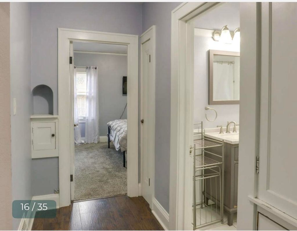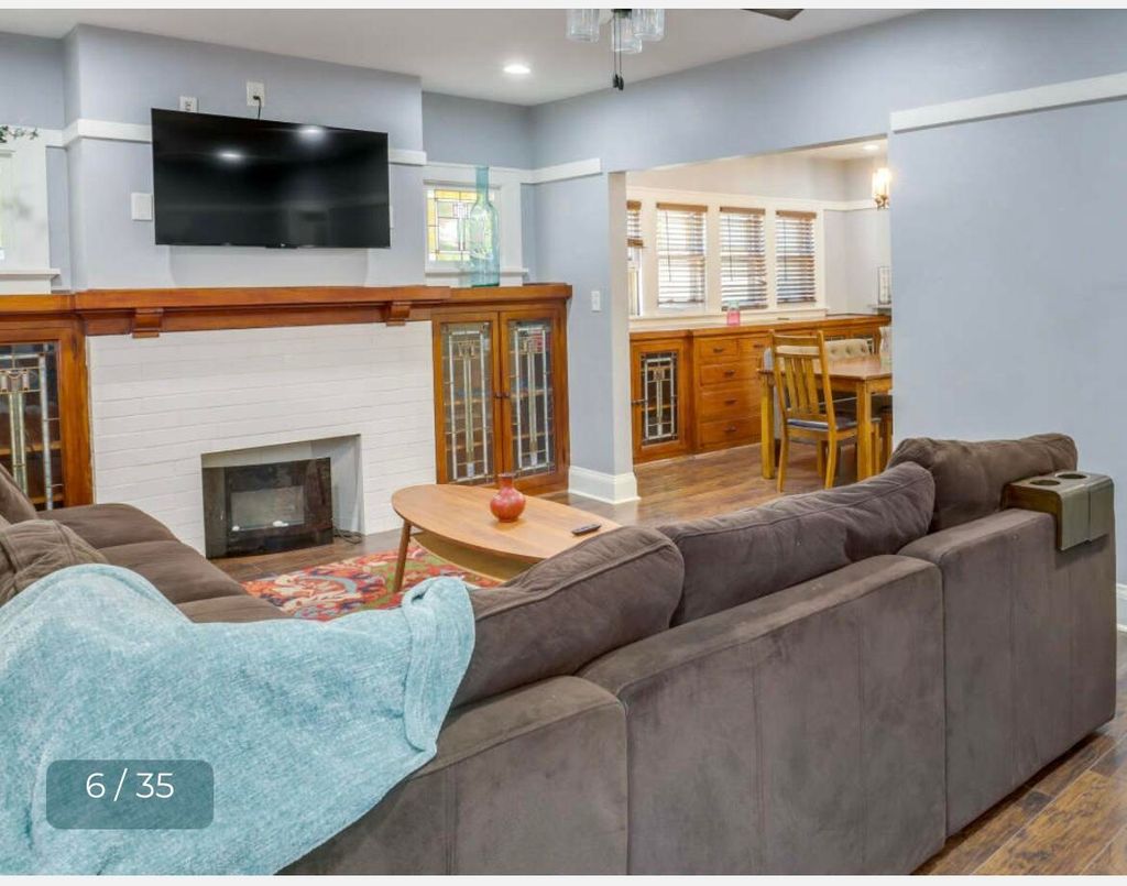 Charming Bungalow with Income Potential!** This stunning single-family bungalow features a total of five bedrooms. Two spacious bedrooms on the main floor and cozy bedroom upstairs with ample additional living space, there's plenty of room for everyone. Enjoy additional living space in the finished basement, perfect for entertainment. This exceptional property includes a two-bedroom home in the back- can be used as a guest home or additional income opportunity. Beautiful hardwood floors throughout and tons of charm. Seller uses this home as an Airbnb and retiring from the business. Includes: Stainless Steel Appliances, Washer/Dryer, New windows in rear home. Seller is willing to leave home fully furnished for the new owner. *All room sizes are estimates and not exact*