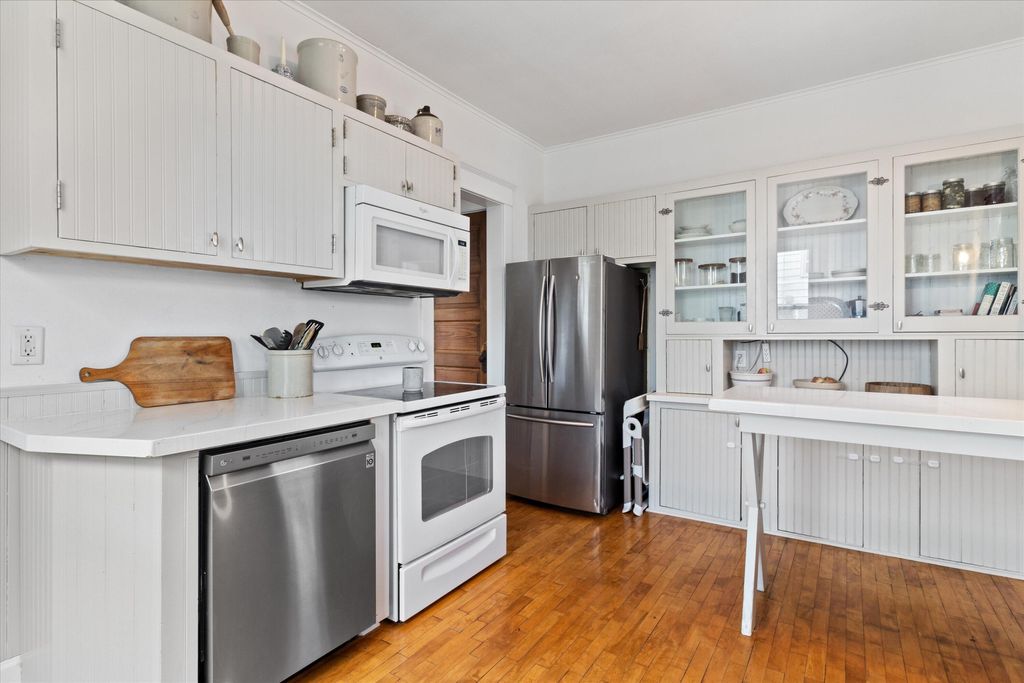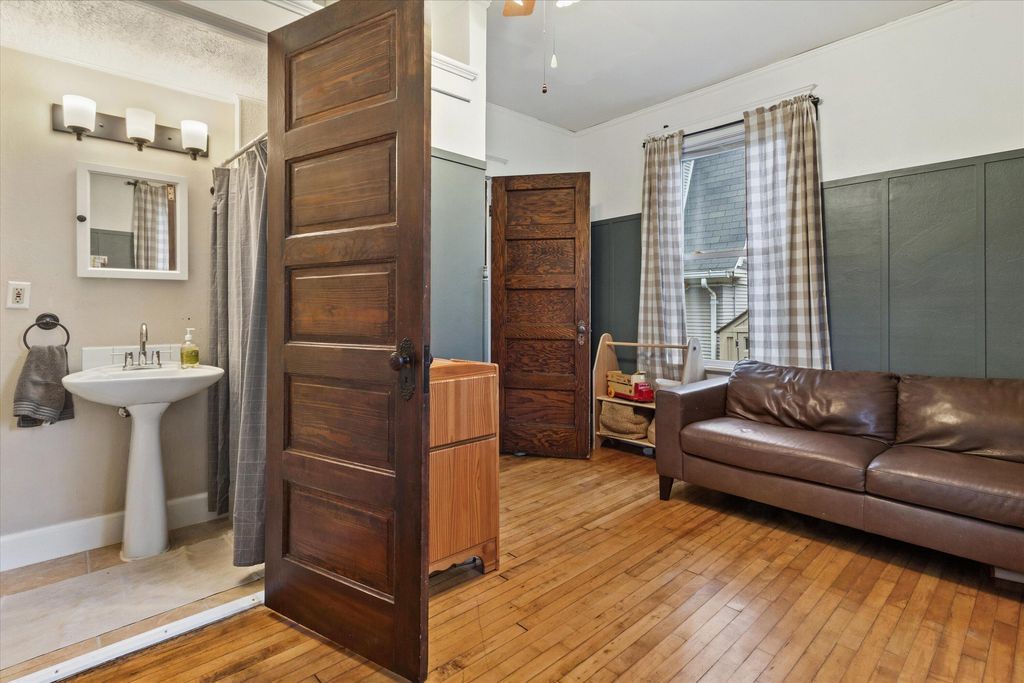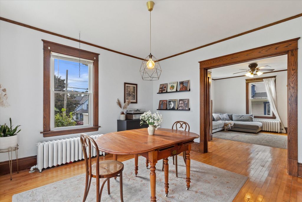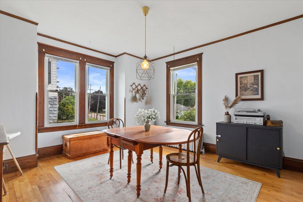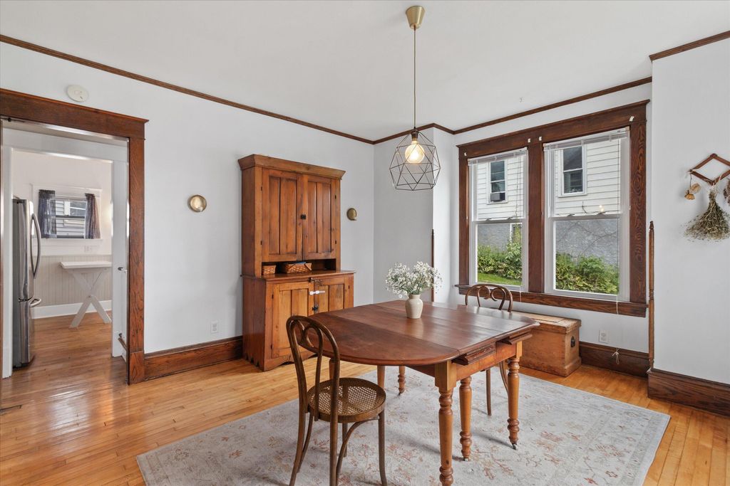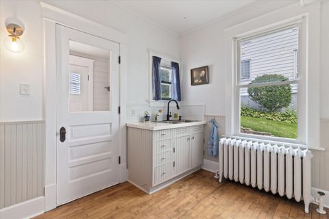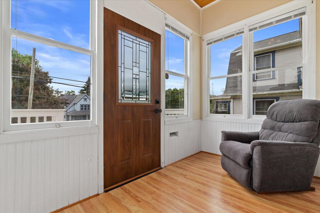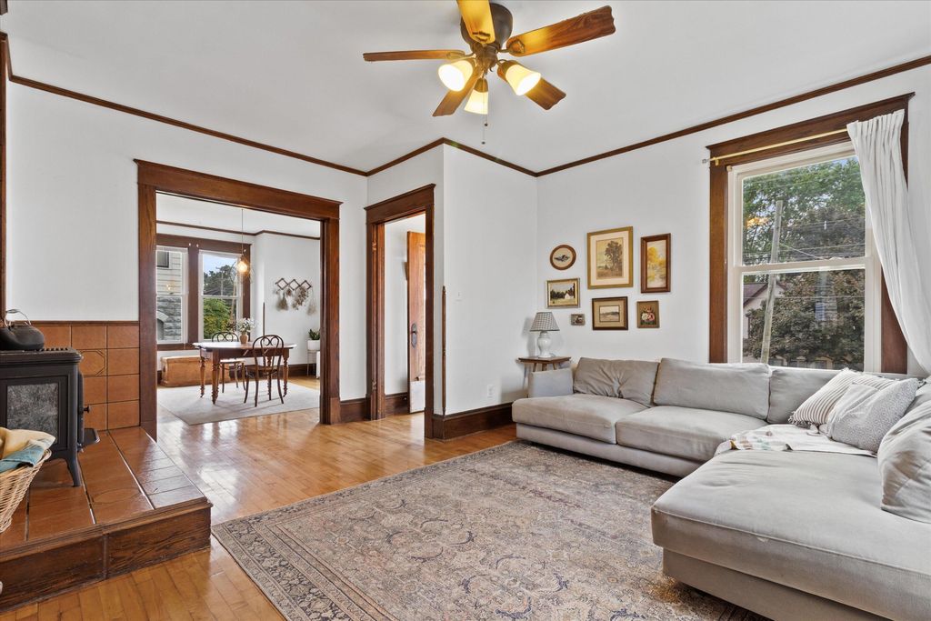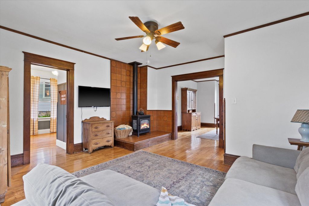 Charming 4-bed, 2-bath home near downtown Hartford! This gem features a cozy gas fireplace, original woodwork, and a delightful front sunroom, perfect for relaxing. Upstairs, enjoy the view from your private balcony. Roof, siding, and windows were newer when purchased by the current owners just 5 years ago. Located minutes from Hartford's vibrant downtown, offering unique shops and restaurants, Plus, enjoy the beauty of nearby Pike Lake and the benefit of super low taxes! A perfect blend of character and modern updates!