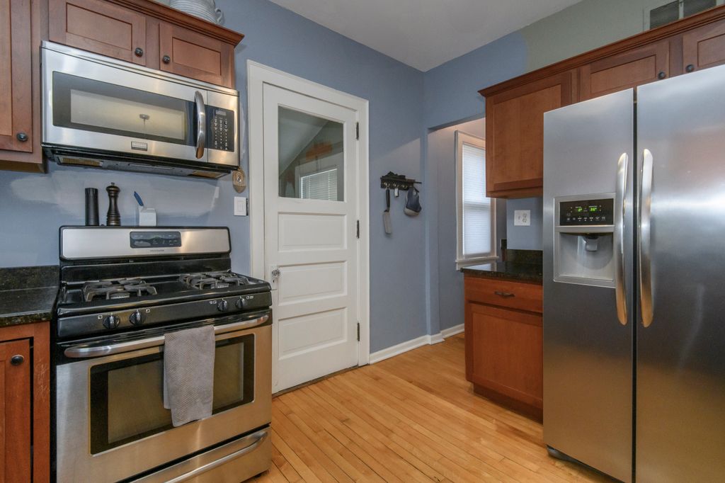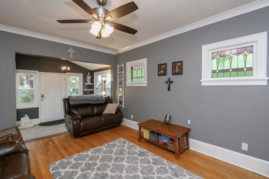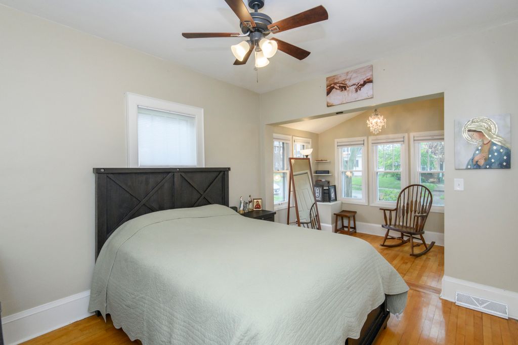 This light and airy, open concept Cape Cod is ideally situated within close proximity to the Lake. A welcoming foyer opens to the Great Room with gleaming hardwood floors, 9' ceilings, wide baseboards, and beautiful stained-glass windows create timeless character. Classic built-in bookcases create a seamless flow into the Dining Room. The Kitchen features granite counters, stainless appliances, newer dishwasher, and a large Butler's Pantry with closet. A main floor spacious Primary Bedroom offers flexible living space. Enjoy summer on the paver patio in the fenced yard. Many newer windows throughout!