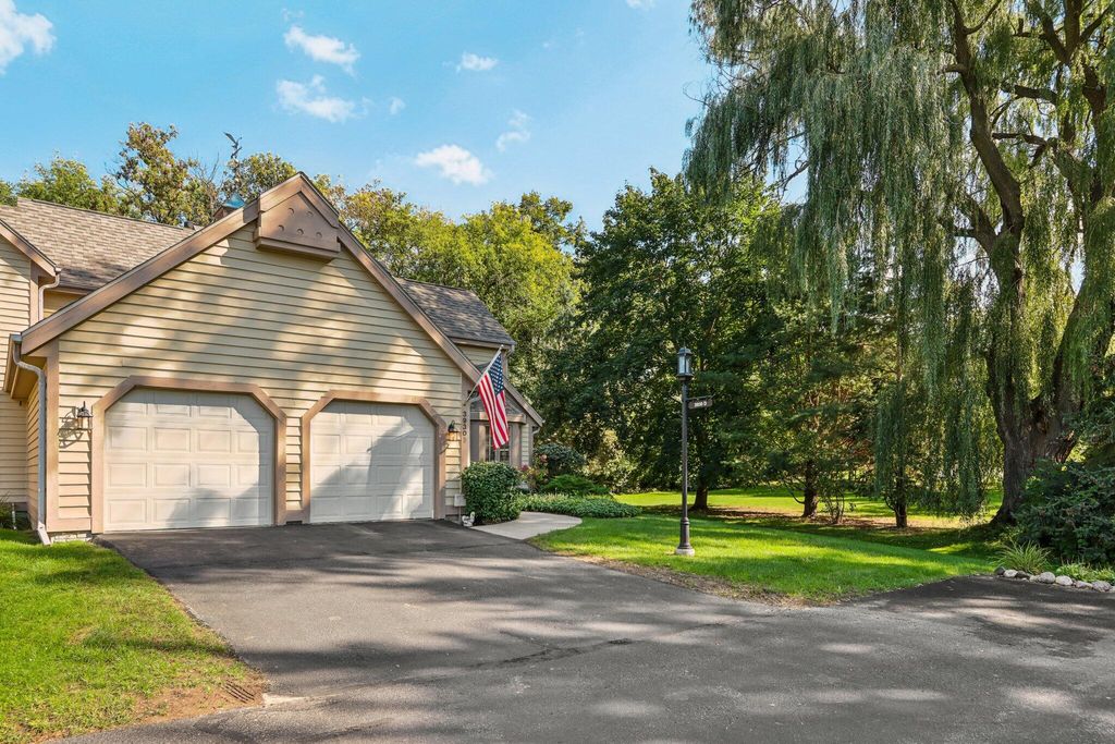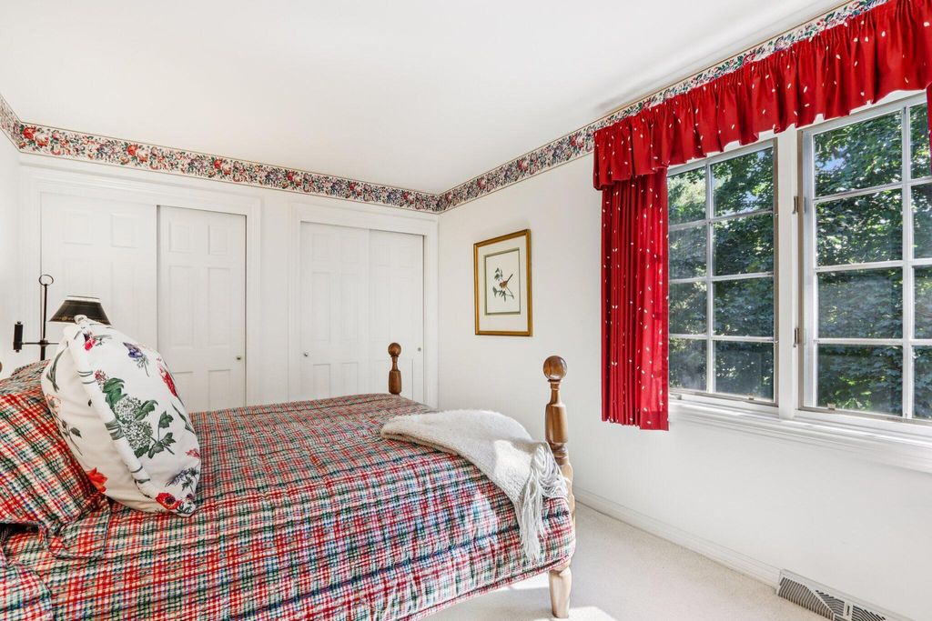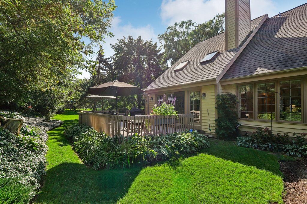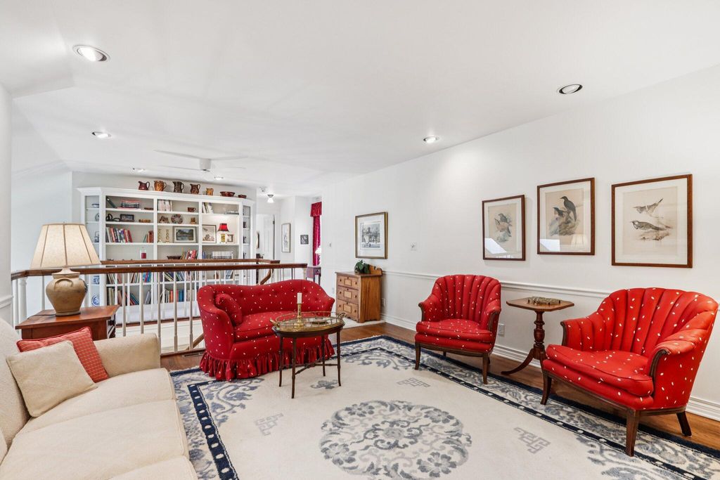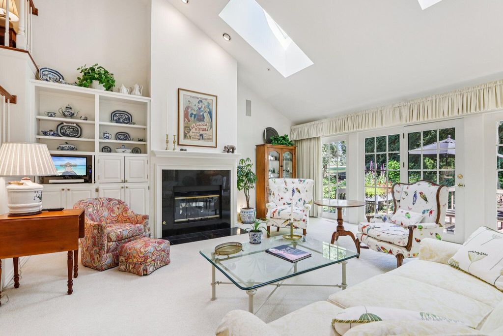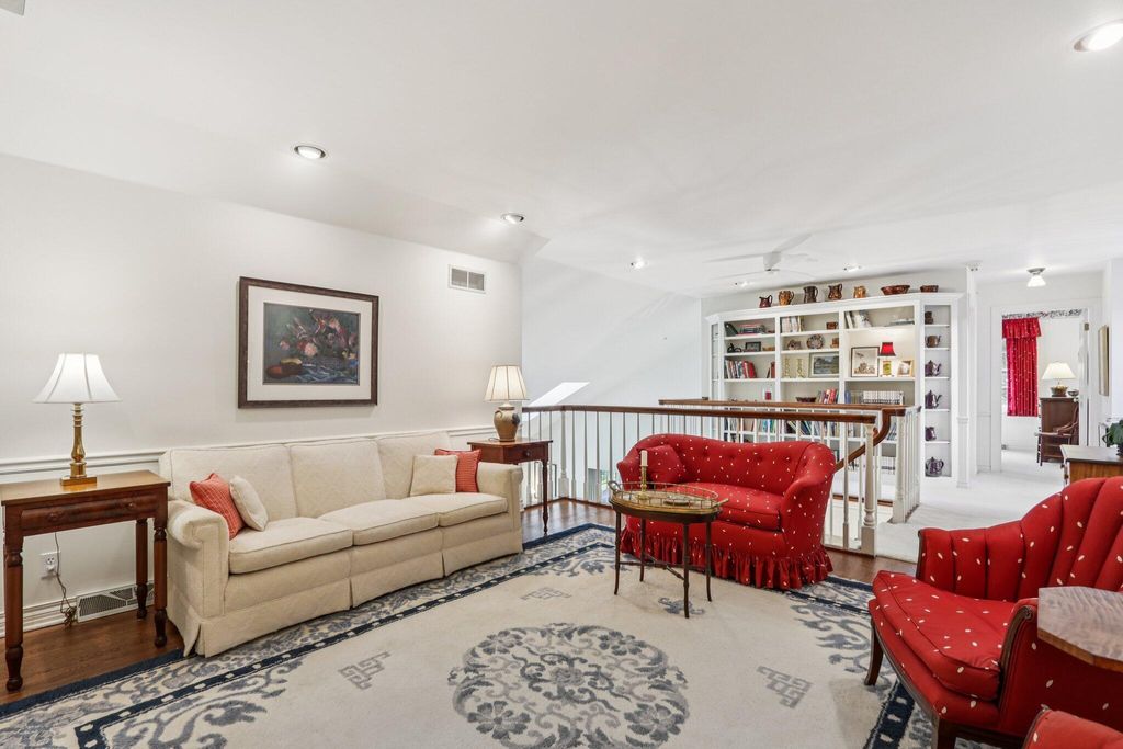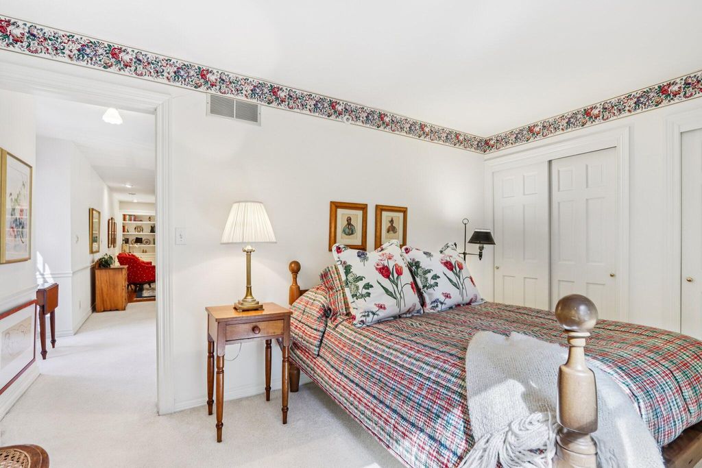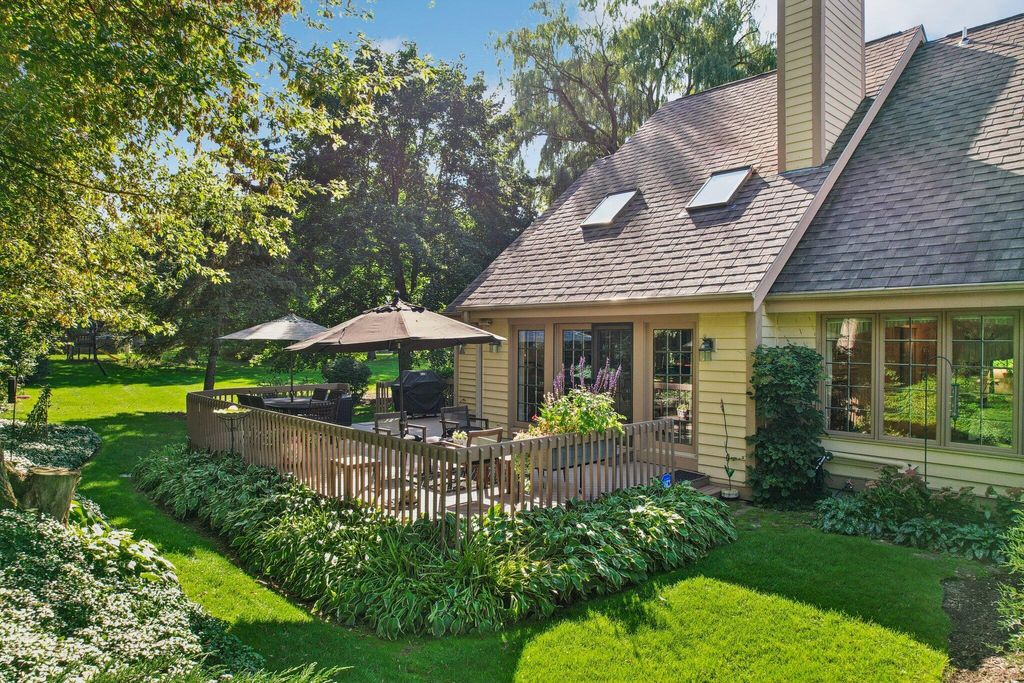 Prime condo location tucked at the back of the association on a quiet cul-de-sac, surrounded by gardens and green lawns. This traditional townhouse offers sunny east and south exposures that fill every room with light. Enjoy treetop and garden views from all windows and relax on the oversized newer deck overlooking private landscaping. A custom floor plan features a level living to dining room with built-ins, wet bar, gas fireplace, perfect for entertaining. The bright white kitchen has Corian counters, wood floors, and a dinette. Upstairs, a lofted library with pull-out couch adjoins the second bedroom and bath. Lower level provides ample storage and expansion potential. Stylish, comfortable, and quietly set in nature's beauty. Seller taking secondary offers.