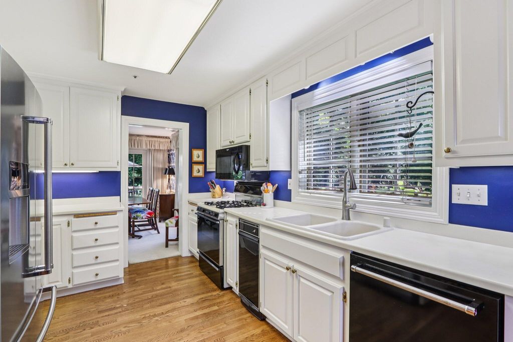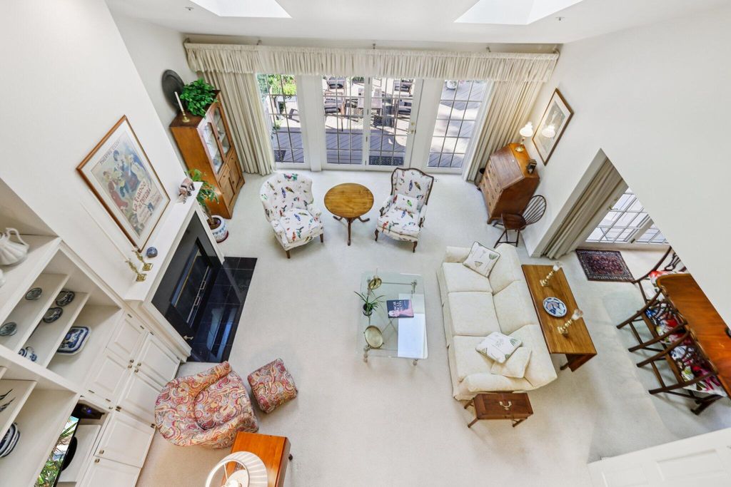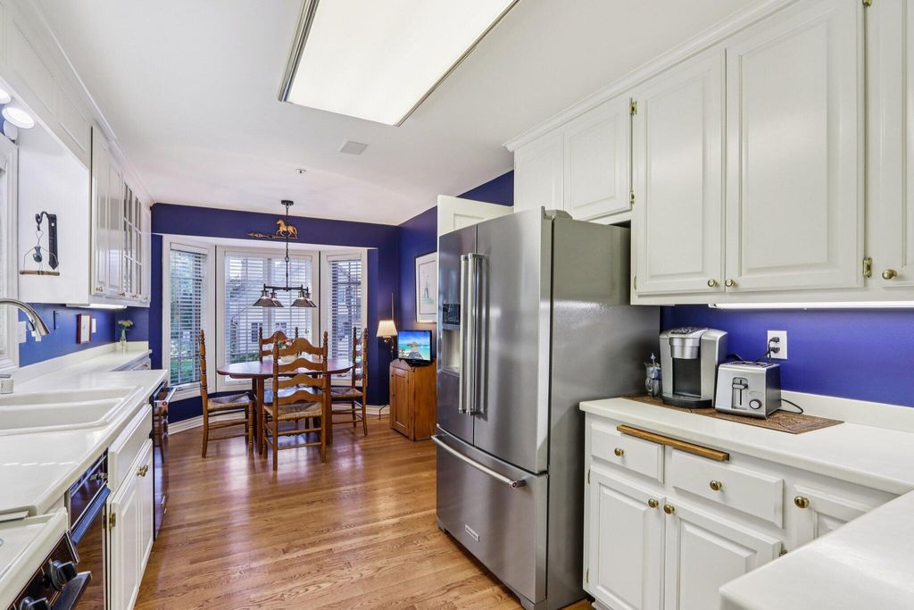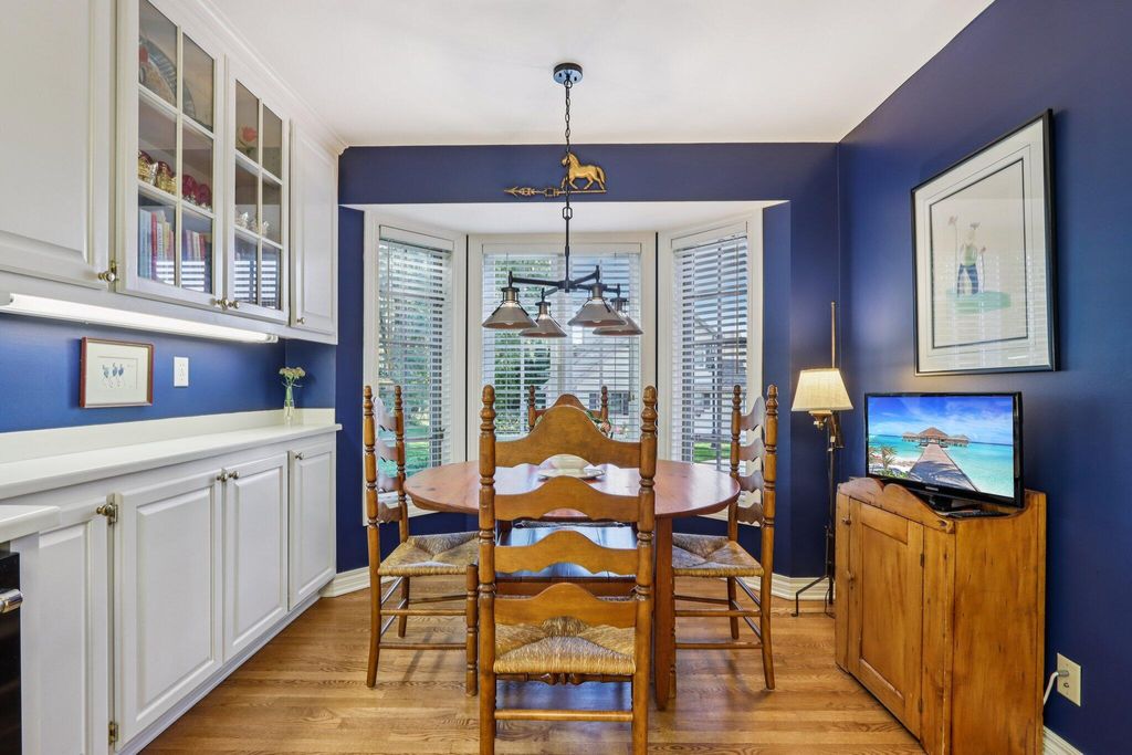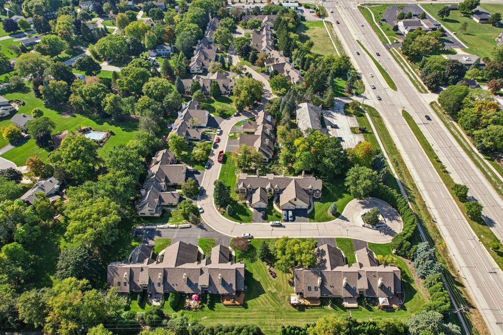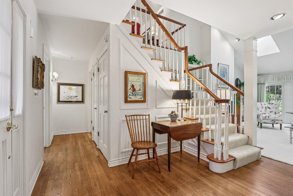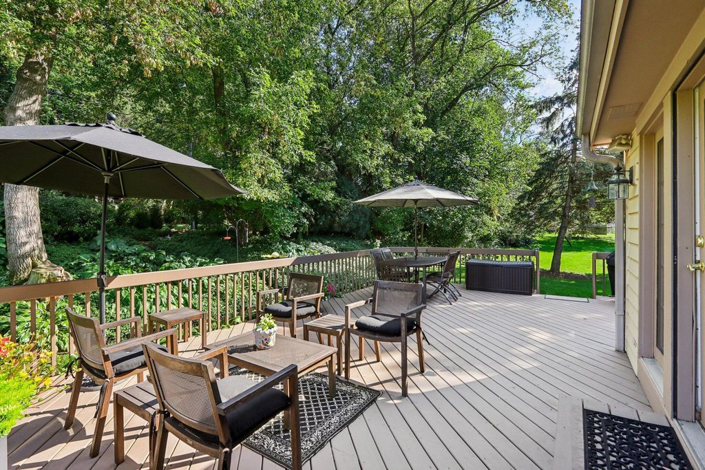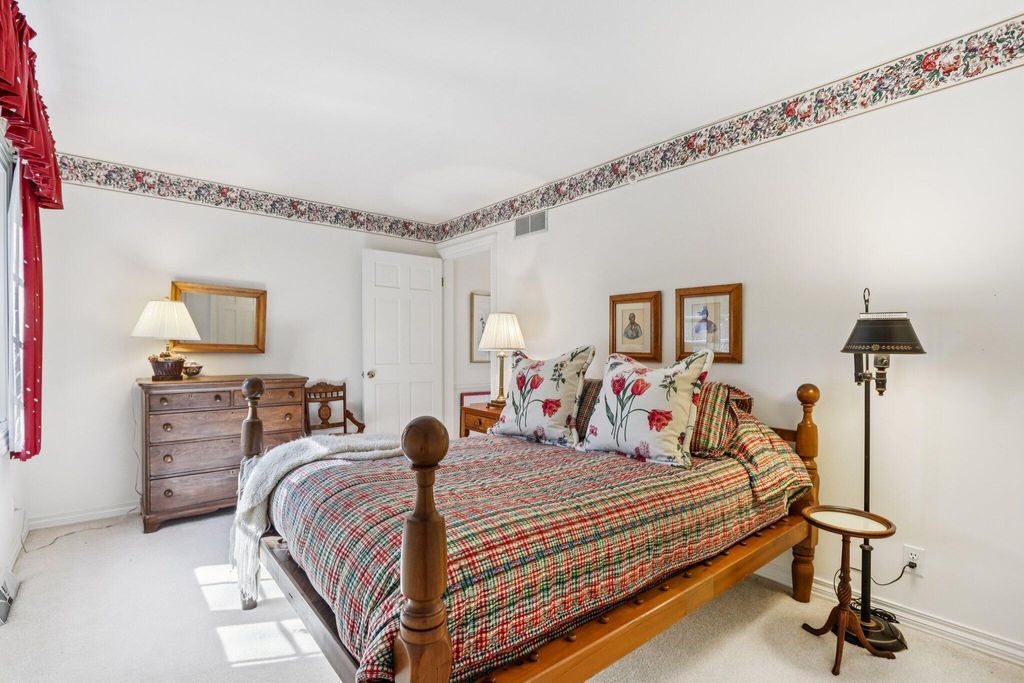 Prime condo location tucked at the back of the association on a quiet cul-de-sac, surrounded by gardens and green lawns. This traditional townhouse offers sunny east and south exposures that fill every room with light. Enjoy treetop and garden views from all windows and relax on the oversized newer deck overlooking private landscaping. A custom floor plan features a level living to dining room with built-ins, wet bar, gas fireplace, perfect for entertaining. The bright white kitchen has Corian counters, wood floors, and a dinette. Upstairs, a lofted library with pull-out couch adjoins the second bedroom and bath. Lower level provides ample storage and expansion potential. Stylish, comfortable, and quietly set in nature's beauty. Seller taking secondary offers.