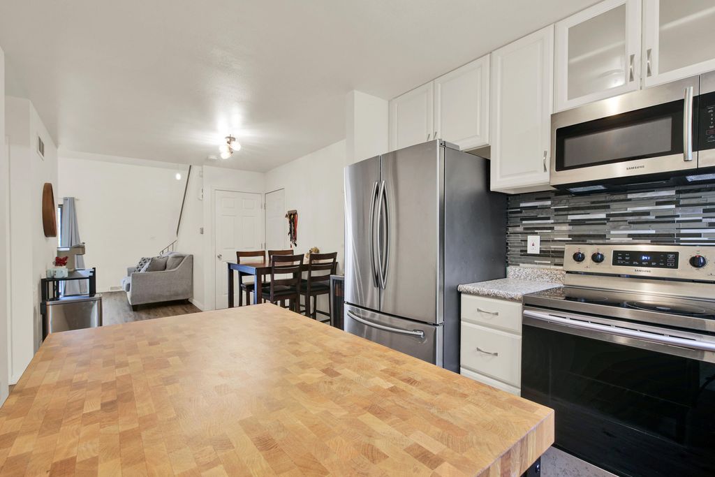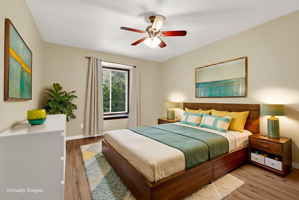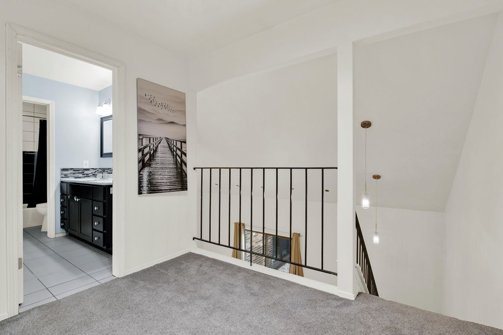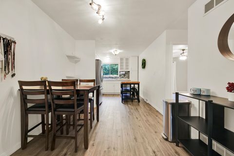 Private entrance overlooking trees and greenspace! This contemporary 3 BED, 2 BATH two-story condo features cathedral ceilings, a gas fireplace, and LVP floors carried through most of the main level. Kitchen offers stainless steel appliances, white cabinetry, island seating, and tile backsplash. Main-level bedroom and full bath with tiled tub surround. Upstairs has two spacious bedrooms, full bath with double sinks, and owner's suite with double closets. Bring your finishing touches to the partially finished lower level with rec room, office or playroom, roughed-in bath, and laundry. Includes surface parking and private attached garage. Enjoy private patio, community pool, tennis, play area, and walking trails. Pets welcome!