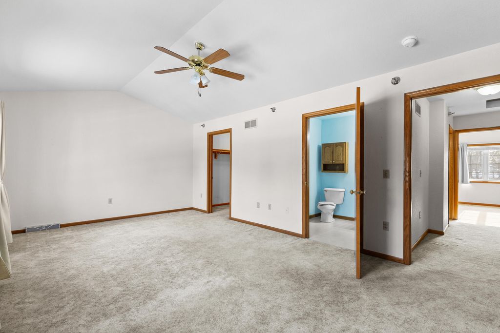 Here is the one you have been waiting for. Spacious two bedroom, two and a half bathroom condo in a great location. Inside you'll find an open concept layout. The kitchen overlooks the gigantic living room with gas fireplace, lots of natural light. Large half bathroom on the main. Upstairs features a large primary bedroom with a huge walk-in closet and private bathroom. Second bedroom is also spacious with its own walk-in closet. Full bathroom and full size washer/dryer area. Basement has easy rec. room potential, lots of storage space and is plumbed for a future bathroom. The two car attached garage completes this great deal. Condo fee includes water and sewer. Make your appointment today!!!