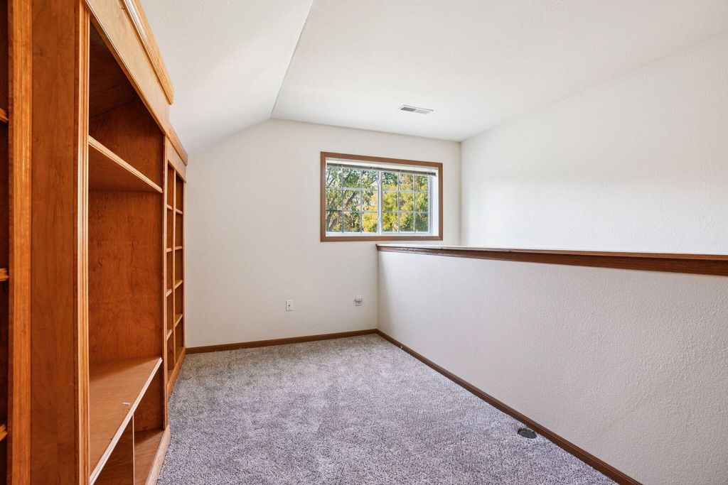 This beautiful condo is move-in ready, with vaulted ceilings in a bright and spacious open-concept living room, flowing into the breakfast bar and kitchen area with full-size in-unit laundry. The spacious enjoyment continues with a loft full of natural light from the skylight, professional closet organizers throughout, built-in bookshelves for storage and decor, and the attached 2-car garage with ample shelving and additional storage. Cozy up in front of the gas fireplace, perfect for those chilly Wisconsin nights, with a view out toward the private balcony and courtyard. Plenty of free guest parking in driveway and street! Known ages - Roof (2019), Furnace (2012), A/C (2012), Water Heater (2008)