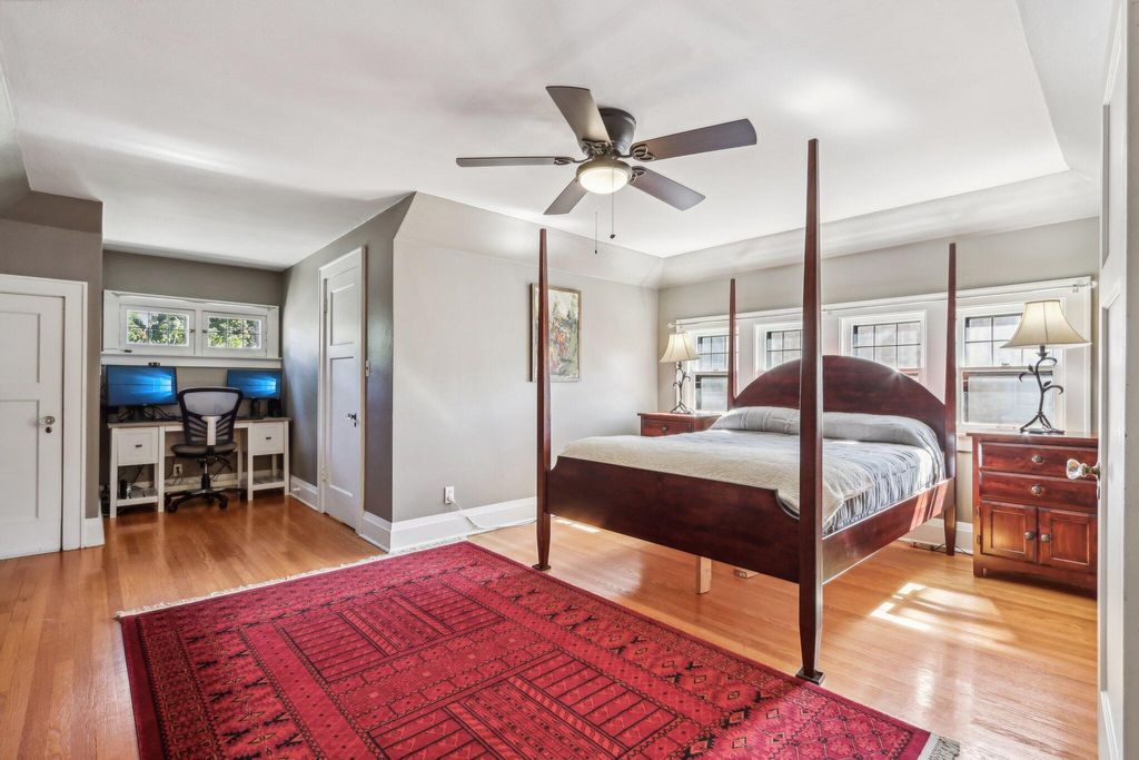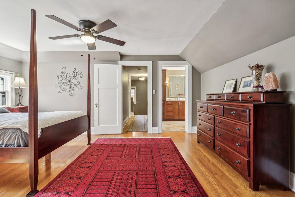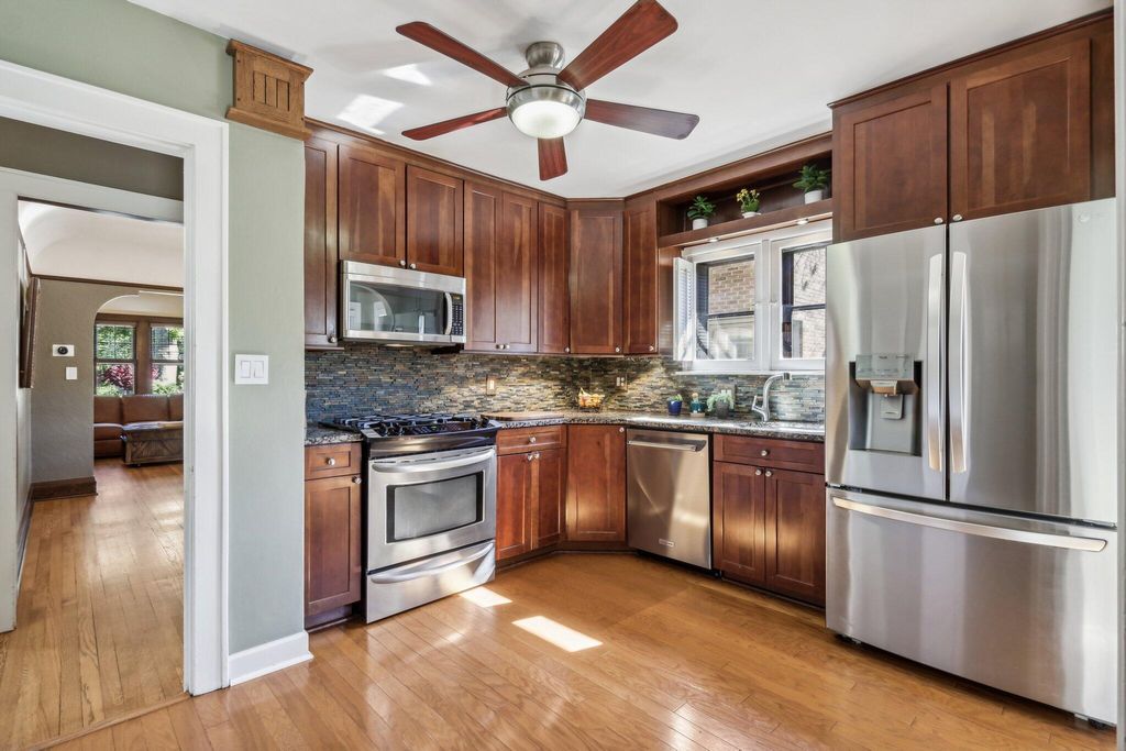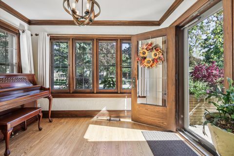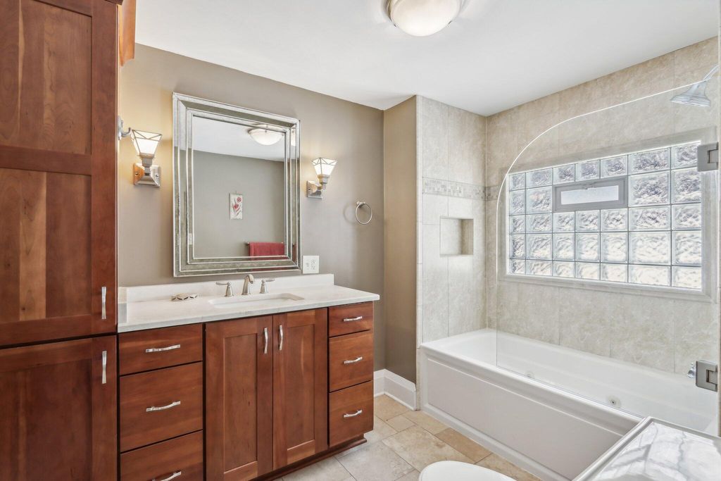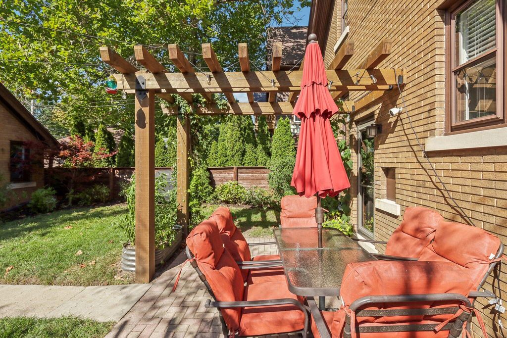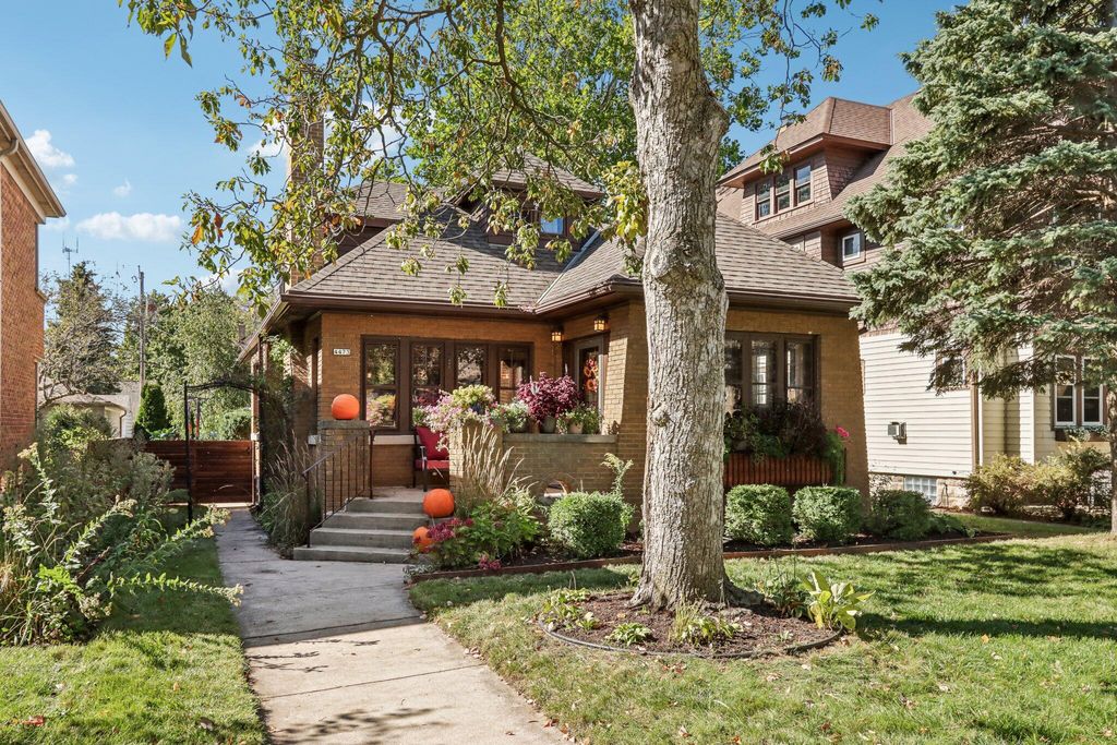 Be Home in this well kept and updated brick Bungalow set on a quiet street. Walk into a sunlit Sunroom area with maple flrs. that continue through the entire first flr. A spacious Living Rm with NFP and coved ceiling has arched openings that lead to a Lg DR with set in buffet. Enter the updated Kitchen with sun lit cozy sit-down area that has a new Refrigerator and DW. 2 BRs and tiled Full BA complete main level. The upper level is set for the Primary Ste. and 5th BR/Sitting Rm. where room was bumped out to create a larger Rm. Nice WIC across hall from 5th BR. A large open Primary STE w/WIC includes an updated Primary BA w/heated flrs.. Newly updated LL is set up for entertaining and includes Lg BR w/Egress window and LG Tiled Full BA. Beautiful backyard w/Patio,Pergola and Gardens.