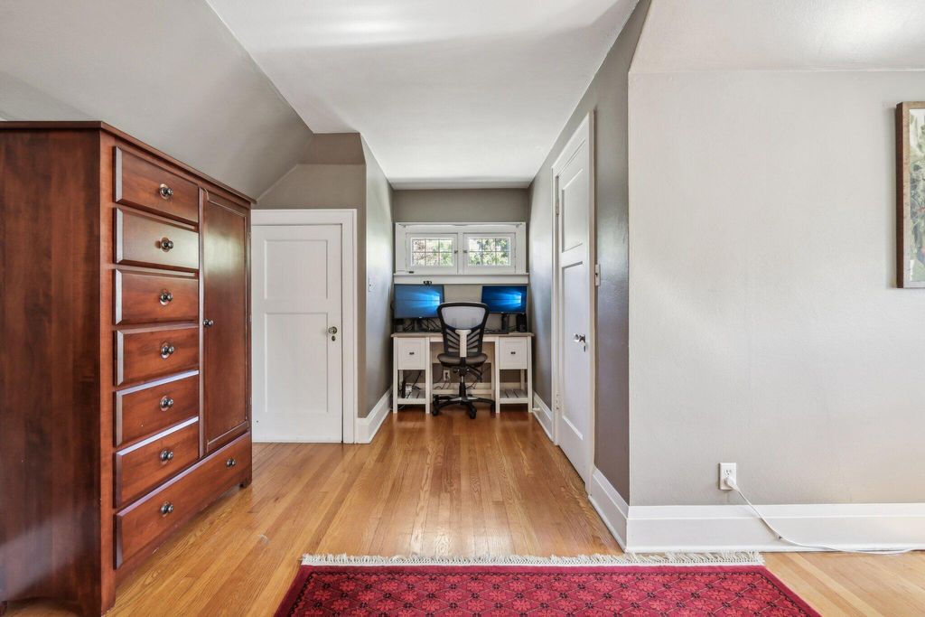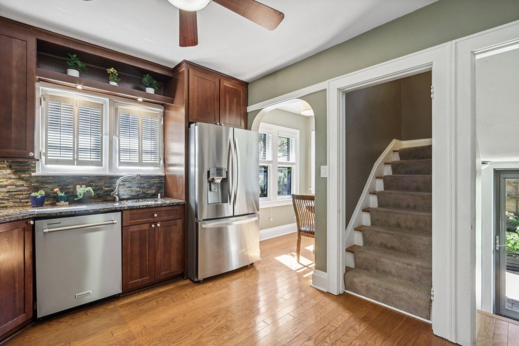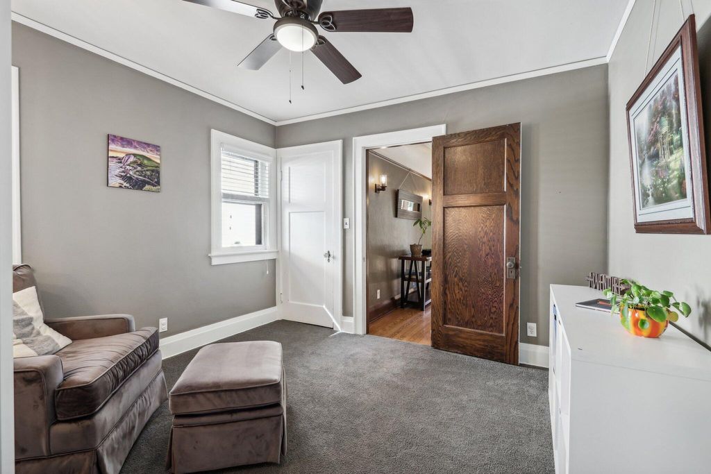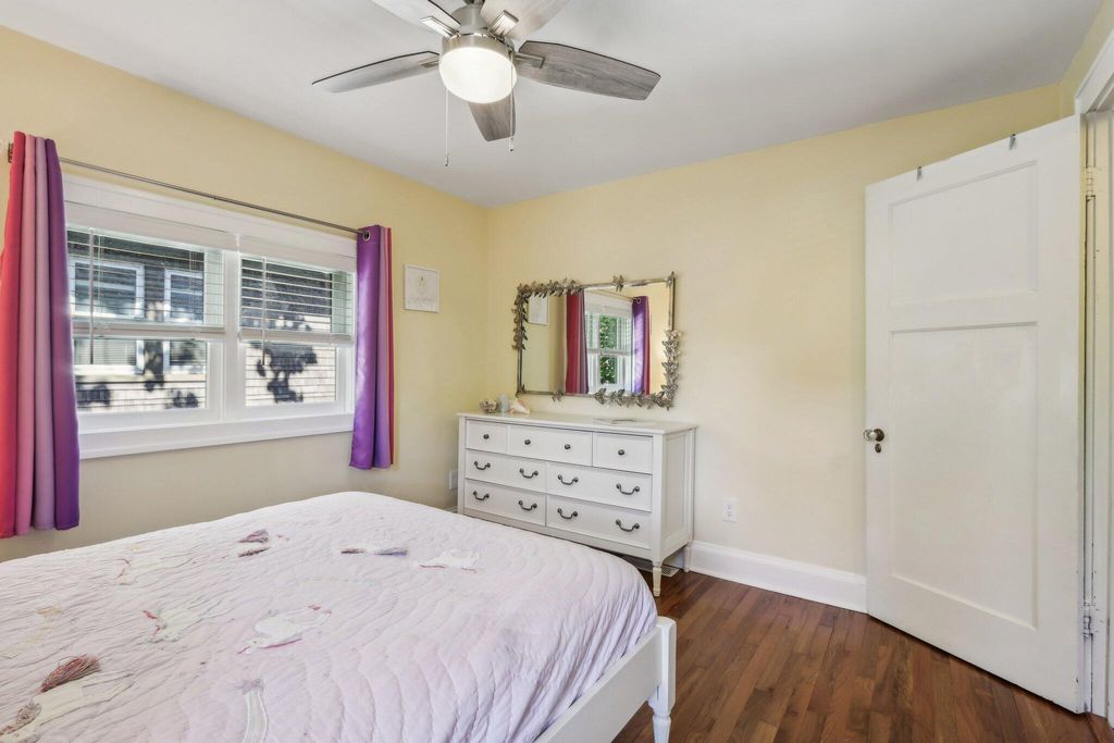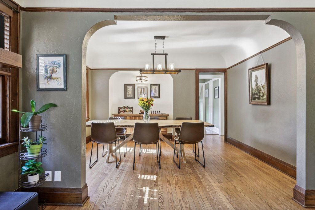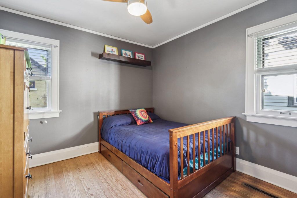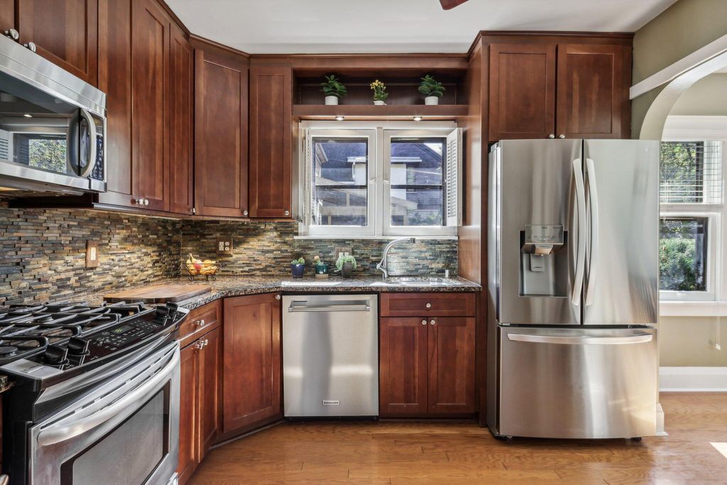 Be Home in this well kept and updated brick Bungalow set on a quiet street. Walk into a sunlit Sunroom area with maple flrs. that continue through the entire first flr. A spacious Living Rm with NFP and coved ceiling has arched openings that lead to a Lg DR with set in buffet. Enter the updated Kitchen with sun lit cozy sit-down area that has a new Refrigerator and DW. 2 BRs and tiled Full BA complete main level. The upper level is set for the Primary Ste. and 5th BR/Sitting Rm. where room was bumped out to create a larger Rm. Nice WIC across hall from 5th BR. A large open Primary STE w/WIC includes an updated Primary BA w/heated flrs.. Newly updated LL is set up for entertaining and includes Lg BR w/Egress window and LG Tiled Full BA. Beautiful backyard w/Patio,Pergola and Gardens.