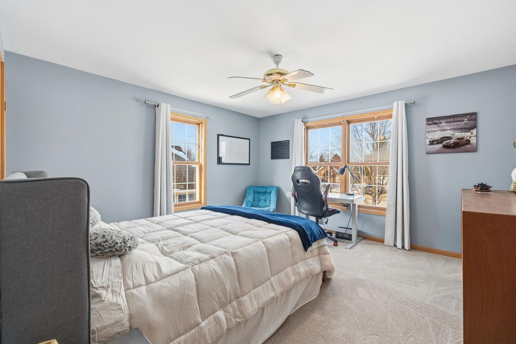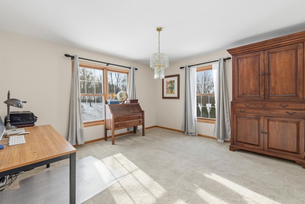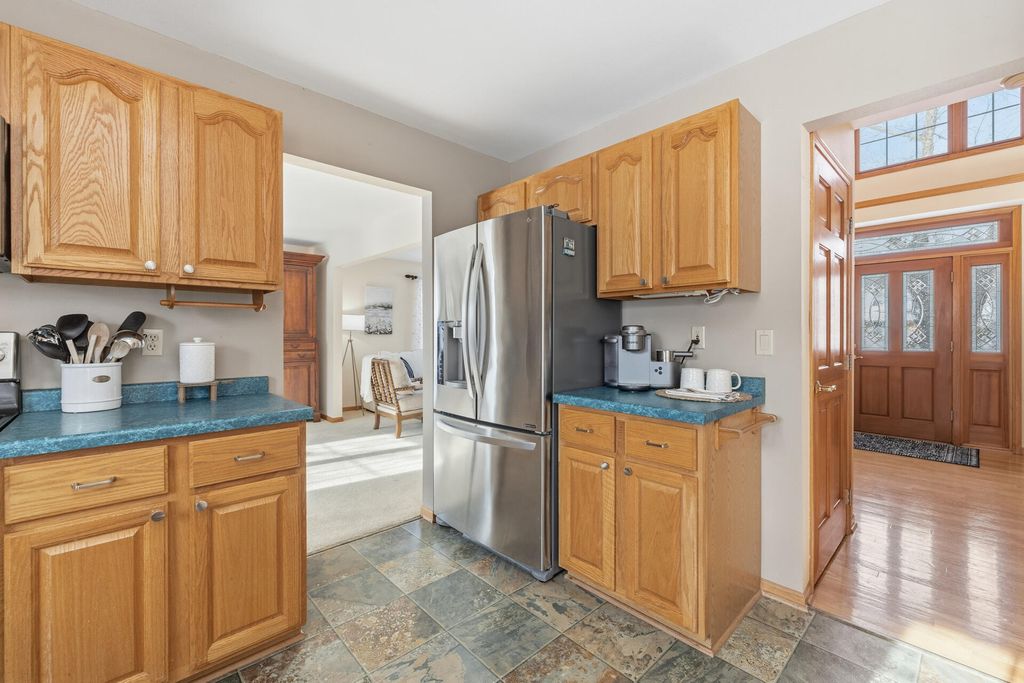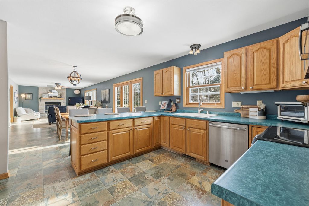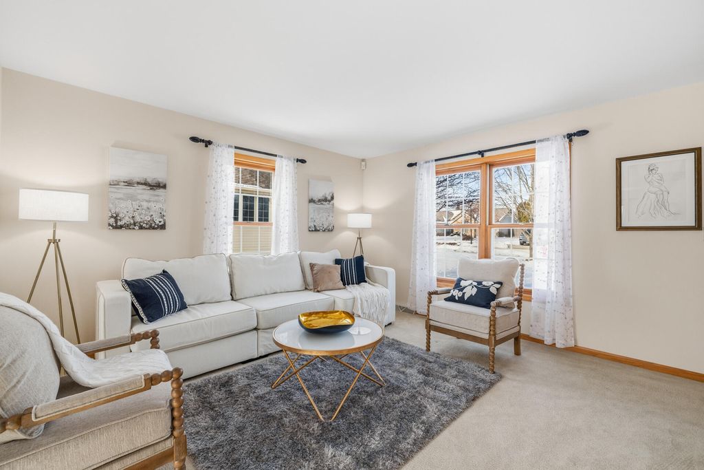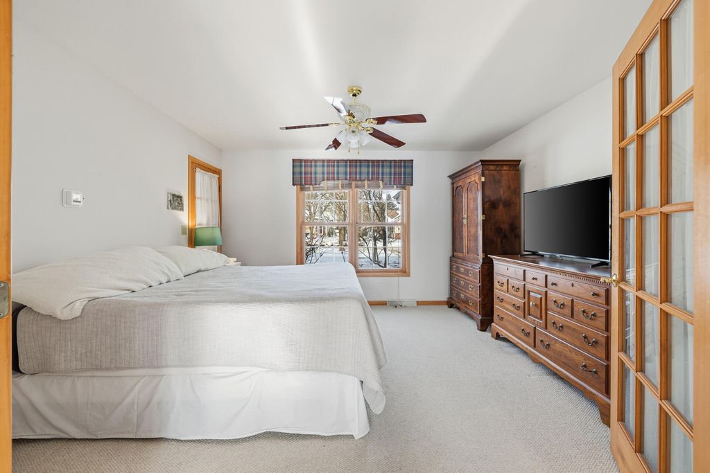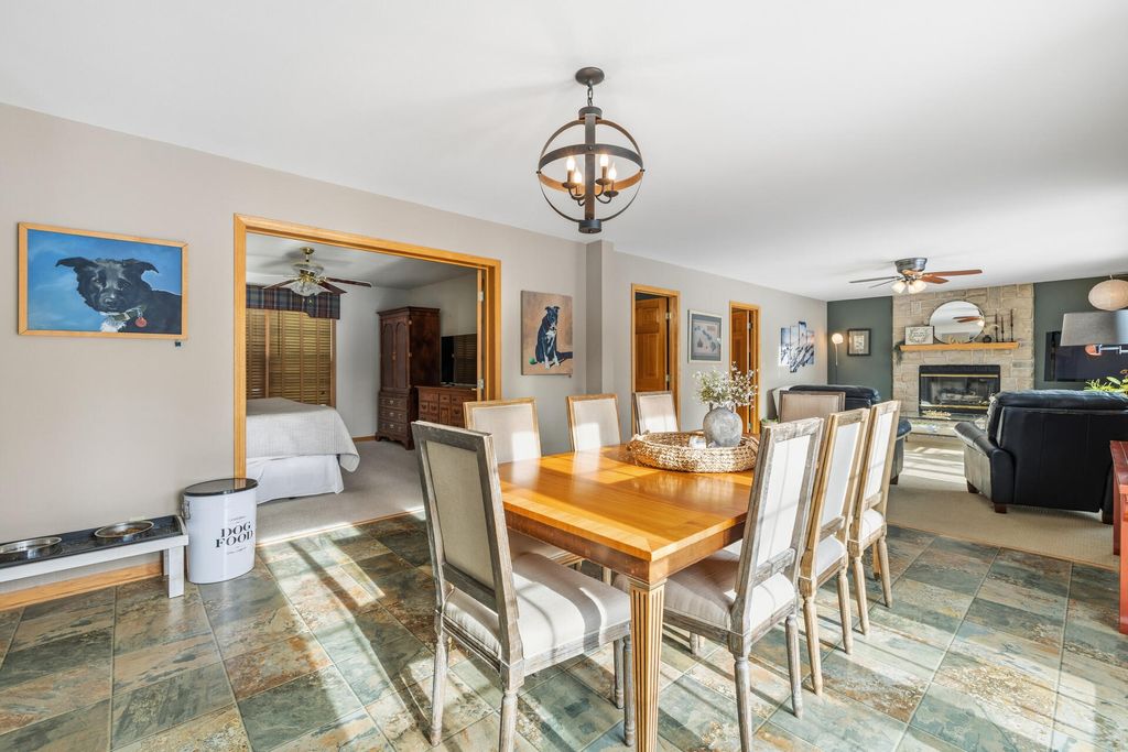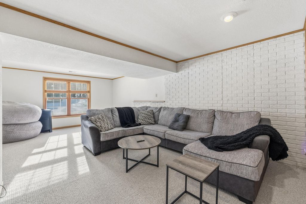 Room to roam in this expansive open concept home. Enter into the grand 2 story foyer. Main floor boasts 2 large living rooms, GFP, 2 dining areas, laundry, large kitchen with French doors leading into a den/office space. Step out onto the large deck for entertaining that leads to a sprawling backyard on over a half acre in town. Lower level has bright airy rooms with full size windows, room for games, entertaining or extra living spaces with walkout to a concrete patio and back yard. 4 generous sized bedrooms all together on the upper level offer much needed walk-in closet space, primary suite with vaulted ceiling and sitting area, entrance to huge closet from bedroom and bath, jetted oversize tub and separate shower, double vanity. Put in your personal touches and make it home.