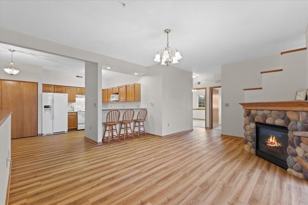 BACK ON THE MARKET due to buyer financing. Condo is ready for the next buyer! Sought after 1st floor condo w/ zero entry. 2 spacious bedrooms, 1 w/ensuite full bath. 2nd full bath in hall for guests. Open concept Kitchen/dining/living room & rare partially finished FULL basement. Pet friendly! Come fall in love!