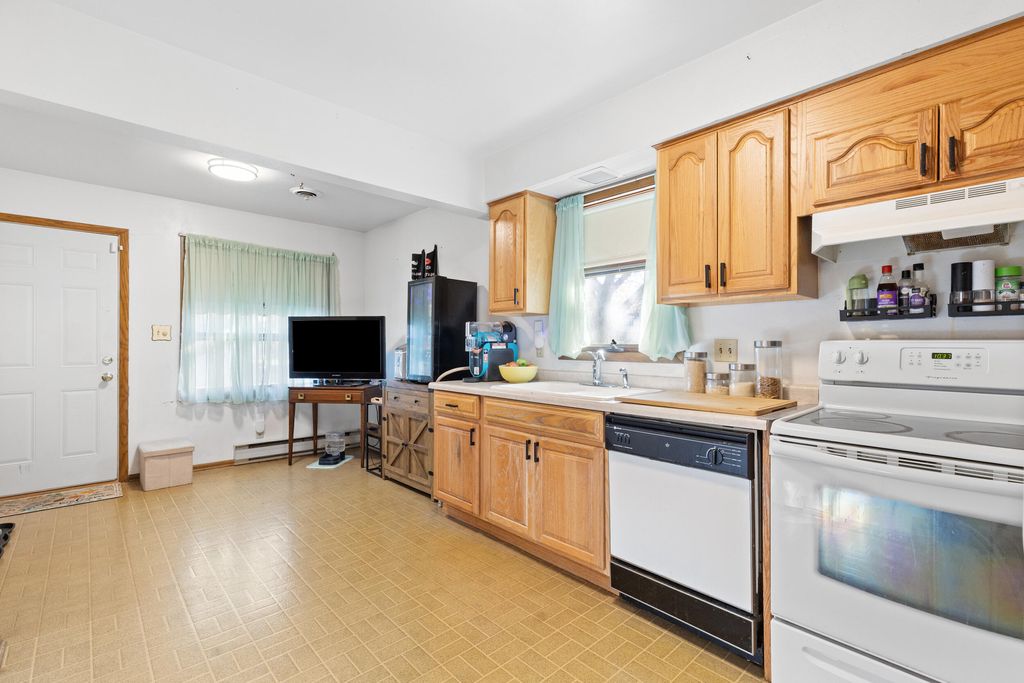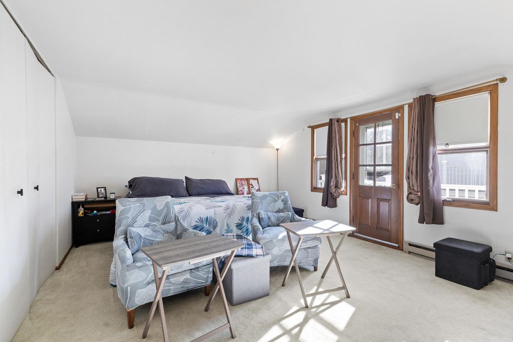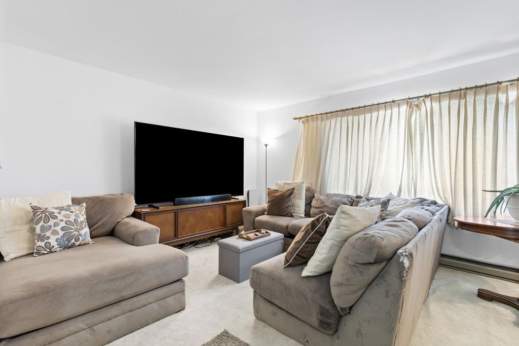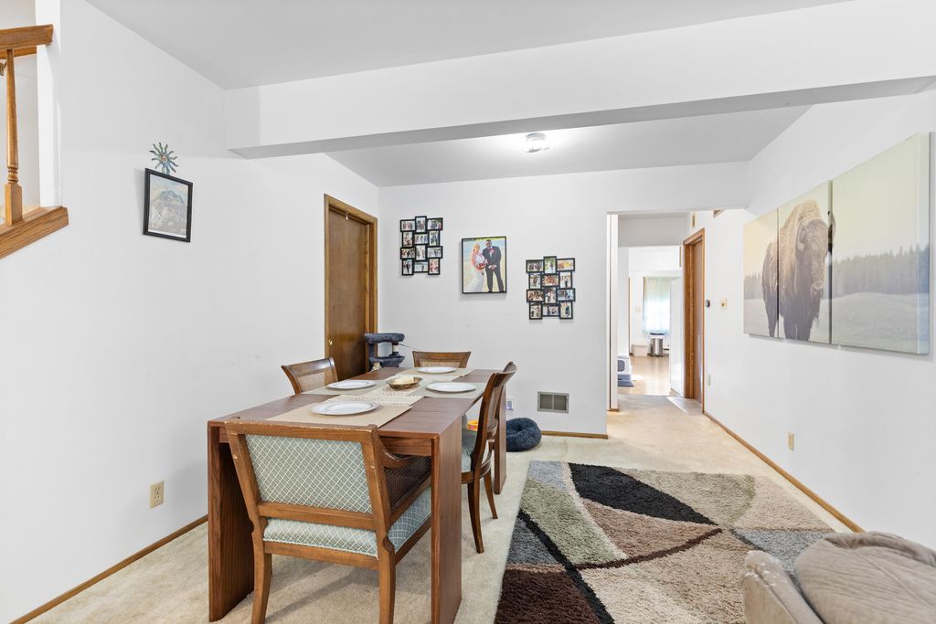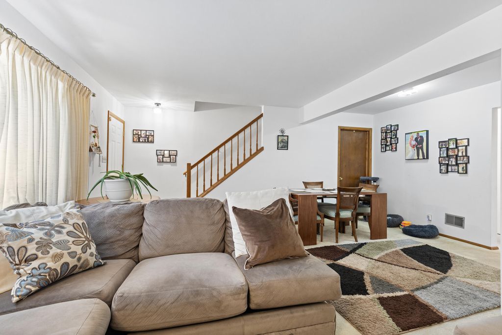 Camelot Village End unit condo that features a spacious main floor plan with a wall of windows for added sun exposure! Spacious first floor bedroom, right next to a full bathroom. Upstairs main bedroom with a full bathroom. Enjoy the weather with a cup of coffee or read your favorite book on the balcony. 2 cats allowed. Private entry, balcony, back patio and an attached garage, along with space for parking in the driveway make this condo very appealing. Basement offers plenty of storage and laundry area for your convenience.