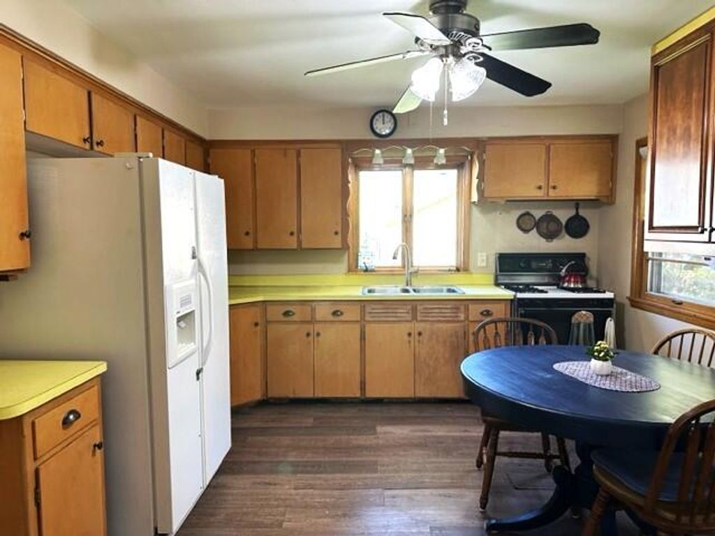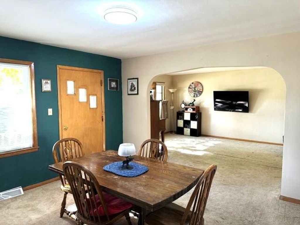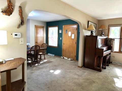 Welcome to this 3 bedroom 1 bath RANCH home in Hartford! Excited for you to see this charming home. Enter from the cute porch into the breezeway or mudroom. Large closet and built-in cabinet for lots of storage! Bright and cheery kitchen complete with eat in dinette area. Dining room and Great Room are an open concept. Call everyone lots of room here for family and Friends to gather! All three bedrooms are a great size and the full bath has new flooring! Furnace 2017,Water Heater 2017, and New Garage door. 1 car attached garage and 1 car detached garage with access from the alley. Close in time to enjoy the Holidays in your new HOME !