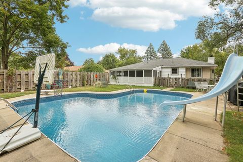 Dive into your dream home! This 3-bedroom ranch offers an inground pool, stunning kitchen remodel, & endless charm to make your move unforgettable. Step inside through the front entrance or via the ramped screened porch in the back. Spacious living room boasts hardwood floors, a beautiful bay window, & a cozy stone fireplace. Expansive kitchen & connected dining room has been fully updated with new SS appliances, countertops, cabinetry, flooring, & backsplash. The full, partially finished basement offers endless possibilitieswhether you're looking to create a family room, workshop, or rec room! Outside, enjoy the 2.5-car detached garage, a bonus storage shed with a tall garage-like door for larger items, & a double-wide driveway offering ample parkingideal for extra pool party guests!