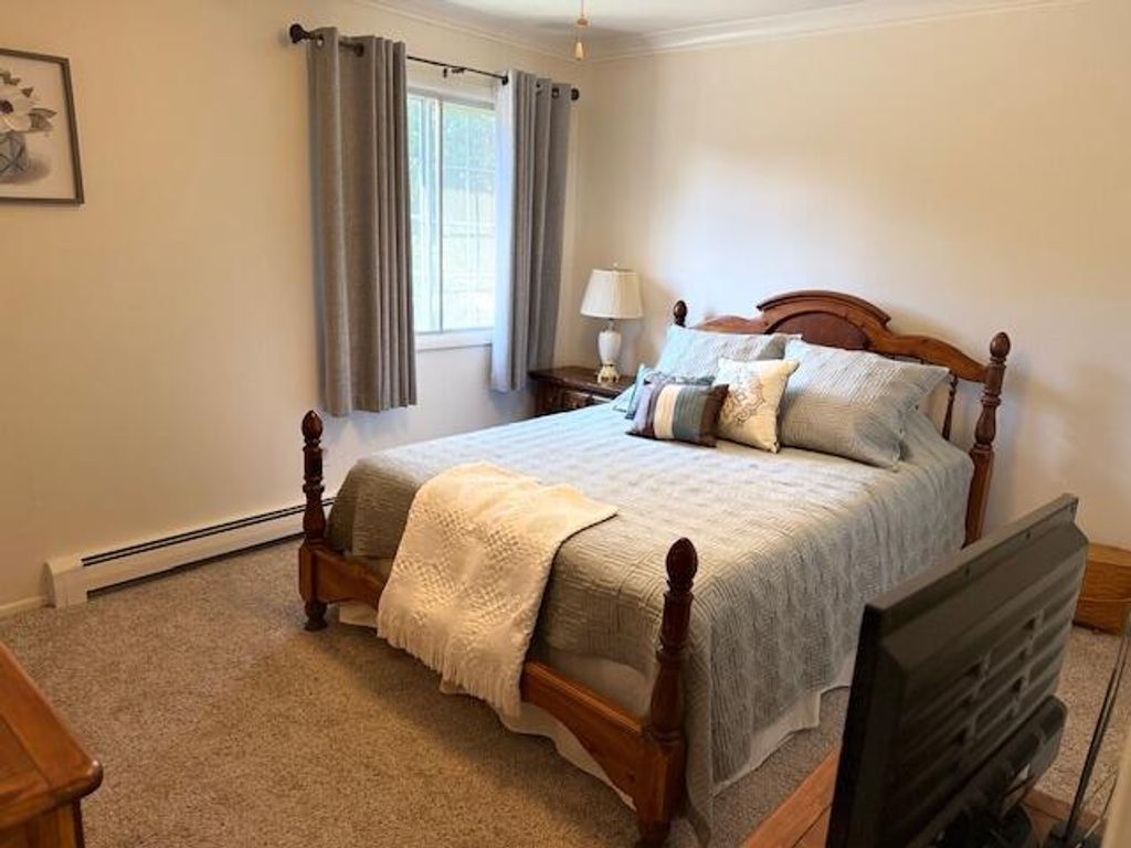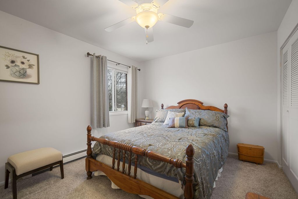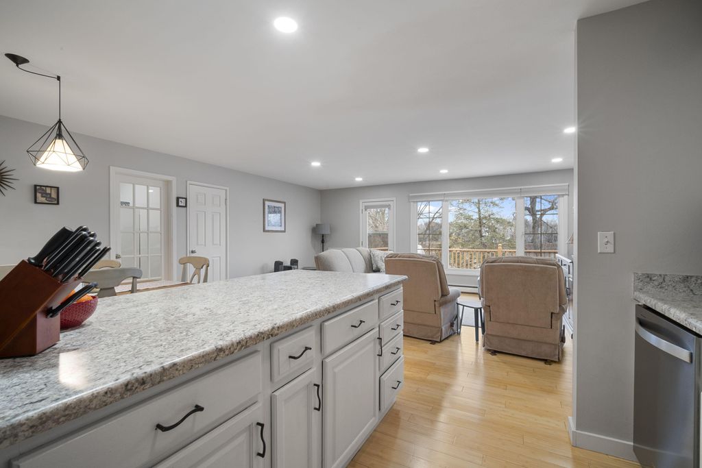 Enjoy carefree living in this stylish 2BR, 1.5BA condo overlooking Laurel Lake! The bright, open-concept living area flows into a modern kitchen with stainless appliances, bamboo flooring, and an island perfect for entertaining. Both bedrooms are spacious with generous closets, and the primary includes a convenient half bath. A versatile flex room offers storage or office space. Relax on your private deck and take in the tranquil setting. Heat, water, and sewer are included. Enjoy free on-site laundry, one underground parking space, an additional reserved outdoor space, and a storage closet. A wonderful place to call home!