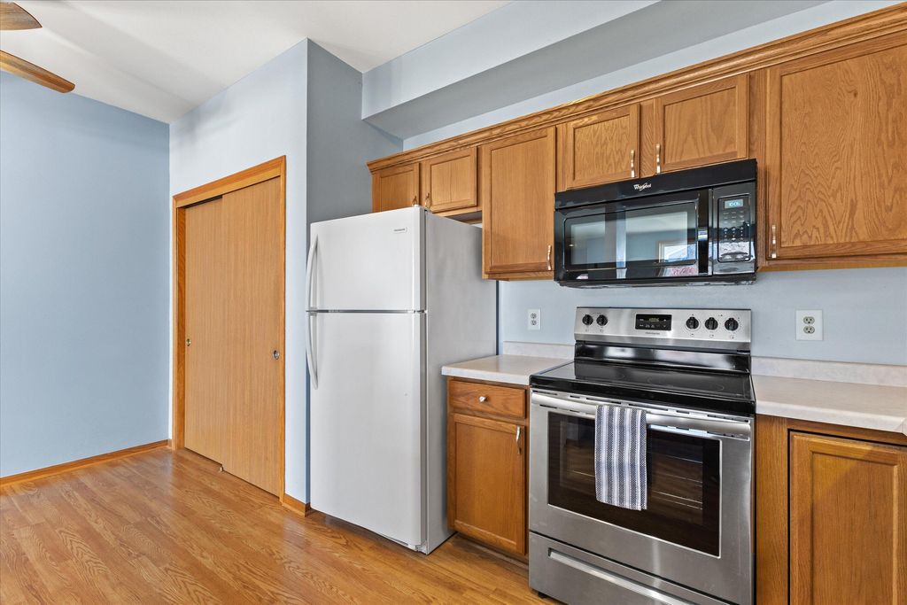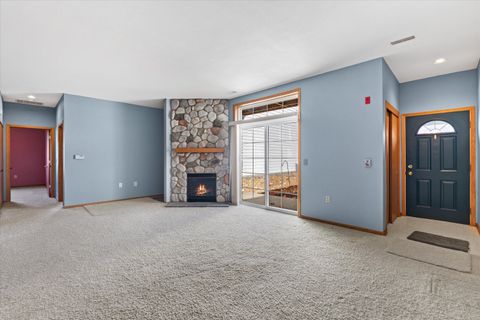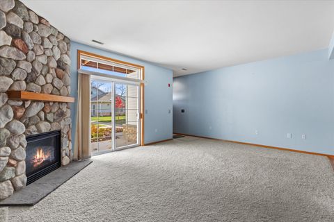 Welcome to this spacious light filled first floor condo. Cozy up by the gas fireplace and watch the snow fall out the large patio door. Entertain your family with the open kitchen and dining room. 2 car attached garage with zero step entry. Updated appliances included and in unit laundry make this condo turn key for any buyer. Double closets in the Primary en suite bedroom. Neutral decor throughout and walkable to stores and restaurants,