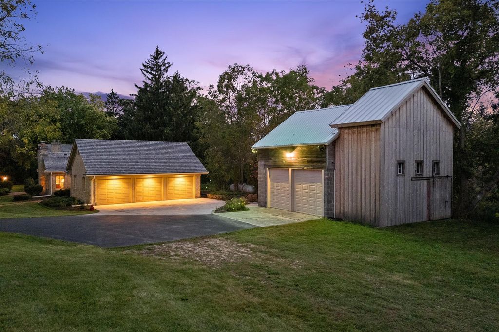Embrace the beauty and serenity of this remarkable 29-acre horse farm in picturesque Cedarburg, WI. The luxurious main residence offers over 5,000 sq. feet of living space, featuring 4 bedrooms, a 1st-floor primary suite, 2 full bathrooms, 2 half bathrooms, and a 3-car attached garage. The property also includes a charming carriage house, perfect for accommodating guests or staff, 2-car detached garage with bonus room. Equestrian enthusiasts will appreciate the well-appointed facilities, including a 12-horse stable with tack room, lounge, and utility room. The expansive indoor horse arena allows for year-round training and exercise, while the barn provides additional storage. The estate's rolling landscape encompasses picturesque ponds and pastures, offering a captivating country setting.