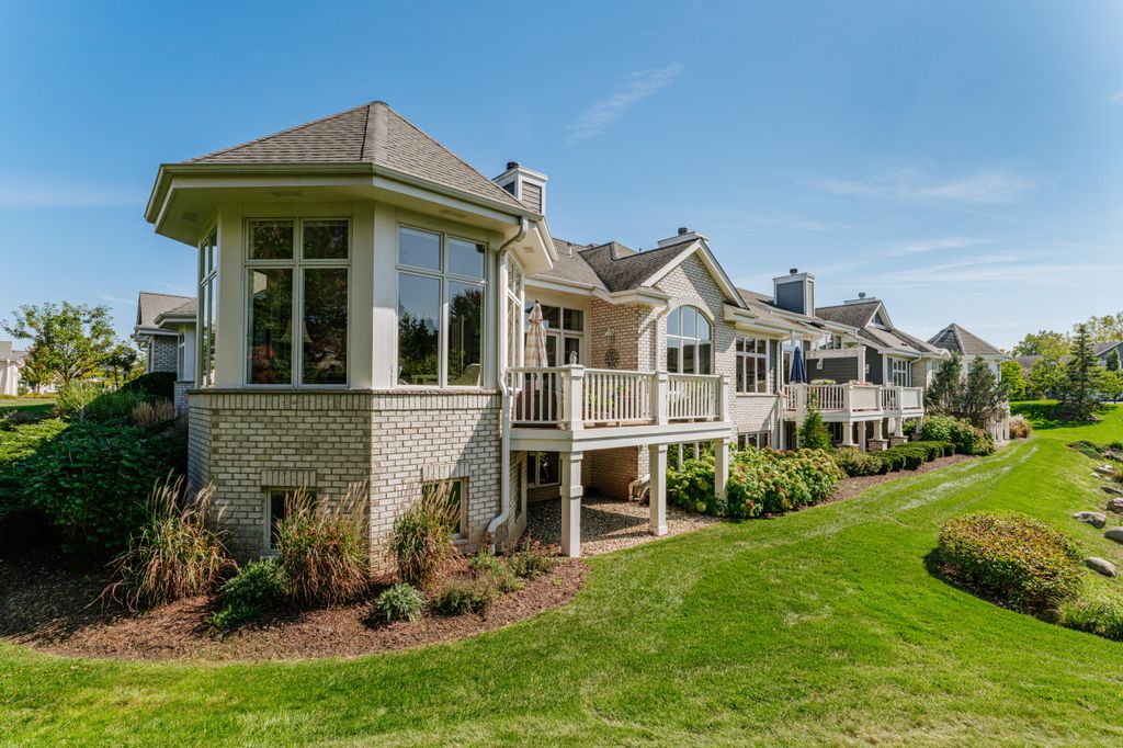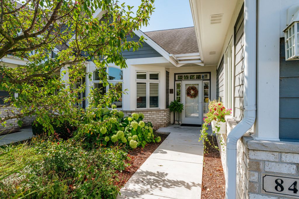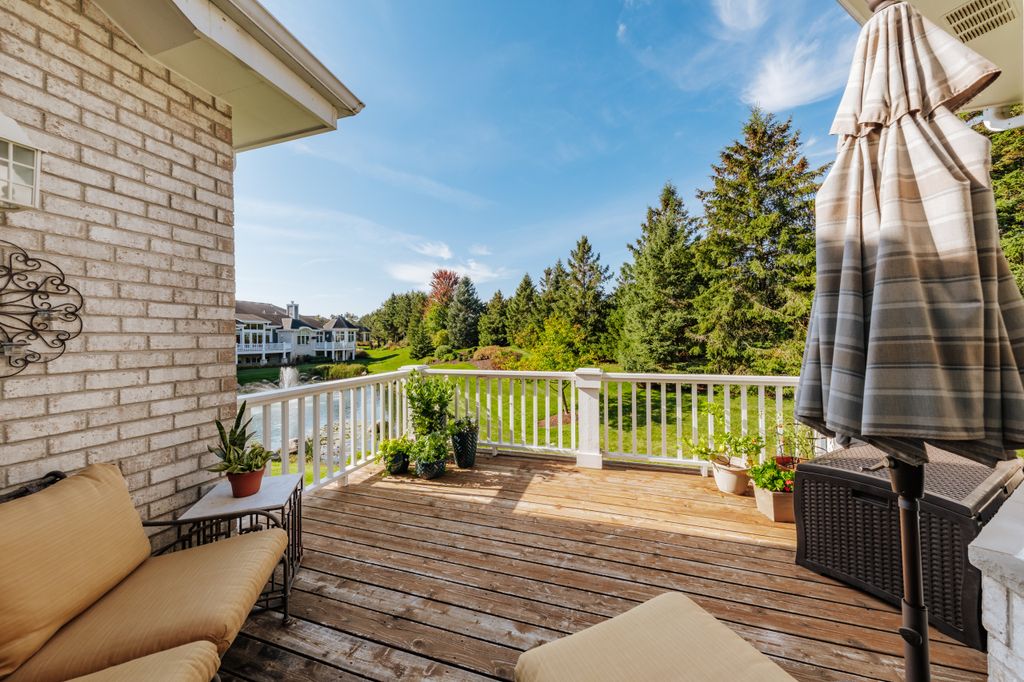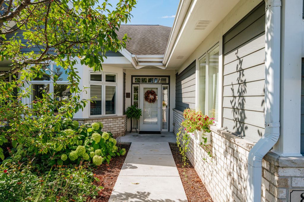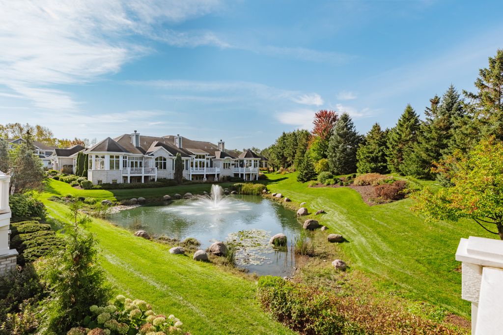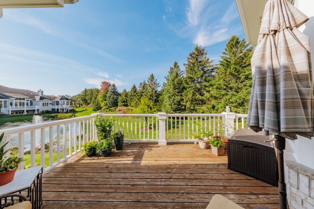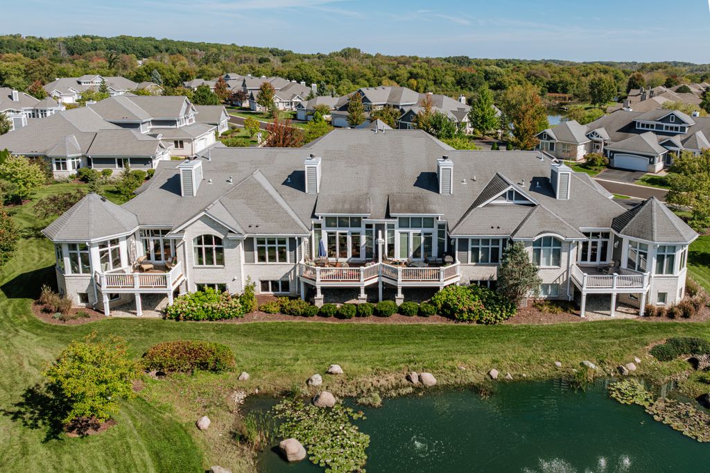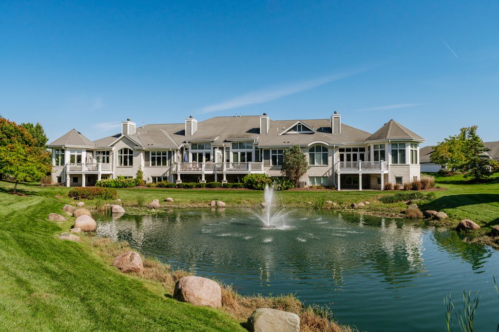 Carefree Living at Clearwater Bay! Refreshed & updated end unit surrounded by beautiful landscaping & a mesmerizing pond view. Volume ceilings combine w/soothing color palette & oversized windows create the perfect living environment. Stunning KIT w/full array of appliances, decorative tile & endless cabinetry. KIT opens to expansive GR w/GFP. Enjoy the sunsets on the western facing deck! Wonderful sunroom. Luxurious primary w/diamond star bath. Recently finished garden level is the perfect spot to unwind! LVP flooring flows throughout & daylight windows bring the outdoors in. The party bar perfect for gameday! 2 rooms can be utilized as BDRMs. Full bath & den/office for convenience. Clearwater Bay has walkability to the popular Bluemound Rd corridor. Welcome to hassle-free condo living