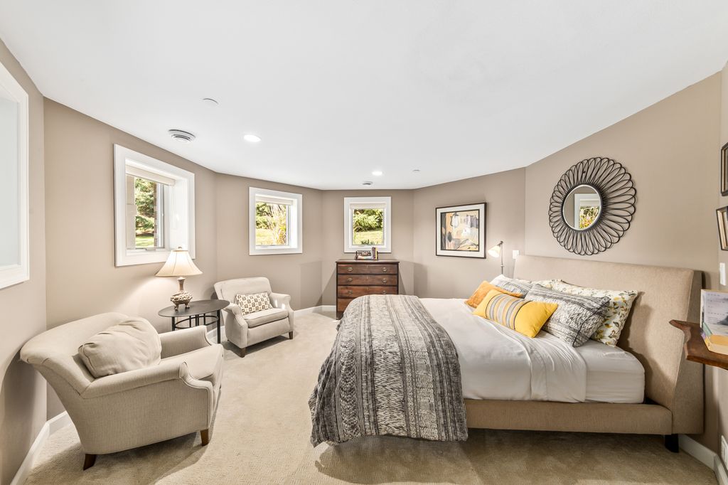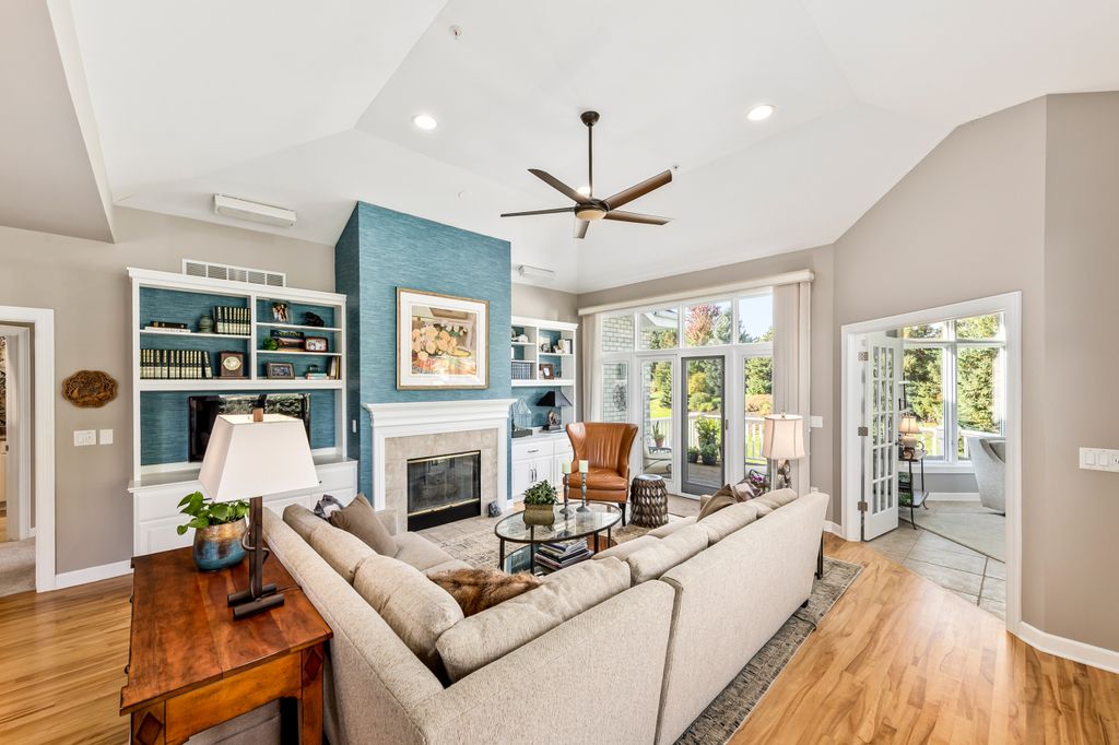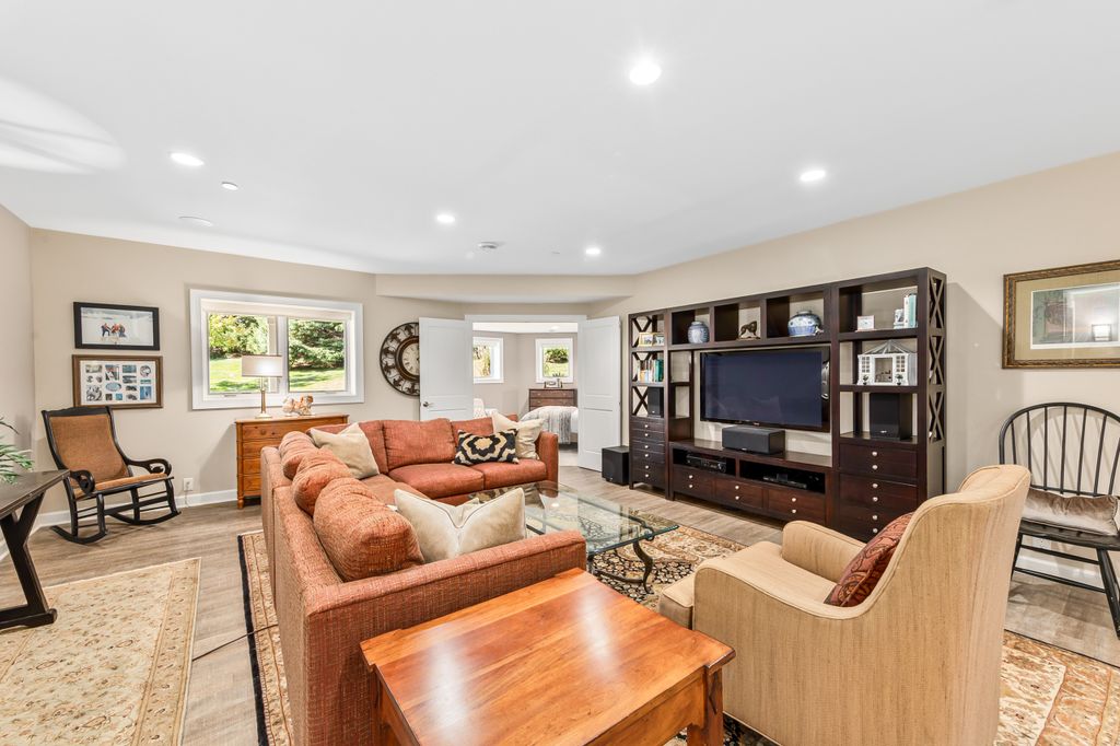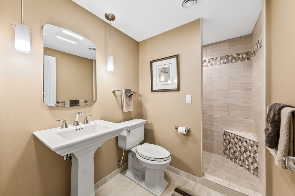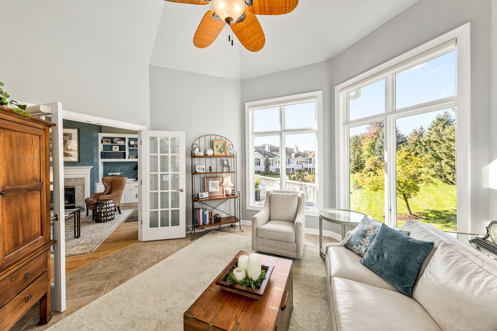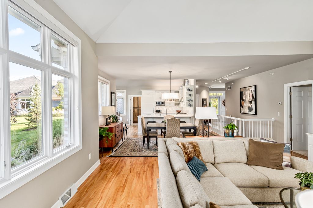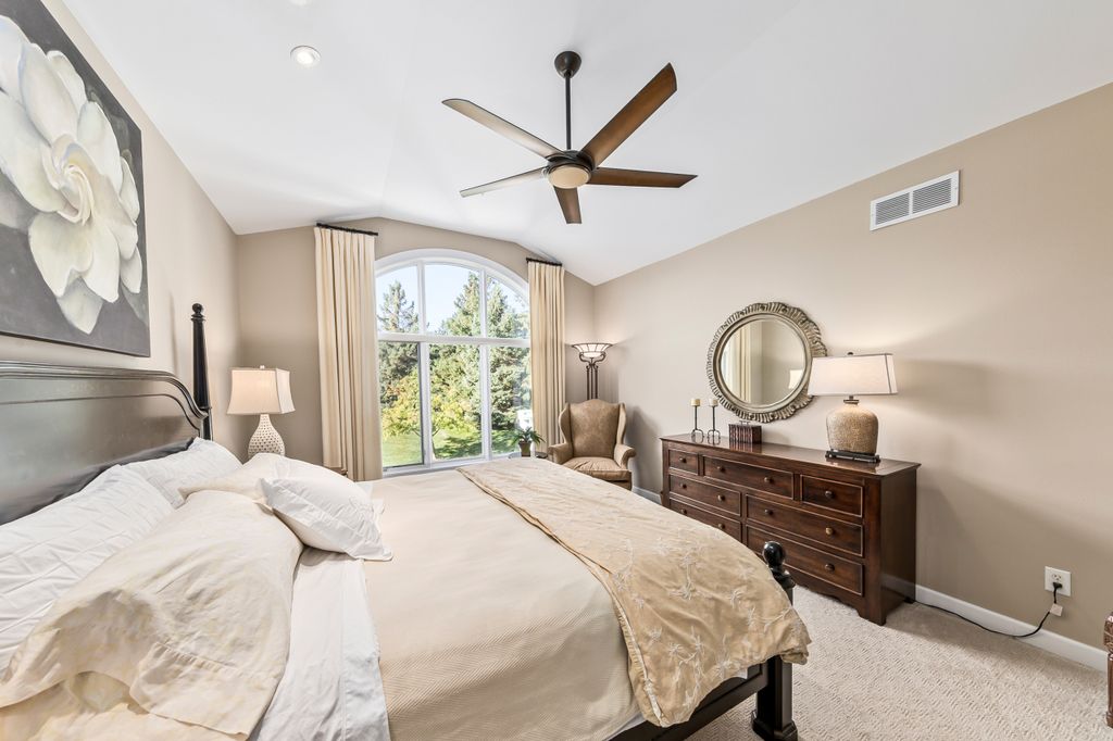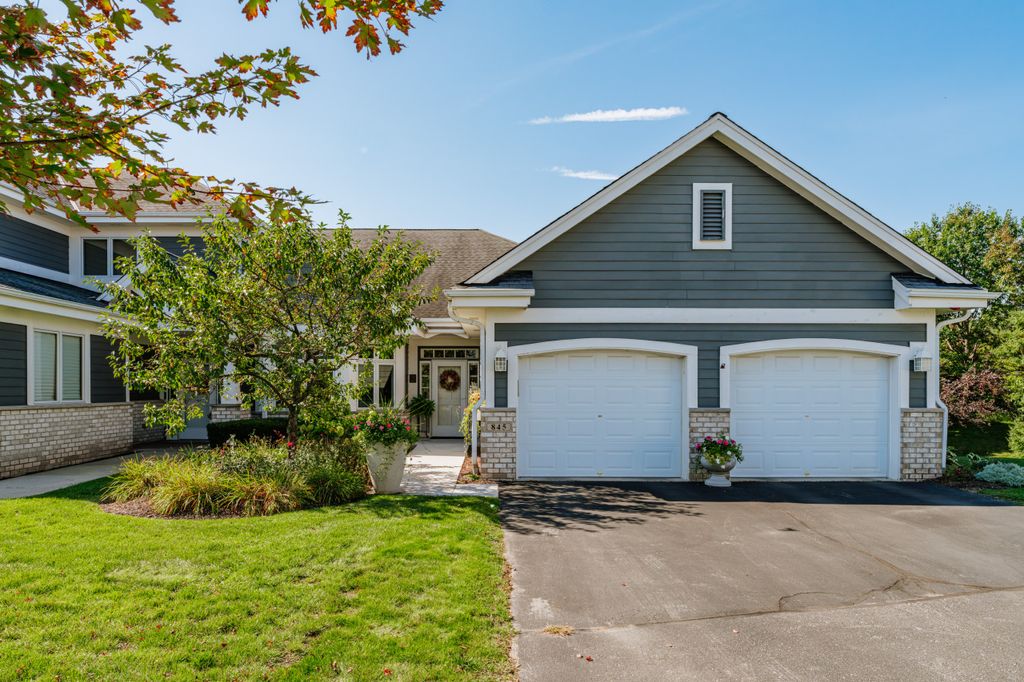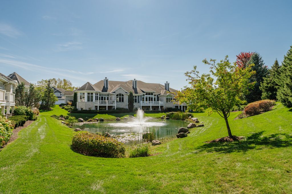 Carefree Living at Clearwater Bay! Refreshed & updated end unit surrounded by beautiful landscaping & a mesmerizing pond view. Volume ceilings combine w/soothing color palette & oversized windows create the perfect living environment. Stunning KIT w/full array of appliances, decorative tile & endless cabinetry. KIT opens to expansive GR w/GFP. Enjoy the sunsets on the western facing deck! Wonderful sunroom. Luxurious primary w/diamond star bath. Recently finished garden level is the perfect spot to unwind! LVP flooring flows throughout & daylight windows bring the outdoors in. The party bar perfect for gameday! 2 rooms can be utilized as BDRMs. Full bath & den/office for convenience. Clearwater Bay has walkability to the popular Bluemound Rd corridor. Welcome to hassle-free condo living