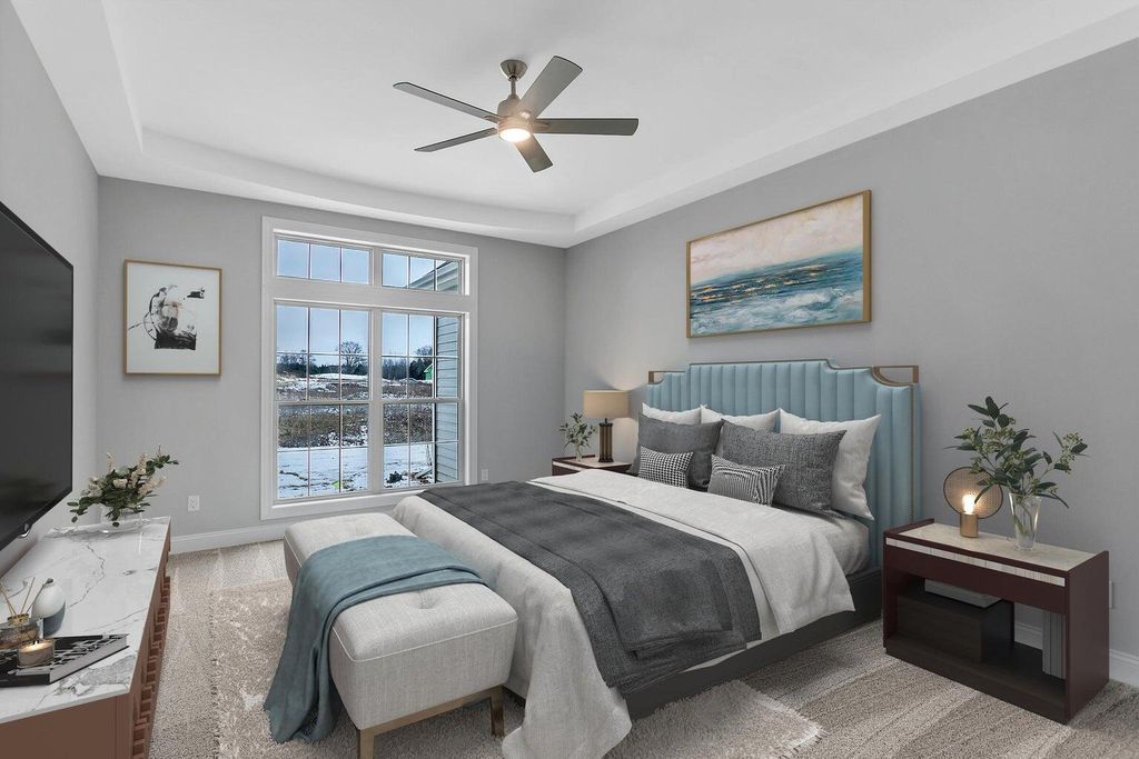 Discover luxury living in the highly desirable DIAMOND floor plan currently under construction at Stone Lake Condominiums. This 2-bedroom, den & SR condo features elegant wood floors, ceramic tile in bathrooms, and a spa-like tiled shower in Bath 1. The open-concept kitchen, dining, and great room boast 12' vaulted ceilings, complemented by a walk-in pantry and oversized island. The foyer welcomes you with 12' ceilings, and the den showcases a unique patterned ceiling treatment. Nestled around a breathtaking 27-acre Quarry Lake, this home offers an unmatched blend of modern comfort and natural beauty. Cedarburg's vibrant downtown, with its cultural venues, museums, and renowned festivals like Strawberry Festival & Oktoberfest, ensures year-round enjoyment. Schedule your showing today!