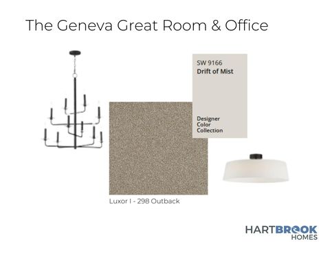 The Geneva offers a thoughtfully designed two-story layout ideal for larger families or anyone needing extra space to spread out. With four generously sized bedrooms and an open-concept main floor, this home is built for comfort, connection, and everyday function. The front foyer opens to a dramatic two-story entry and leads directly into the heart of the home: a large kitchen, dinette, and great room with a stepped ceiling and abundant natural light. A step-in pantry, ample cabinetry, and oversized island make the kitchen ideal for everyday living and entertaining alike. For even more room to gather or unwind, a sunroom can be added off the backbringing extra square footage and light into the main living space. The main level also features a private home office with dual-access