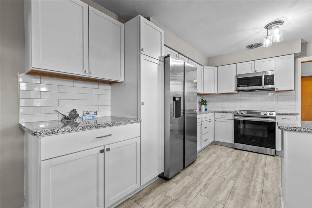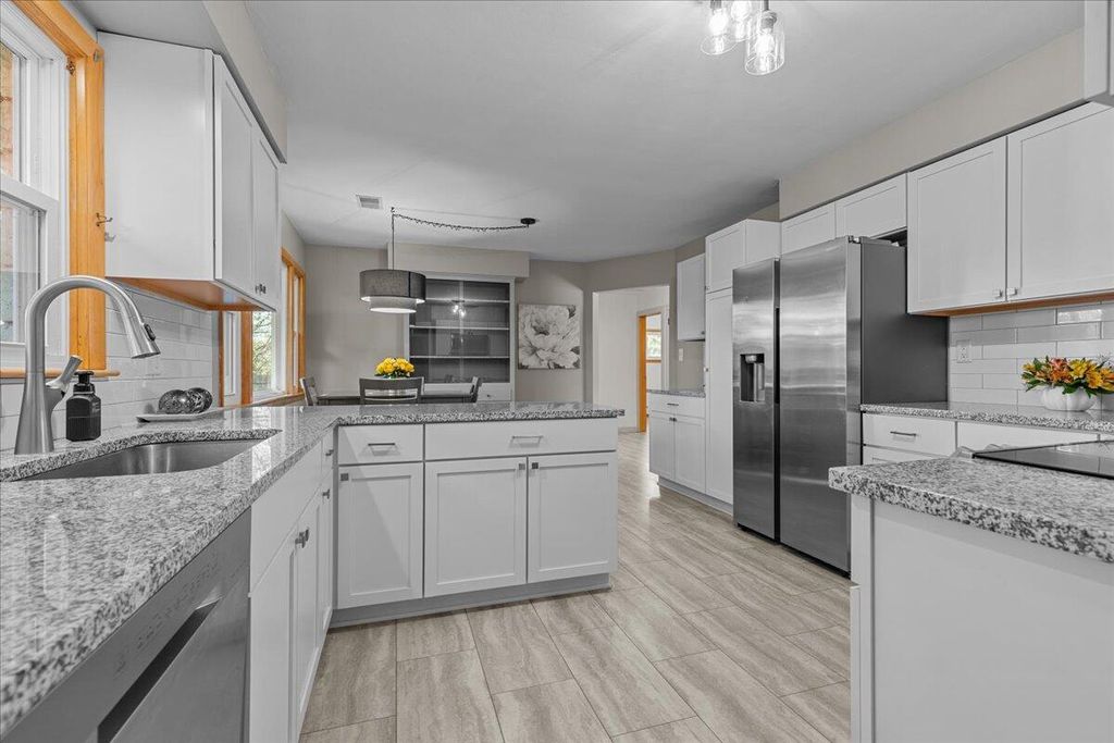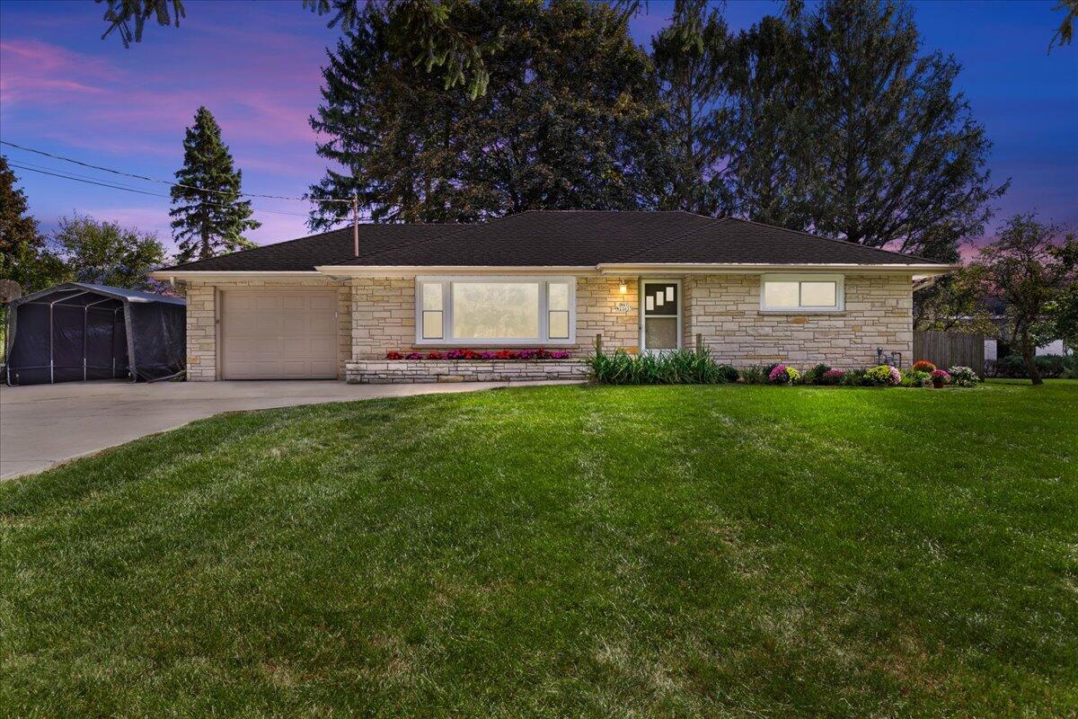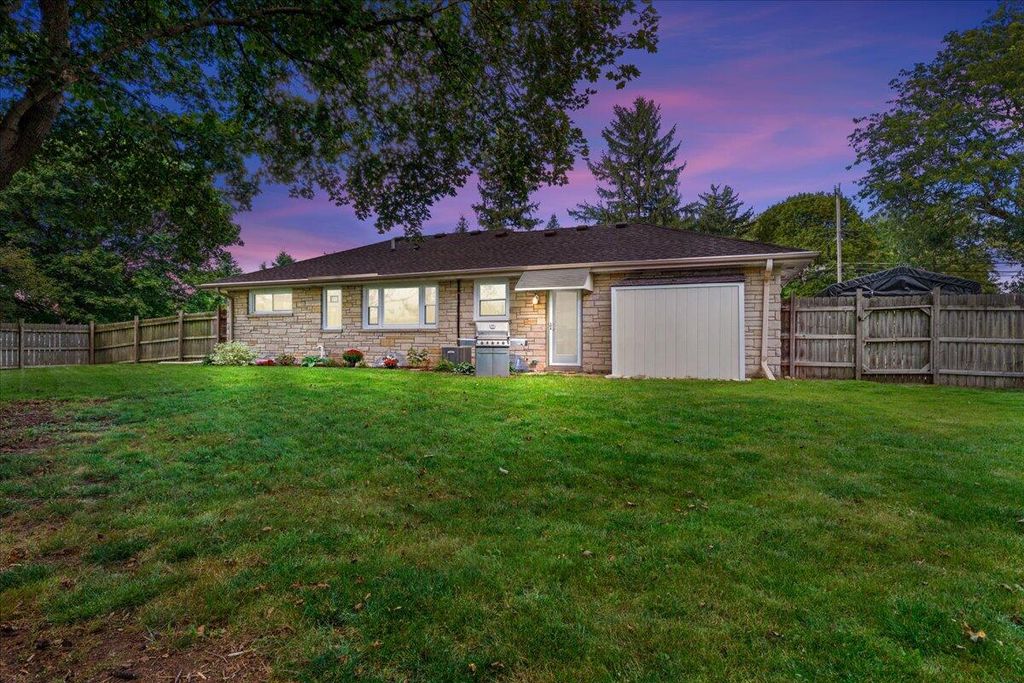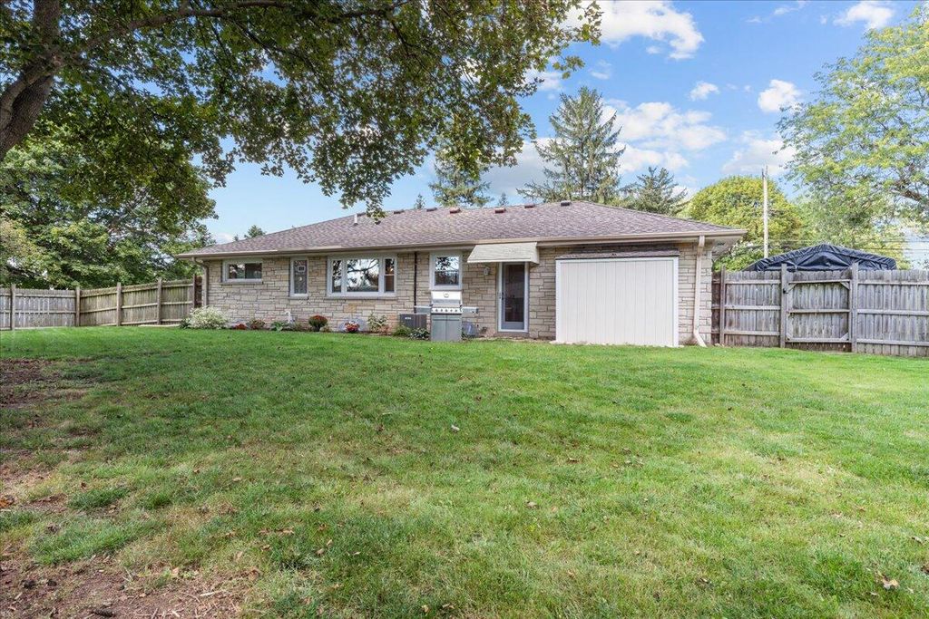 Welcome Home ! This wonderful 2 BR, one full BA Lannon stone Ranch home sits just shy of a half acre & is located in the desirable Hamilton School District.Updated KIT offers granite counters, LOTS of cabinet space & all SS appliances are included (all new in in 6/22).Both BR's have recently had HWF's refinished & both have great closet space. Primary BR includes 65'' TV. Bright & cheery Liv Rm has large picture window & brand new carpet-75 inch TV also included.Updates galore!New back door & storm in '24, windows in '23...2022-new concrete driveway & apron, added,gas line for grill, washer & dryer...2021-new boiler, A/C unit, duct work in attic,water heater,& LVP KIT flooring.Enjoy the fenced in yard-perfect for relaxing in privacy or keeping pets/kids safe. Just move in and enjoy!