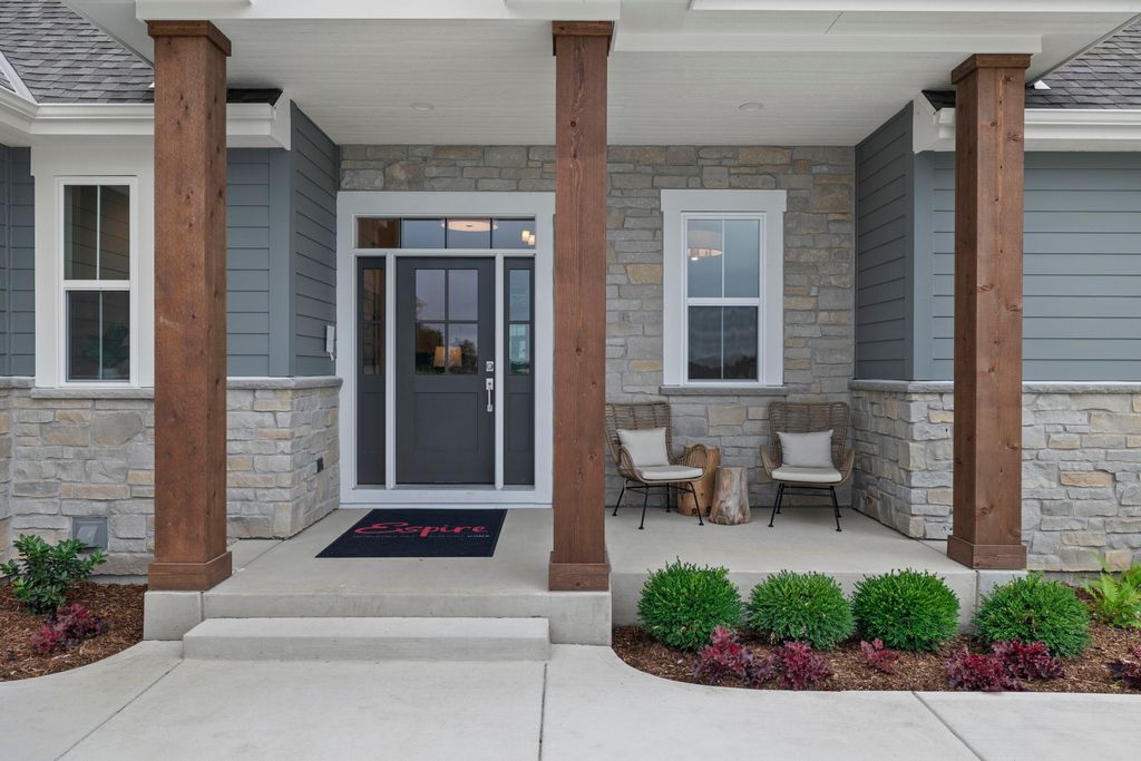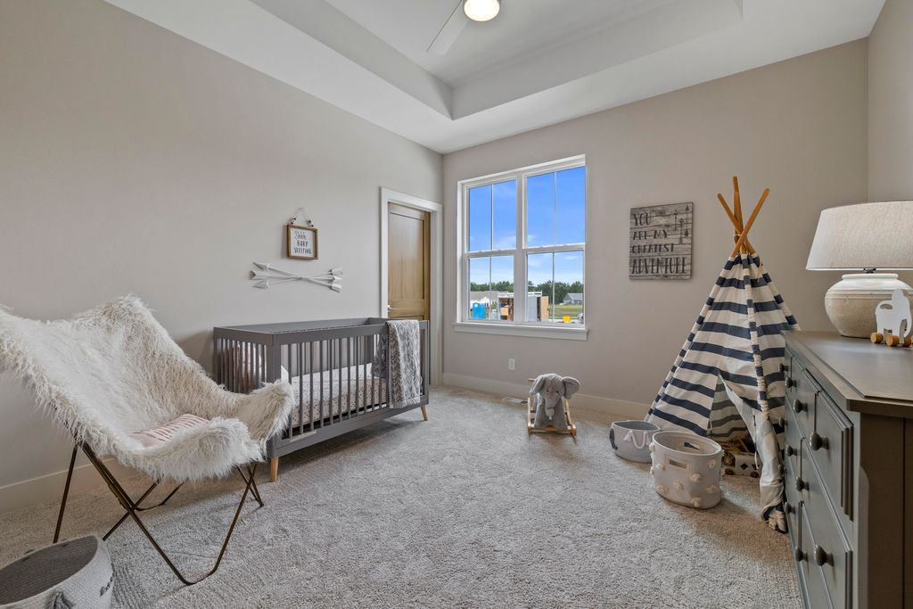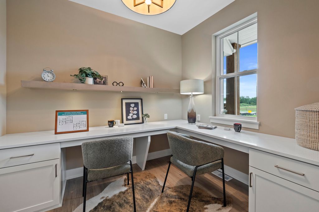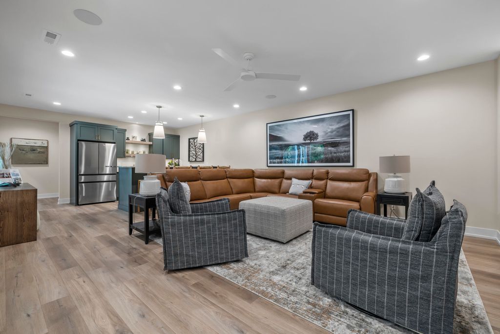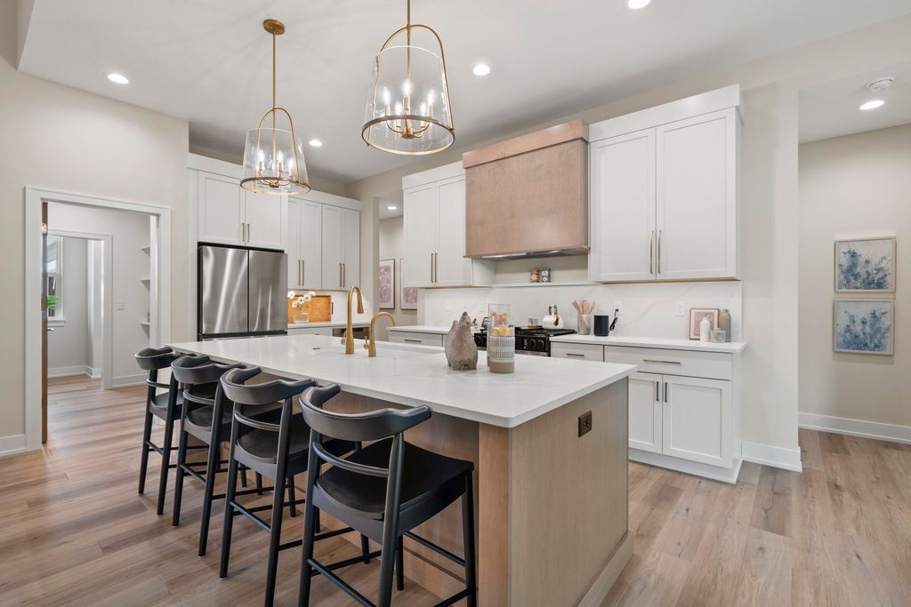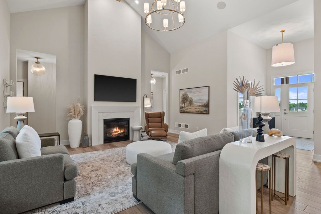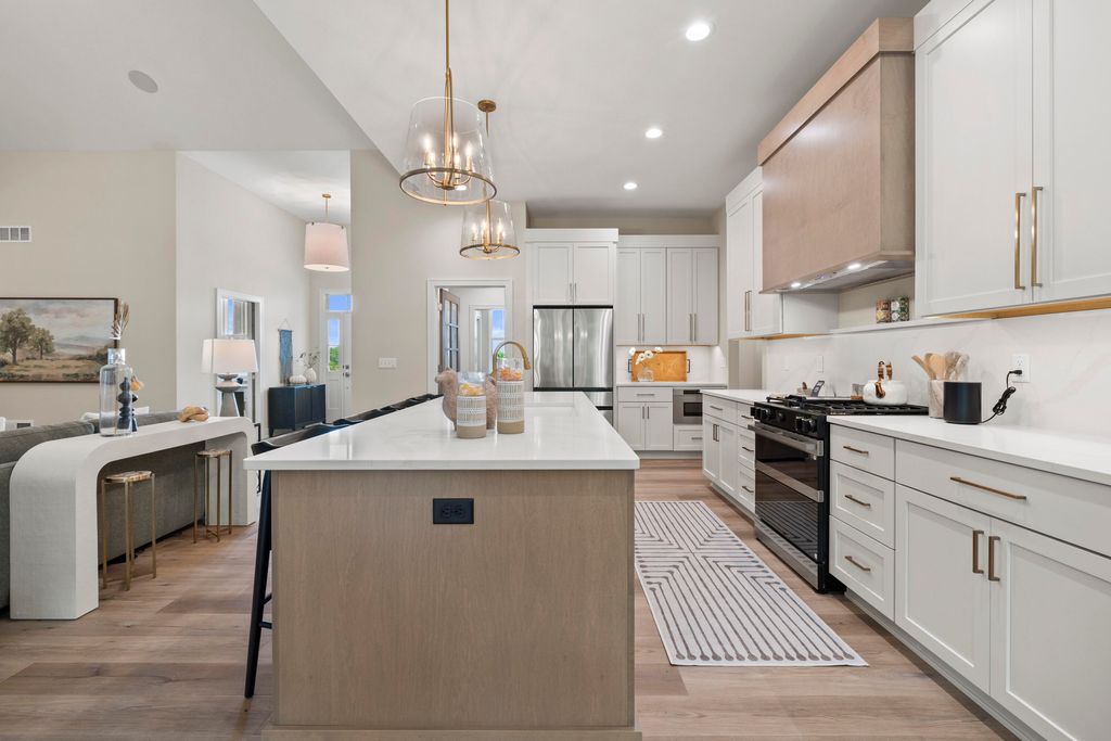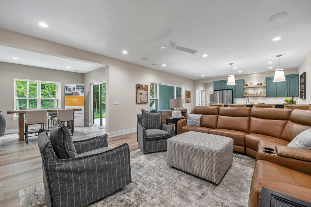 Welcome Home to the 2025 Parade of Home award winning Laurel model. This split-bedroom design separates the owner's retreat w/ spa style bath & dual WICs from the three secondary bedrooms. A refined palette of golds & whites contribute to a soft, modern aesthetic of simplicity & livability. The open-concept living space centers around a gourmet KIT featuring extended-height cabinetry, a spacious prep island & a walk-through pantry w/ convenient access to the mudroom, minimizing need to carry groceries thru the main living areas. Covered patio off Dinette allows you to extend your indoor living outdoors. One of the home's most versatile features is the pocket Office. Walk out LL features a wraparound U-shaped bar w/ an integrated TV niche, alongside a secluded workout room & Bed #5!