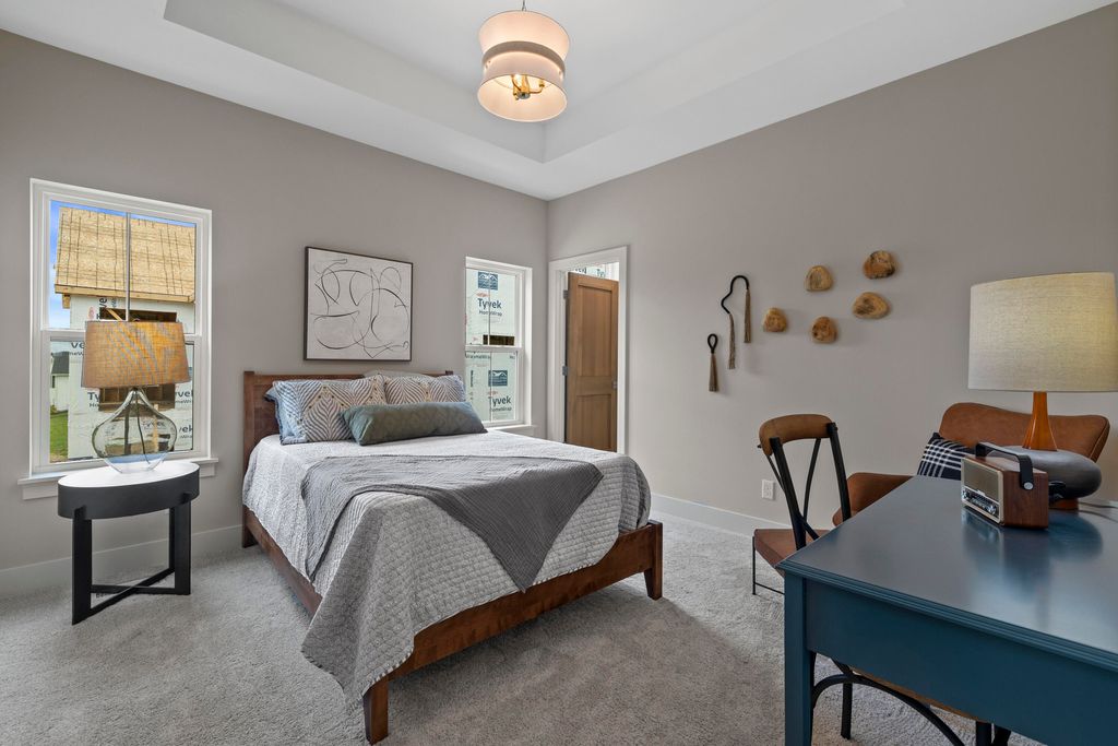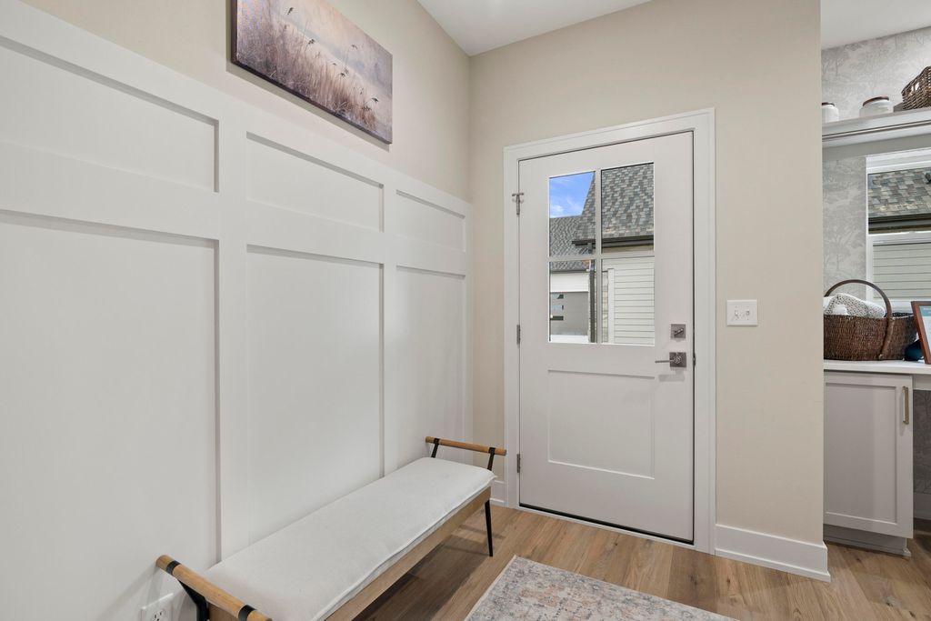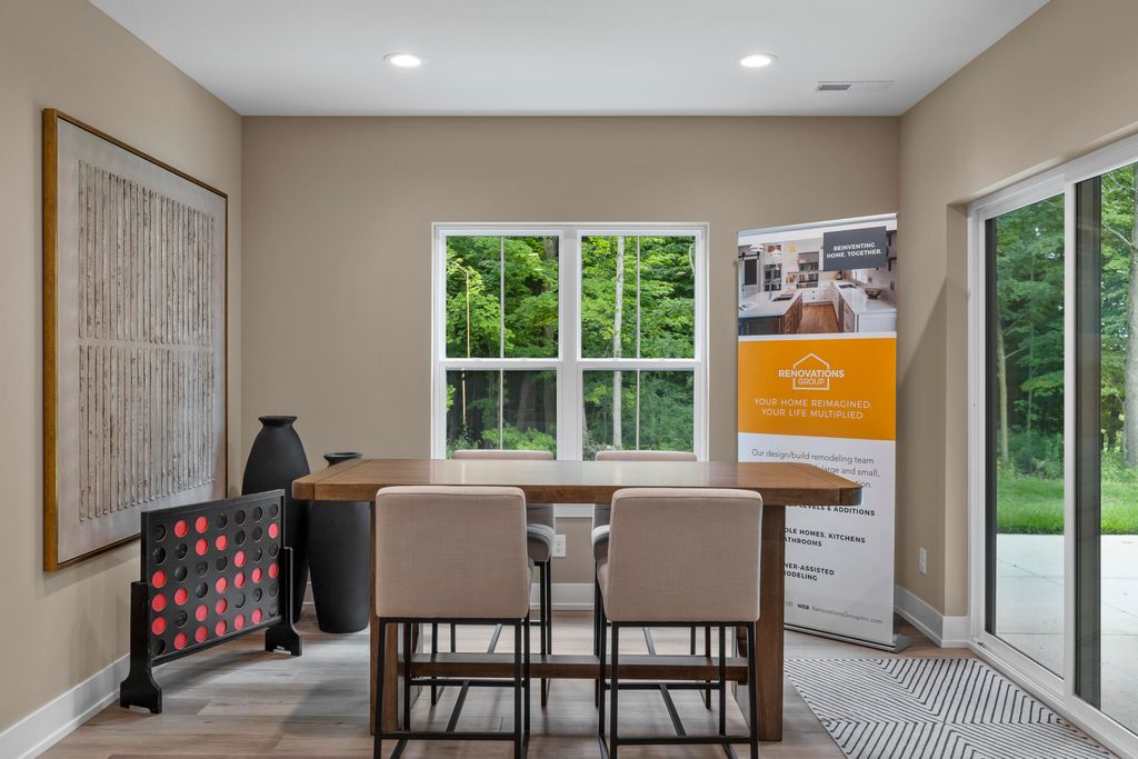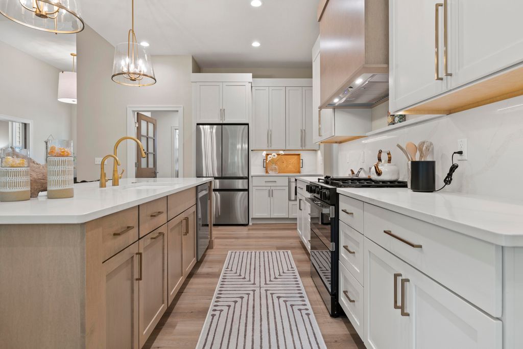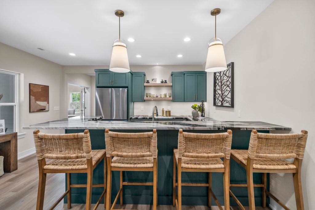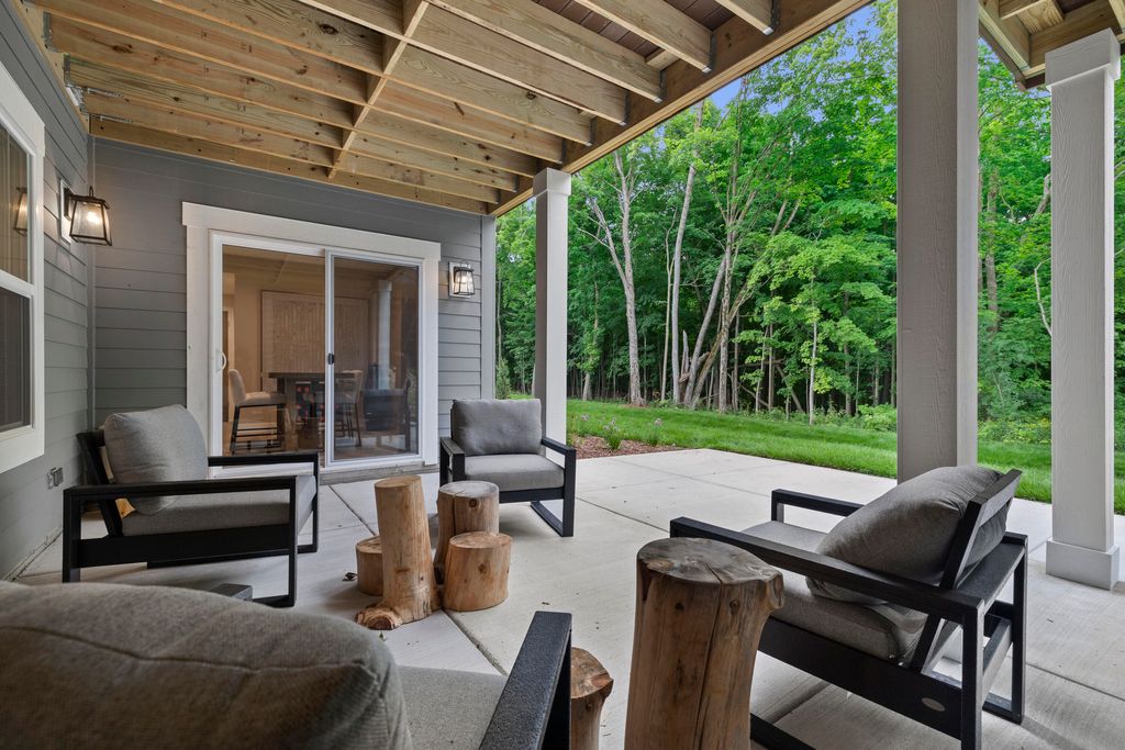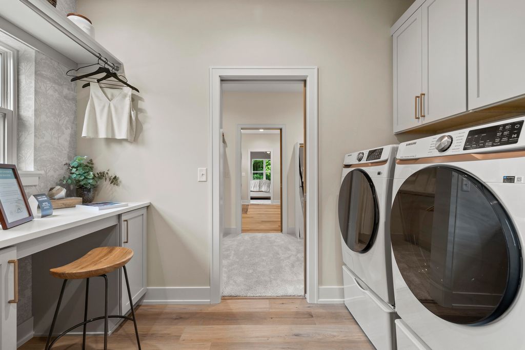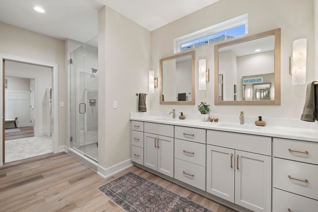Welcome Home to the 2025 Parade of Home award winning Laurel model. This split-bedroom design separates the owner's retreat w/ spa style bath & dual WICs from the three secondary bedrooms. A refined palette of golds & whites contribute to a soft, modern aesthetic of simplicity & livability. The open-concept living space centers around a gourmet KIT featuring extended-height cabinetry, a spacious prep island & a walk-through pantry w/ convenient access to the mudroom, minimizing need to carry groceries thru the main living areas. Covered patio off Dinette allows you to extend your indoor living outdoors. One of the home's most versatile features is the pocket Office. Walk out LL features a wraparound U-shaped bar w/ an integrated TV niche, alongside a secluded workout room & Bed #5!