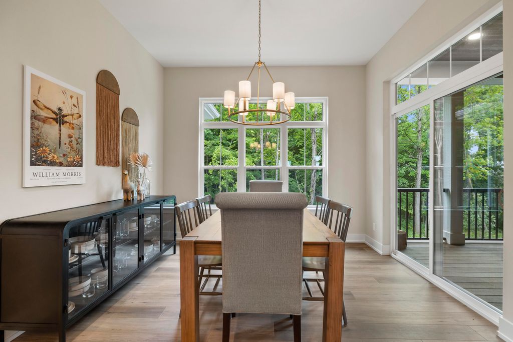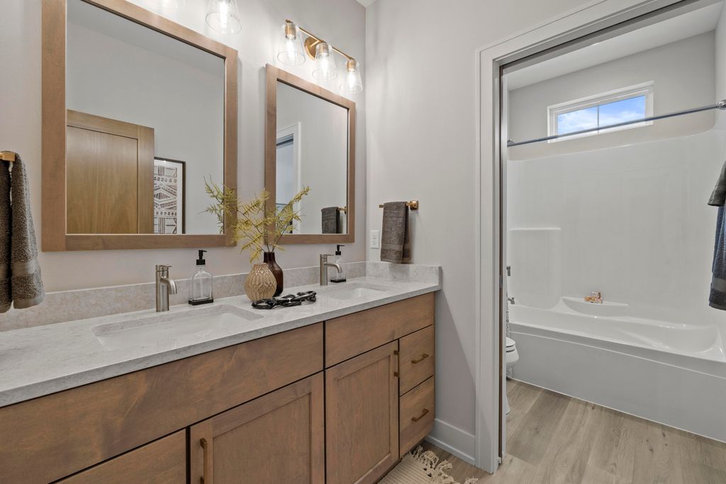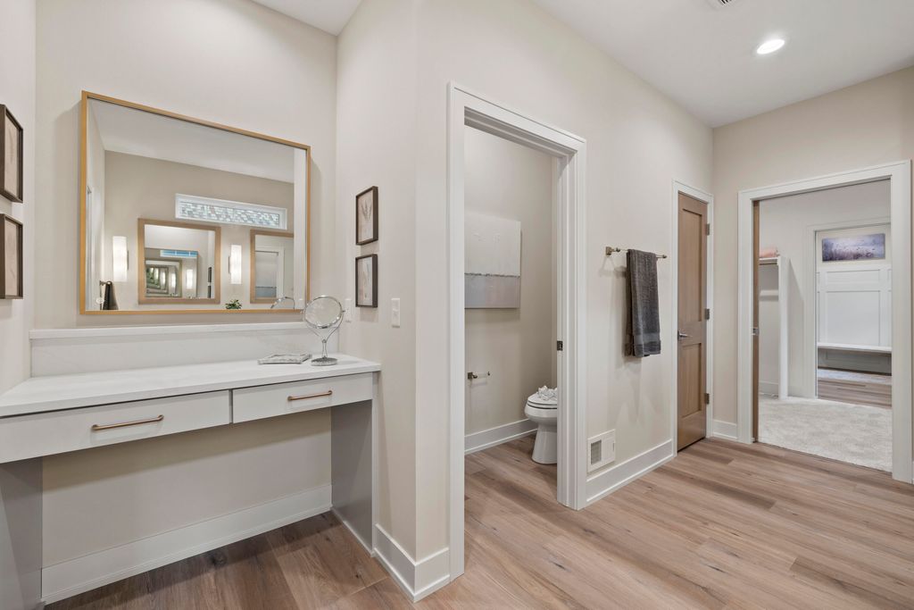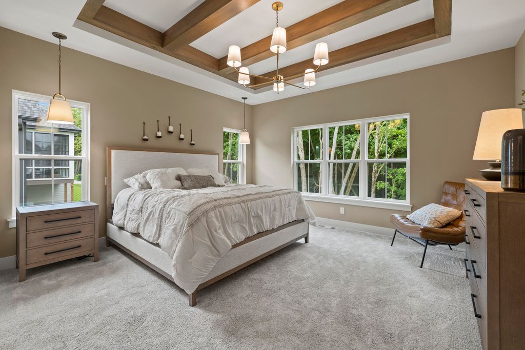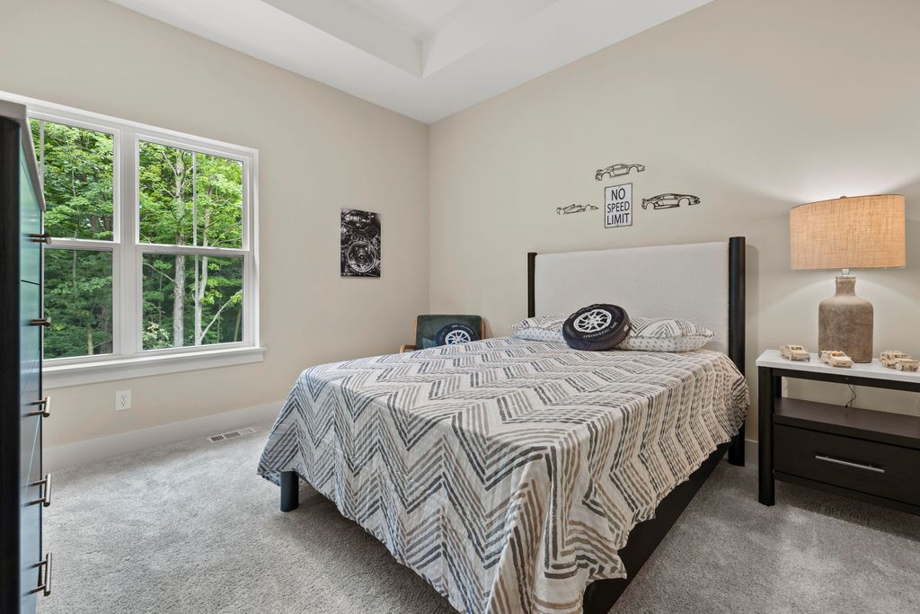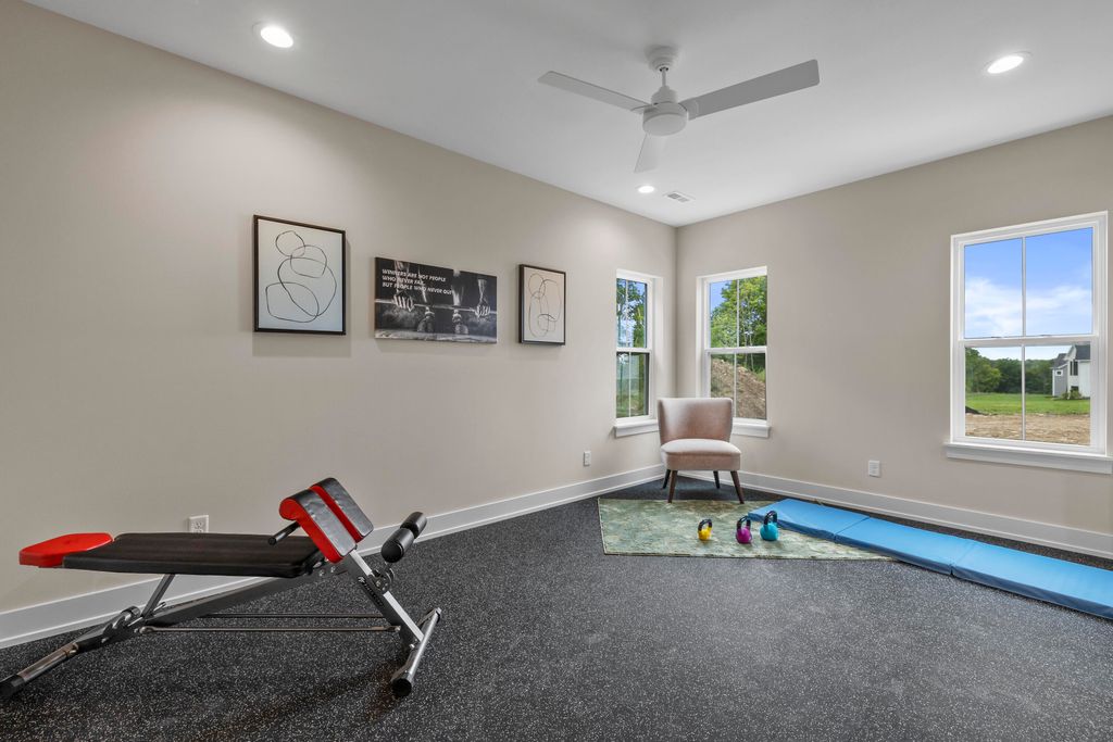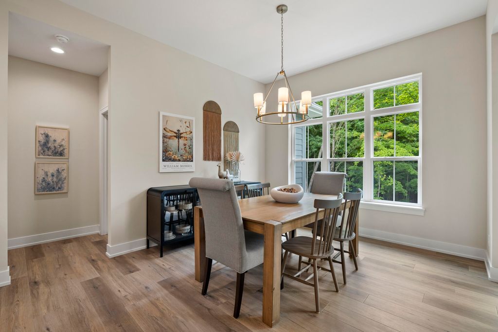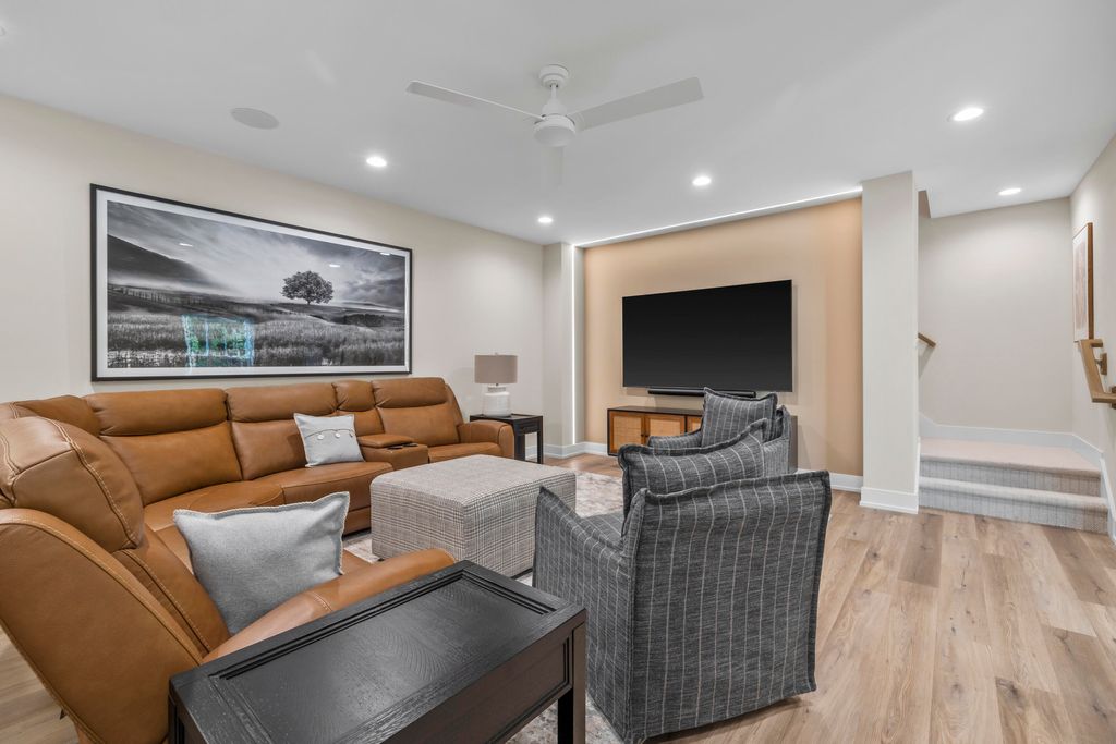 Welcome Home to the 2025 Parade of Home award winning Laurel model. This split-bedroom design separates the owner's retreat w/ spa style bath & dual WICs from the three secondary bedrooms. A refined palette of golds & whites contribute to a soft, modern aesthetic of simplicity & livability. The open-concept living space centers around a gourmet KIT featuring extended-height cabinetry, a spacious prep island & a walk-through pantry w/ convenient access to the mudroom, minimizing need to carry groceries thru the main living areas. Covered patio off Dinette allows you to extend your indoor living outdoors. One of the home's most versatile features is the pocket Office. Walk out LL features a wraparound U-shaped bar w/ an integrated TV niche, alongside a secluded workout room & Bed #5!