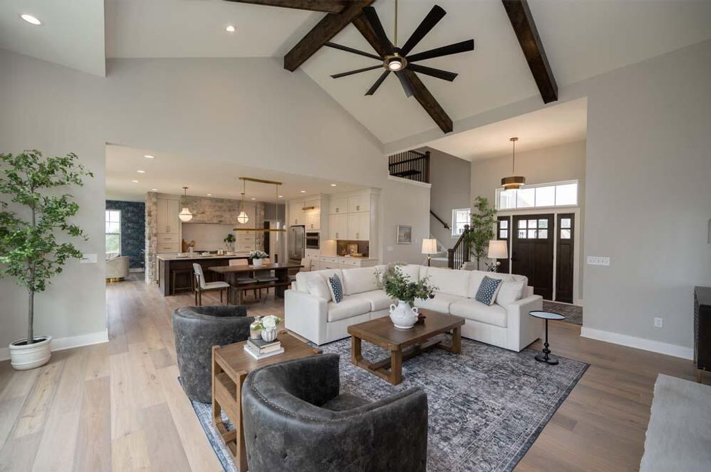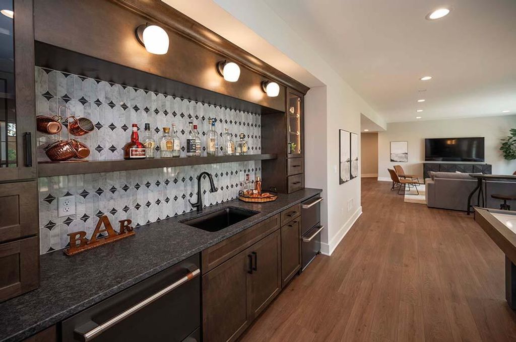 2025 Parade of Homes model. Winner of the Best Kitchen. This beautiful home has it all. Open concept 2-story vaulted ceiling Great Room opens into the best kitchen with island, pantry, loads of cabinets, with all appliances. Flex room with built-in cabinets, bar sink and beverage cooler. Beautiful 1st flr Master Bedroom, WIC, large shower and double sinks. 2 upper bedrooms, washer/dryer, full bath, loft area and bonus room/4th bedroom with a WIC. Walk out LL with Rec Room, lounge area with bar and beverage cooler, office, 5th bedroom and full bath. Deck and patio, fully landscaped. Immediate occupancy.