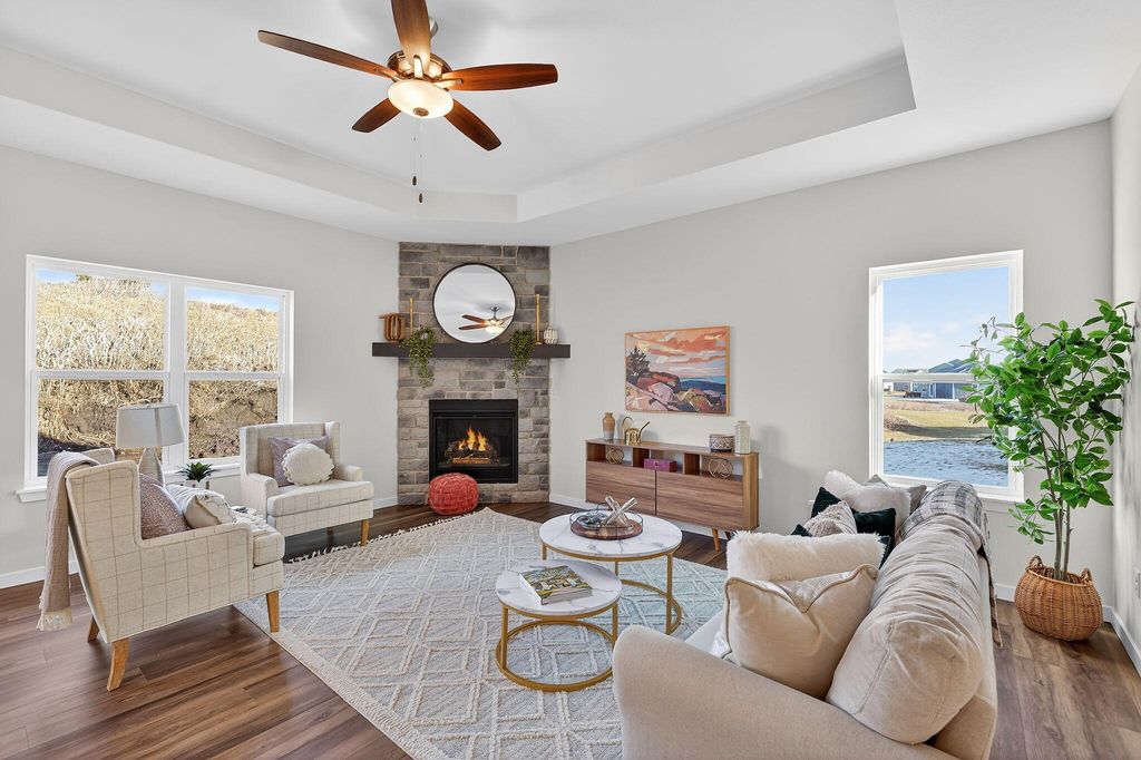 NEW CONSTRUCTION - Ready to move in! Our Wingra model is a 3 Bed, 2 BA, 2.5 Car Garage, split ranch with an open concept layout. The Kitchen boasts quartz countertops, cabinets with soft close, corner walk-in pantry and a large island with overhang, great for entertaining family and friends! The Great Room has a corner gas fireplace with beautiful stone to 9' ceiling detail and a box tray ceiling. The Primary Suite includes a box tray ceiling, oversize WIC and double bowl vanity in Primary Bath. Come see all the stunning upgrades in this beautiful new construction home and discover why Vista Run could be the perfect place to call home!