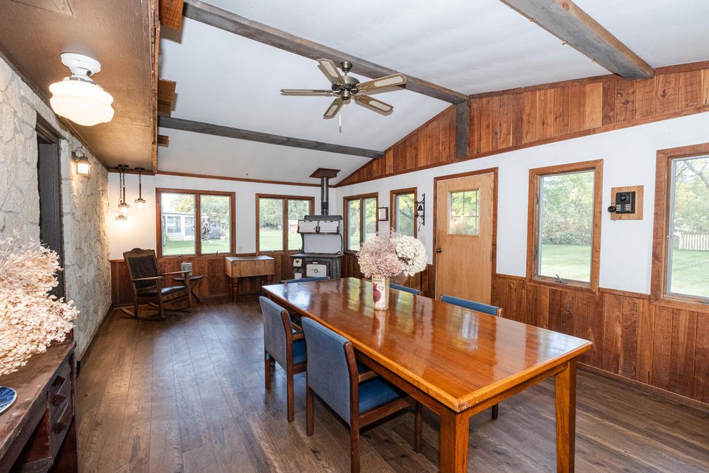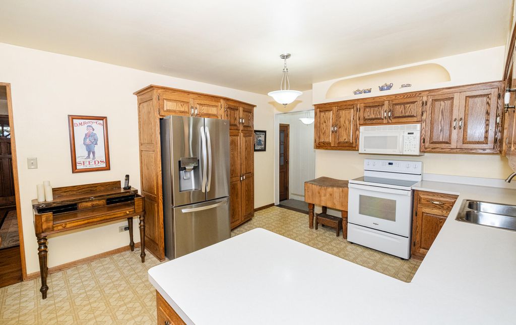 Welcome to this charming lannon stone ranch located in the Sussex Hamilton School District! This inviting home features 3 generously sized bedrooms, a large kitchen with plenty of cabinet space, and a bright living room with gorgeous natural hardwood floors. Enjoy year-round comfort in the cozy four-seasons room with wood burning stove, perfect for relaxing or entertaining. The partially finished basement offers a spacious rec room, an office space, and an large unfinished area offering ample storage. The meticulously maintained yard with a beautiful patio is perfect for relaxing evenings or outdoor entertaining. Schedule your showing today before it's too late!