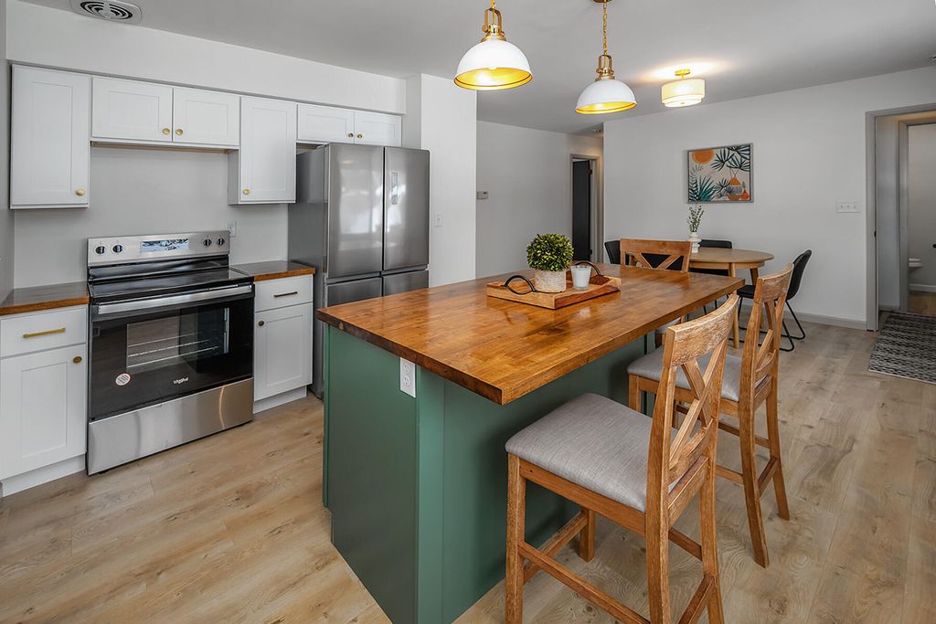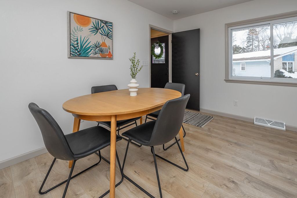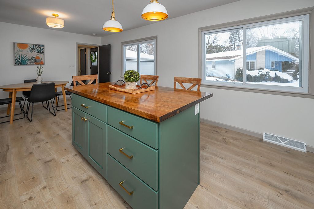 Christmas has arrived early! A well-maintained ranch awaits your gift unwrapping on this quiet cul-de-sac, yet close to all the action of the ever-evolving scene in Menomonee Falls. A picture perfect window unloads natural light on the refinished HWF. Around the corner boasts a remodeled eat-in kitchen with gorgeous butcher block countertops, tasteful color schemes, & SS appliances. HWF bedrooms hold plenty of space for room configurations. The full shower has been remodeled along with the 1/2 bath at the side entry for maintenance free plumbing. Step downstairs into a great entertainment space with a finished basement, along ideal storage & laundry space on the unfished side. A fenced in yard & back concrete patio make for perfect outdoor entertainment with our 4-legged friends.