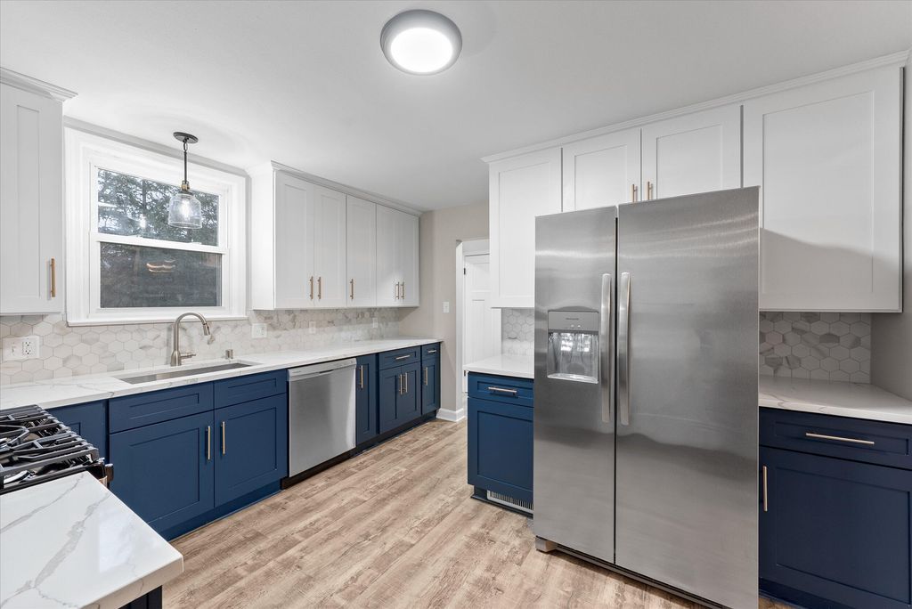Discover this stunning, fully remodeled home nestled on a rare 5-acre lot in Menomonee Falls, with hobby Farm possibilities! Every detail has been thoughtfully updated inside and out, including a new roof, siding, driveway, patio, downspouts, soffit, and fascia for worry-free living. Step inside to find a beautifully updated kitchen and bathrooms, fresh paint, new flooring, new doors, new furnace and AC, and stylish finishes throughout. The home offers 3 beds and 3 baths, featuring a desirable first-floor primary suite with a private en suite bath. Convenience of first floor laundry. Enjoy additional living space in the partially finished walk-out basement, perfect for entertaining or relaxing. This is an outdoorsman's dream setting while being just minutes from town