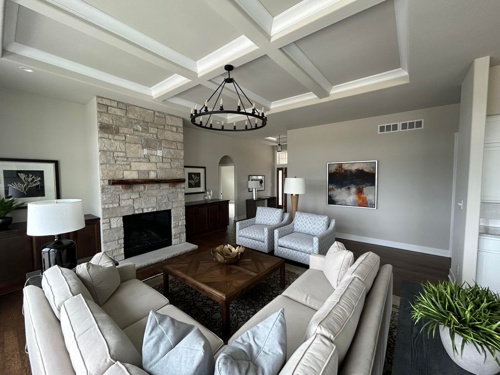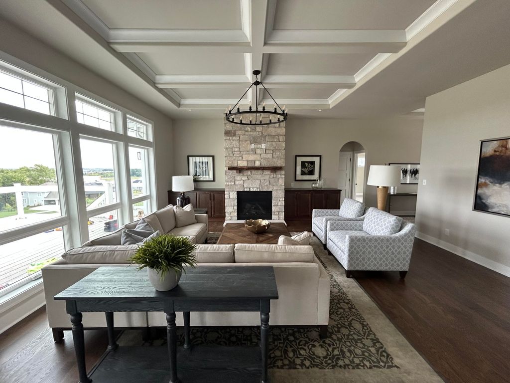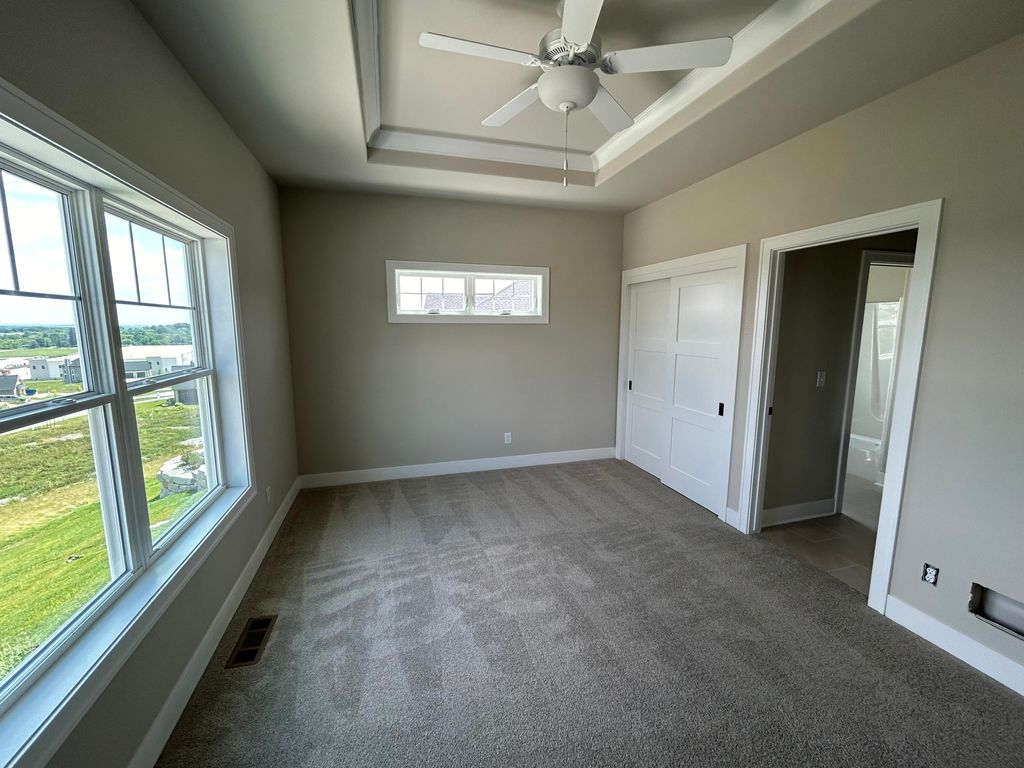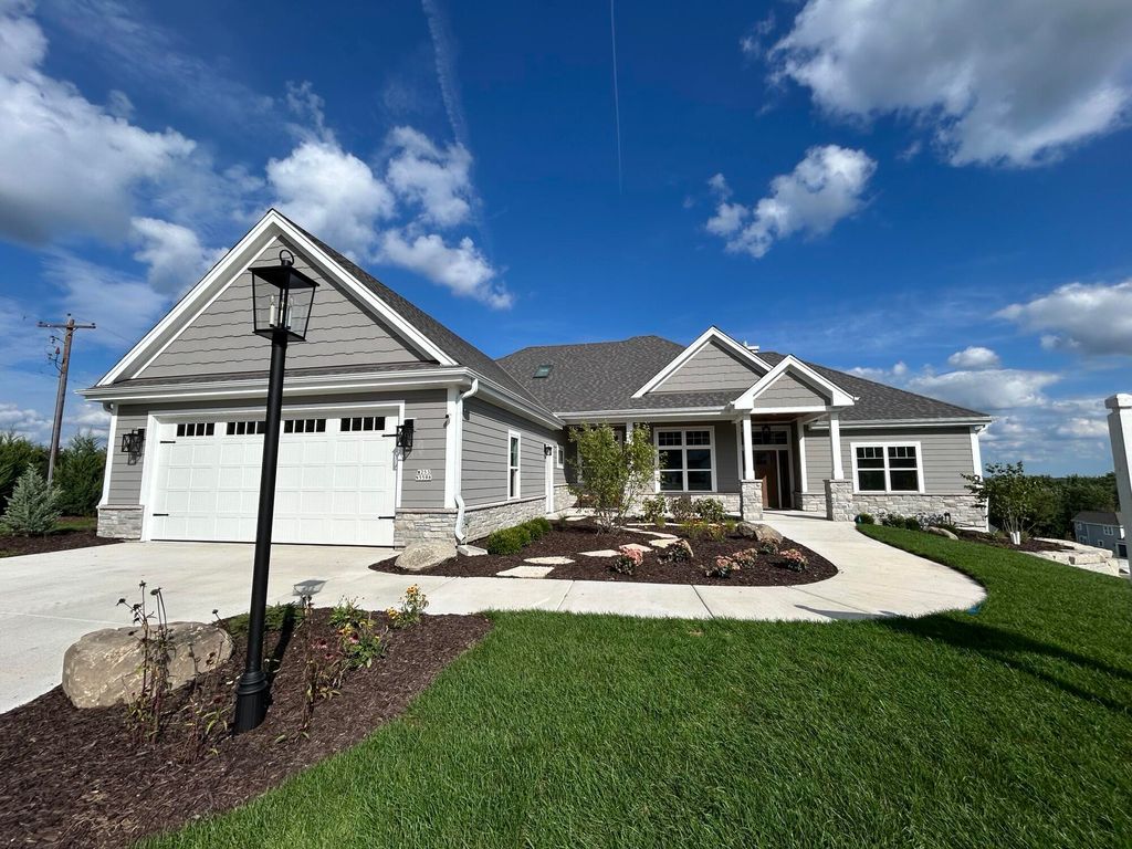 Available July, 2025. Pricing includes landscaping and irrigation. Home prepped for elevator, and grade level access at front door and garage. Trayed ceilings, gas fireplace and roll-in shower. Spectacular views from this hilltop residence to the south and east. Finished lower level, with full exposure to walk out patio. Additional Lower level flex room for exercise or office. Enjoy, relax, entertain !