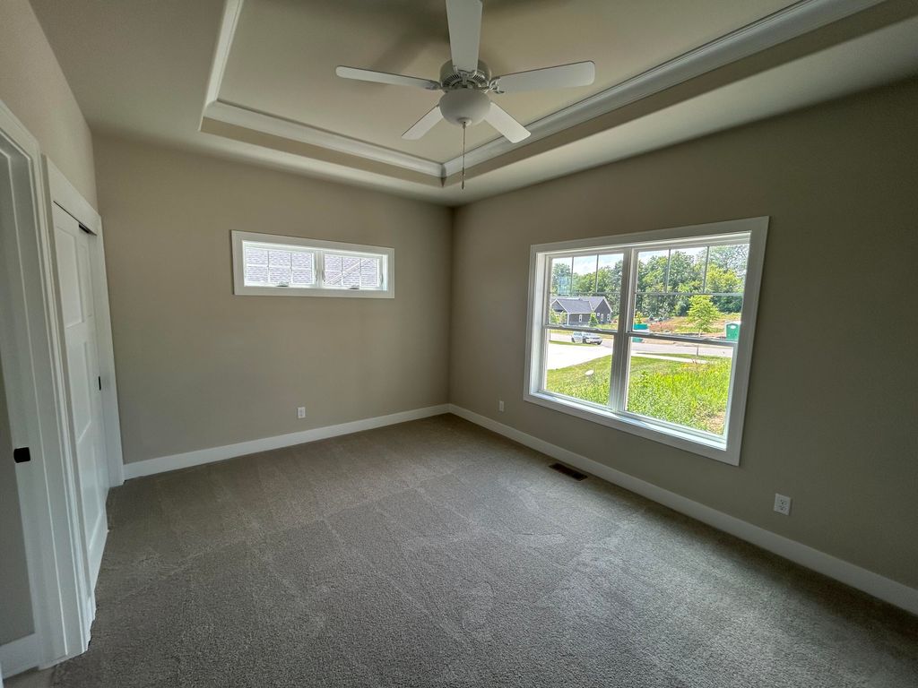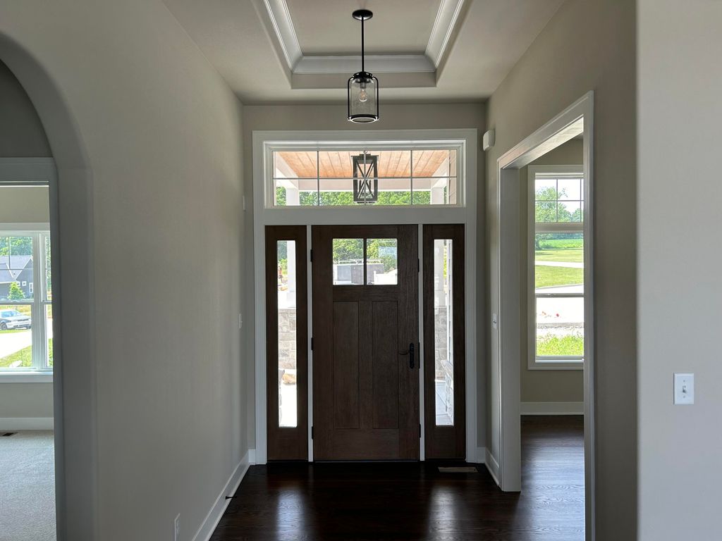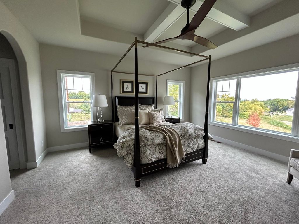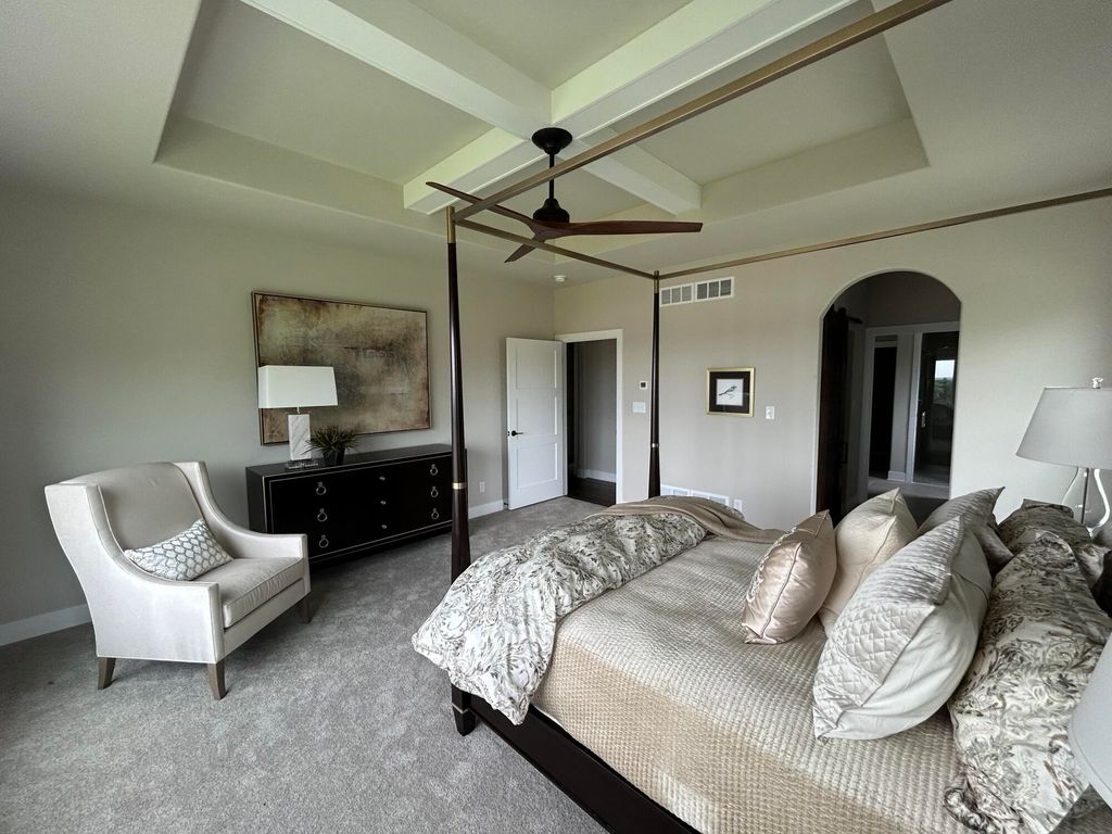 Available July, 2025. Pricing includes landscaping and irrigation. Home prepped for elevator, and grade level access at front door and garage. Trayed ceilings, gas fireplace and roll-in shower. Spectacular views from this hilltop residence to the south and east. Finished lower level, with full exposure to walk out patio. Additional Lower level flex room for exercise or office. Enjoy, relax, entertain !