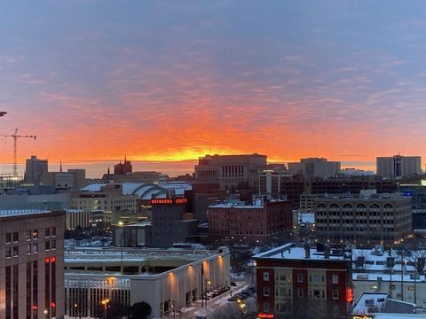 Fantastic 2 bedroom, 1.5 bath Blatz Condo unit with 1 garage parking space (2nd space optional) and storage locker. 6 month lease or longer. Amazing views from this 10th floor, 2 story unit! Open concept first level includes Kitchen with snack bar, half Bath and living/dining space. Two large Bedrooms and a full Bath are on the second level. Floor to ceiling windows flood the living space with natural light and beautiful sunset views! Building common amenities include: elevator, laundry facilities, rooftop patio, fitness center, community room, theater room, pool, hot tub and sauna. Great location! No pets. No smoking. $2200 per month.